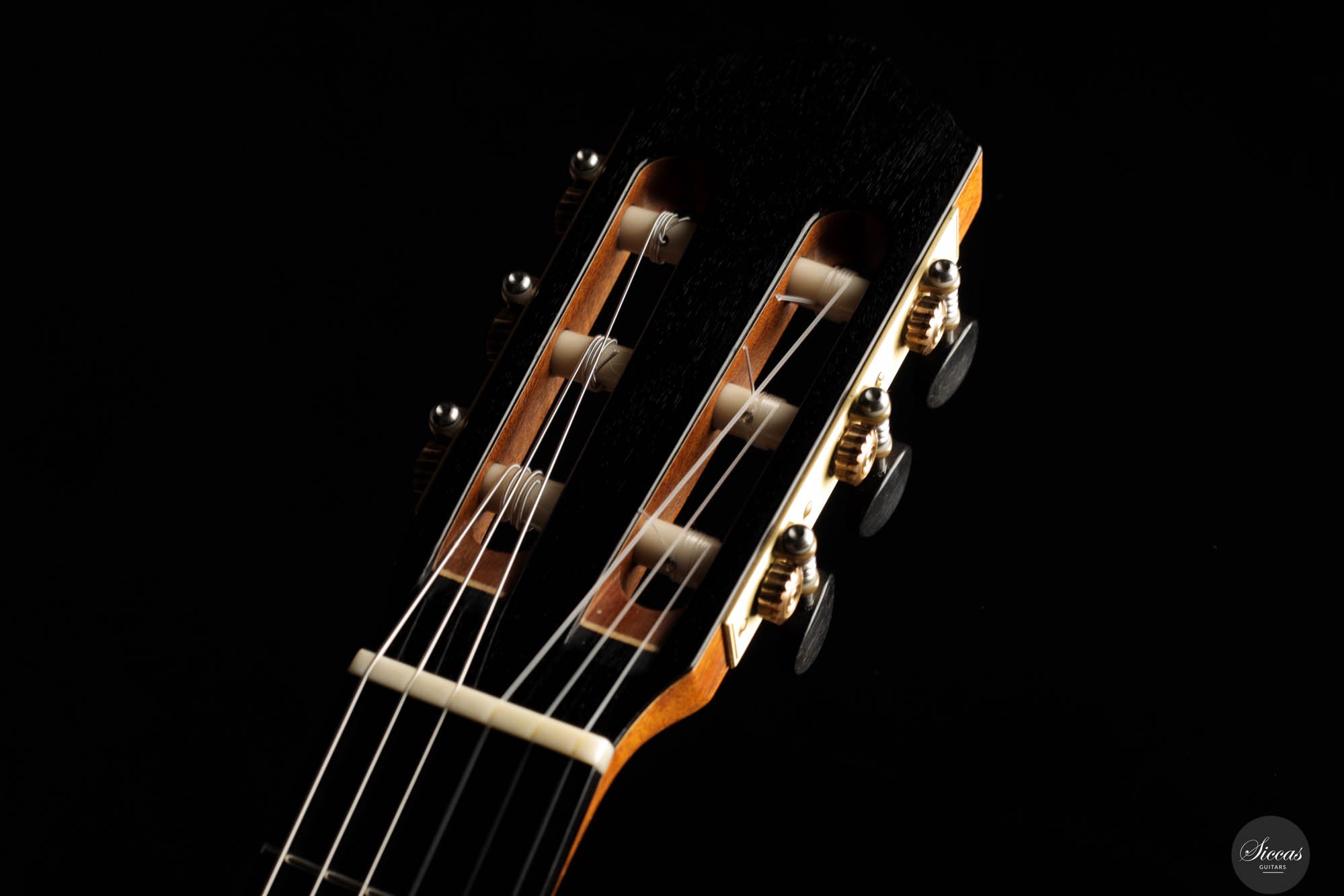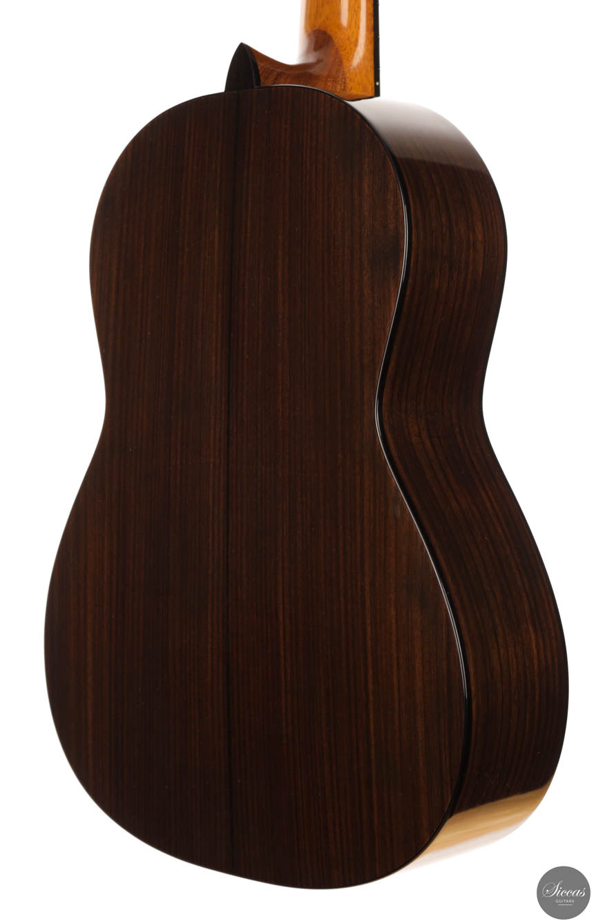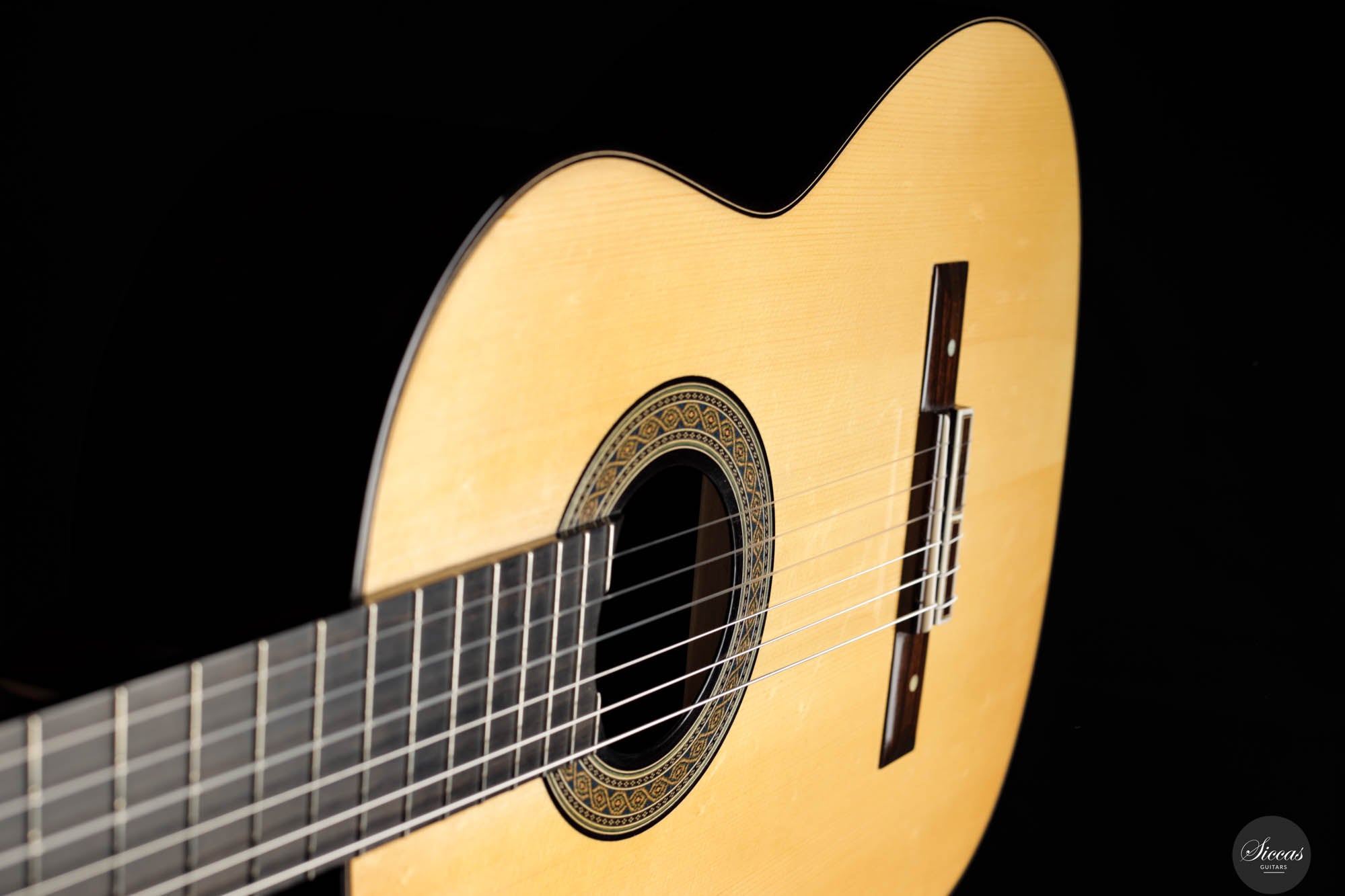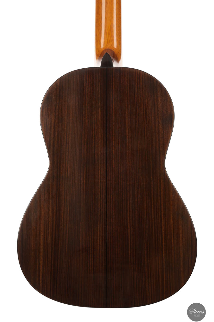The Matthias Hartig 2024 No. 84 classical guitar is a masterpiece of traditional craftsmanship, displaying a simple yet elegant design that draws its influence from the iconic Antonio de Torres. Constructed with exquisite Indian rosewood for the back and sides, this guitar not only captures the eye with its aesthetic appeal but also enchants the ear with the richness and warmth of its tone. One of its most compelling features is its beautiful lyricism in voicing, which makes playing this guitar a truly delightful experience. Each note is captured with nuanced expressiveness, bringing any musical piece to life with captivating clarity. Overall, the Matthias Hartig 2024 No. 84 combines the essence of simplicity and traditional influence in its design while offering exceptional performance and playability, making it a standout choice for both aspiring and seasoned musicians.