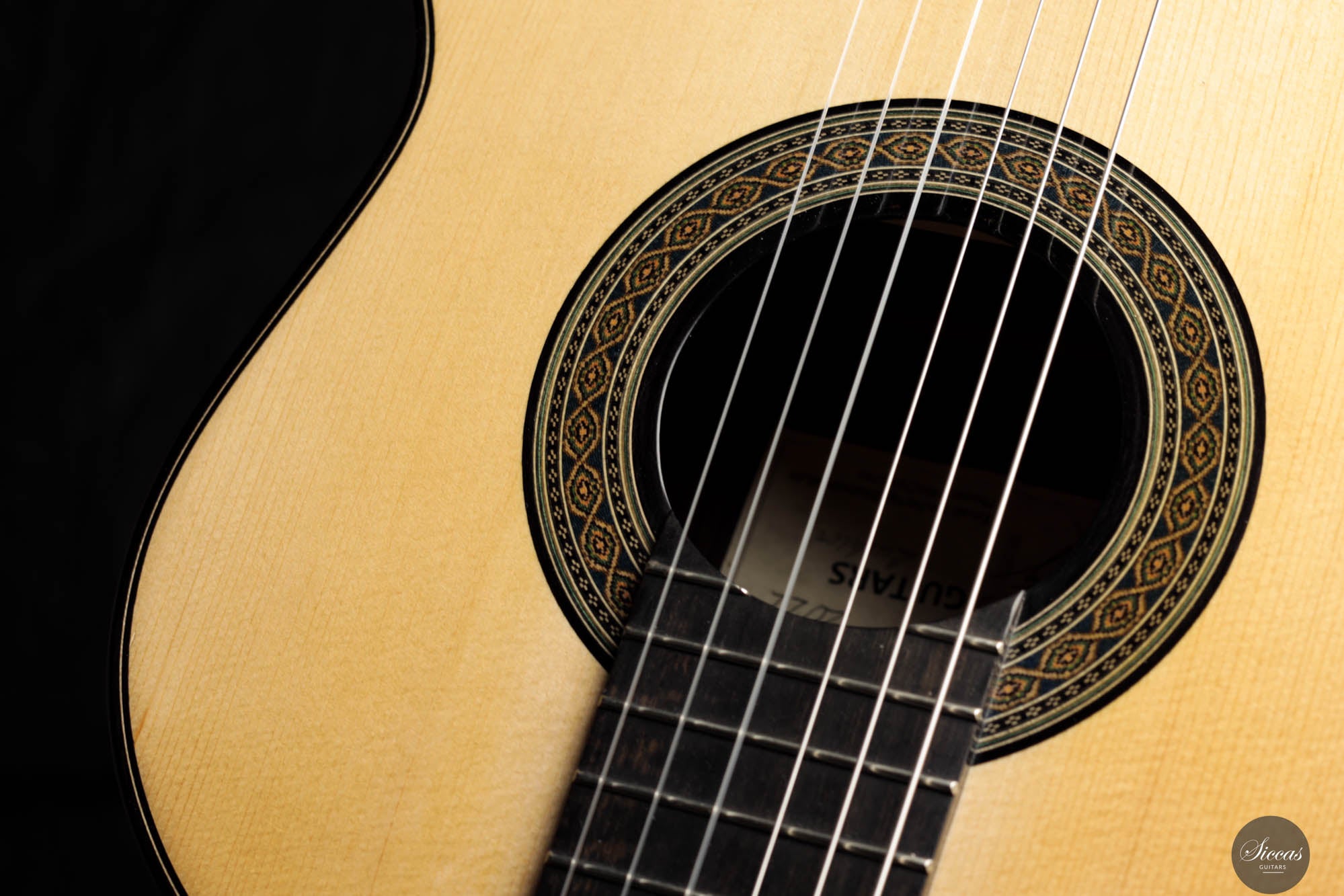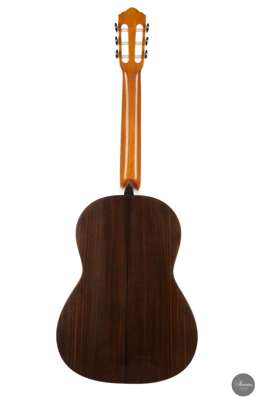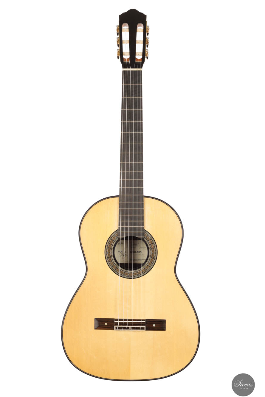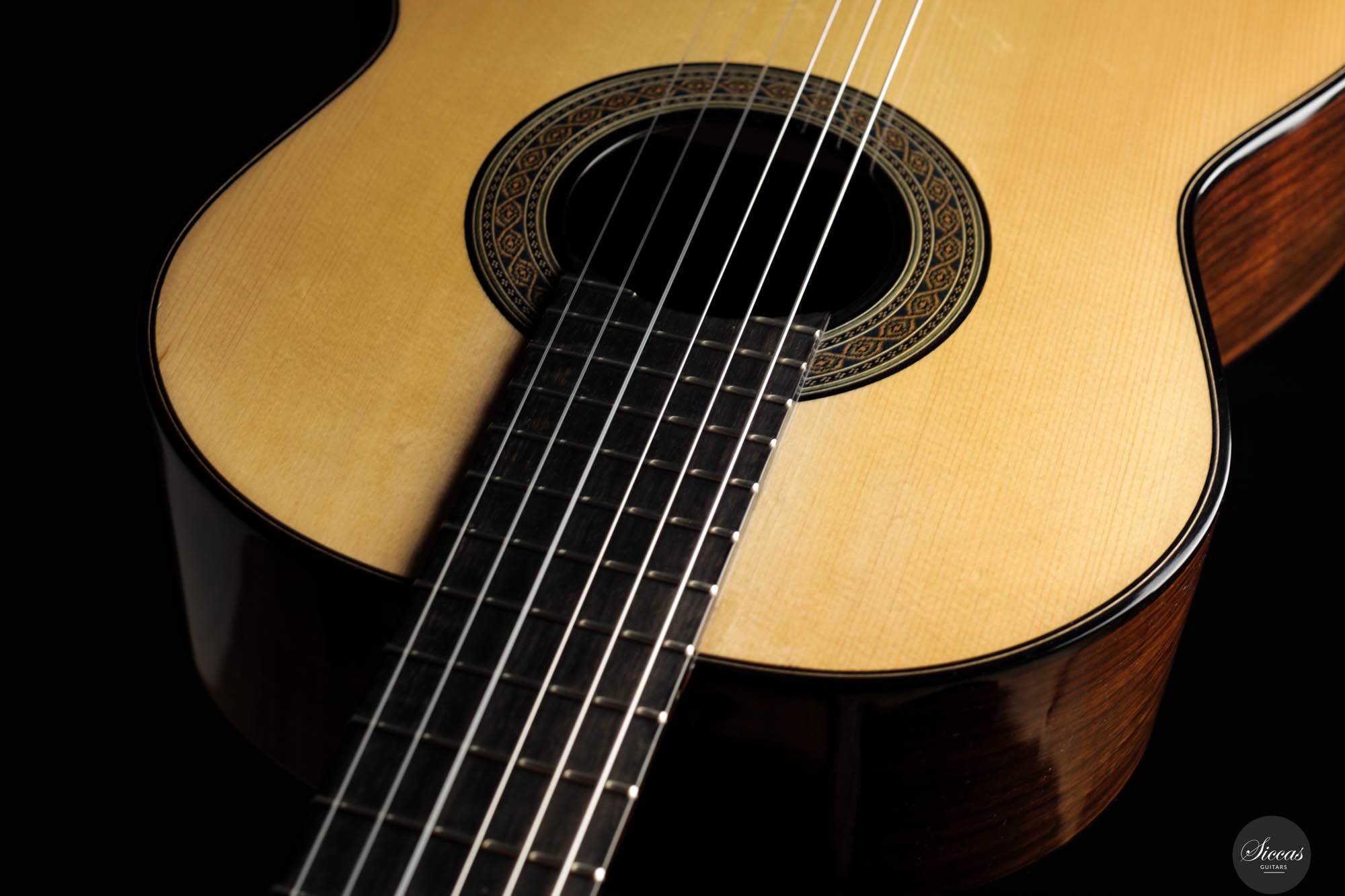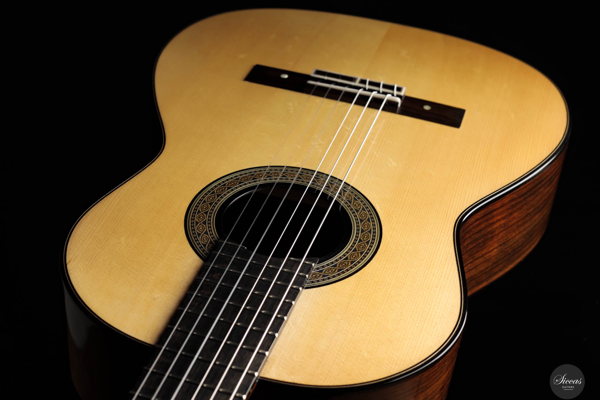 The Matthias Hartig 2024 No. 84 classical guitar is a masterpiece of traditional craftsmanship, displaying a simple yet elegant design that draws its influence from the iconic Antonio de Torres. Constructed with exquisite Indian rosewood for the back and sides, this guitar not only captures the eye with its aesthetic appeal but also enchants the ear with the richness and warmth of its tone. One of its most compelling features is its beautiful lyricism in voicing, which makes playing this guitar a truly delightful experience. Each note is captured with nuanced expressiveness, bringing any musical piece to life with captivating clarity. Overall, the Matthias Hartig 2024 No. 84 combines the essence of simplicity and traditional influence in its design while offering exceptional performance and playability, making it a standout choice for both aspiring and seasoned musicians.