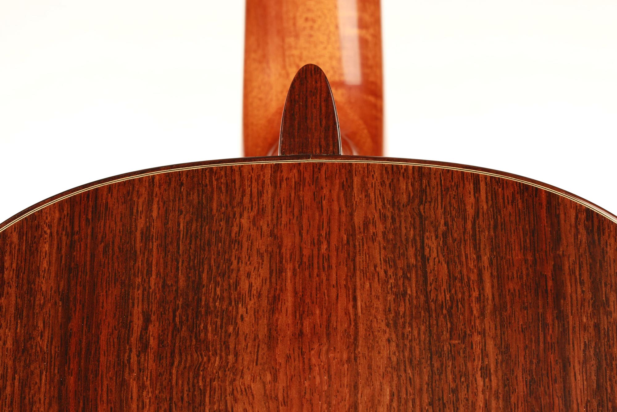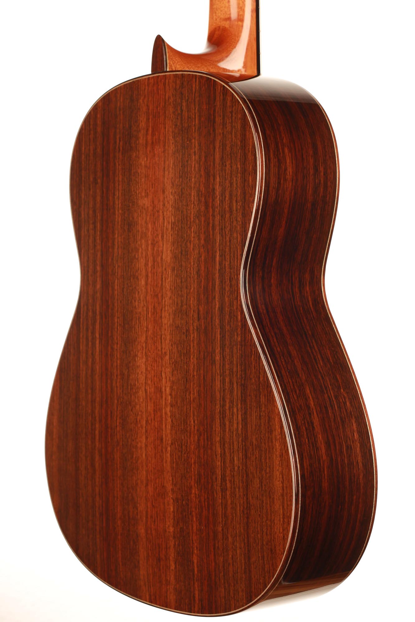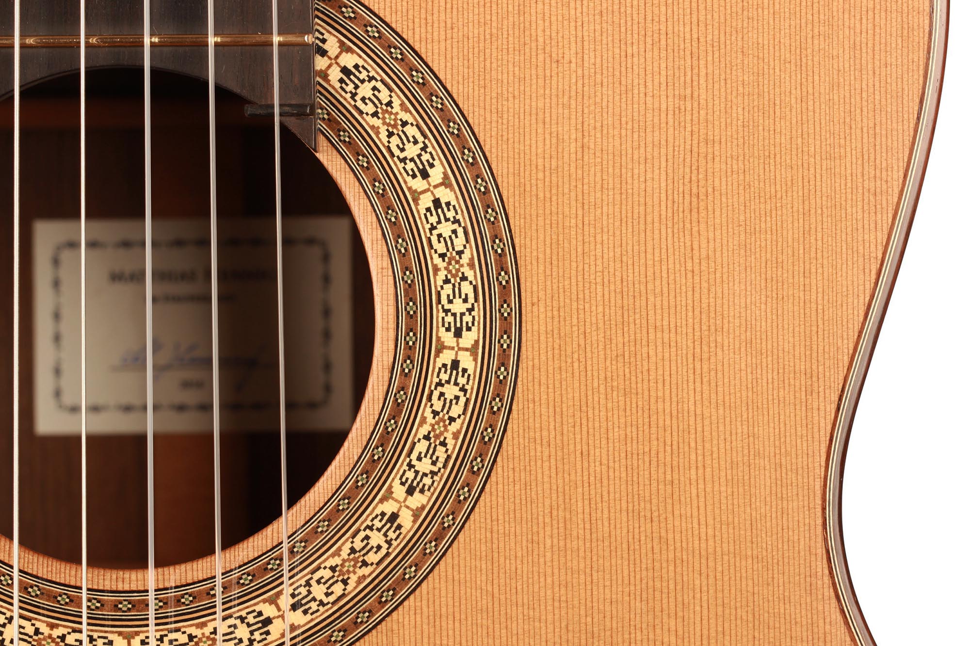The beautiful East Indian rosewood for back and sides, as well as the mahogany of the neck of this instrument, come from the stock of Edgar Mönch and were stored for over 40 years. The fine-grained cedar is also about 40 years old and gives the instrument a beautiful warm and round sound. The top is made of alpine spruce in Lattice construction. Thus, the guitar has a very direct response and a strong, yet versatile tone.