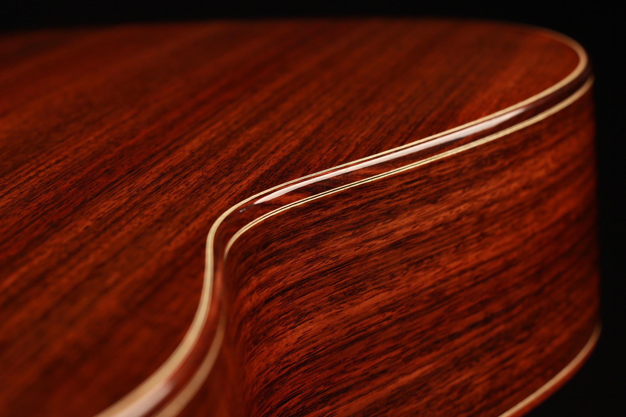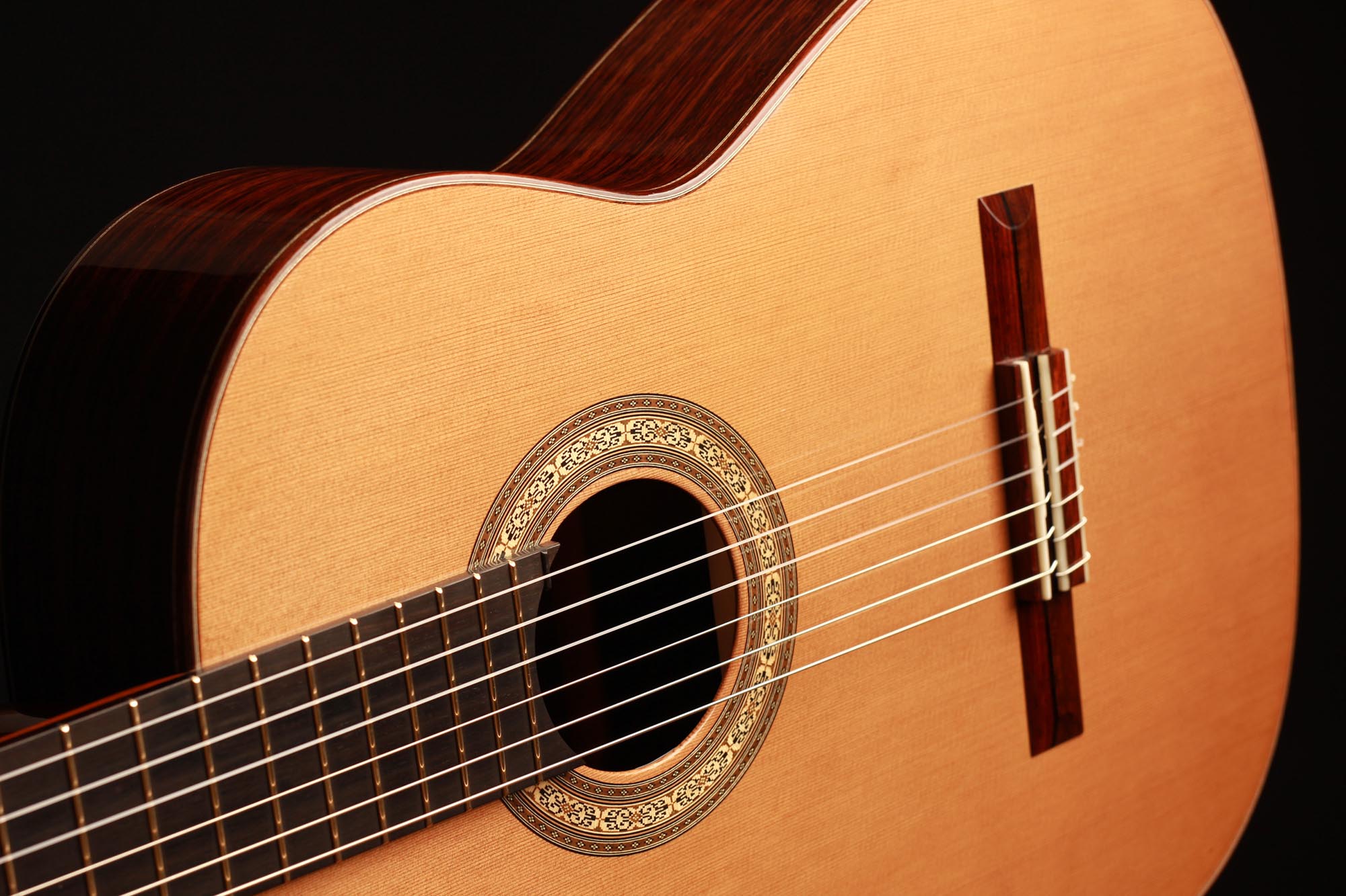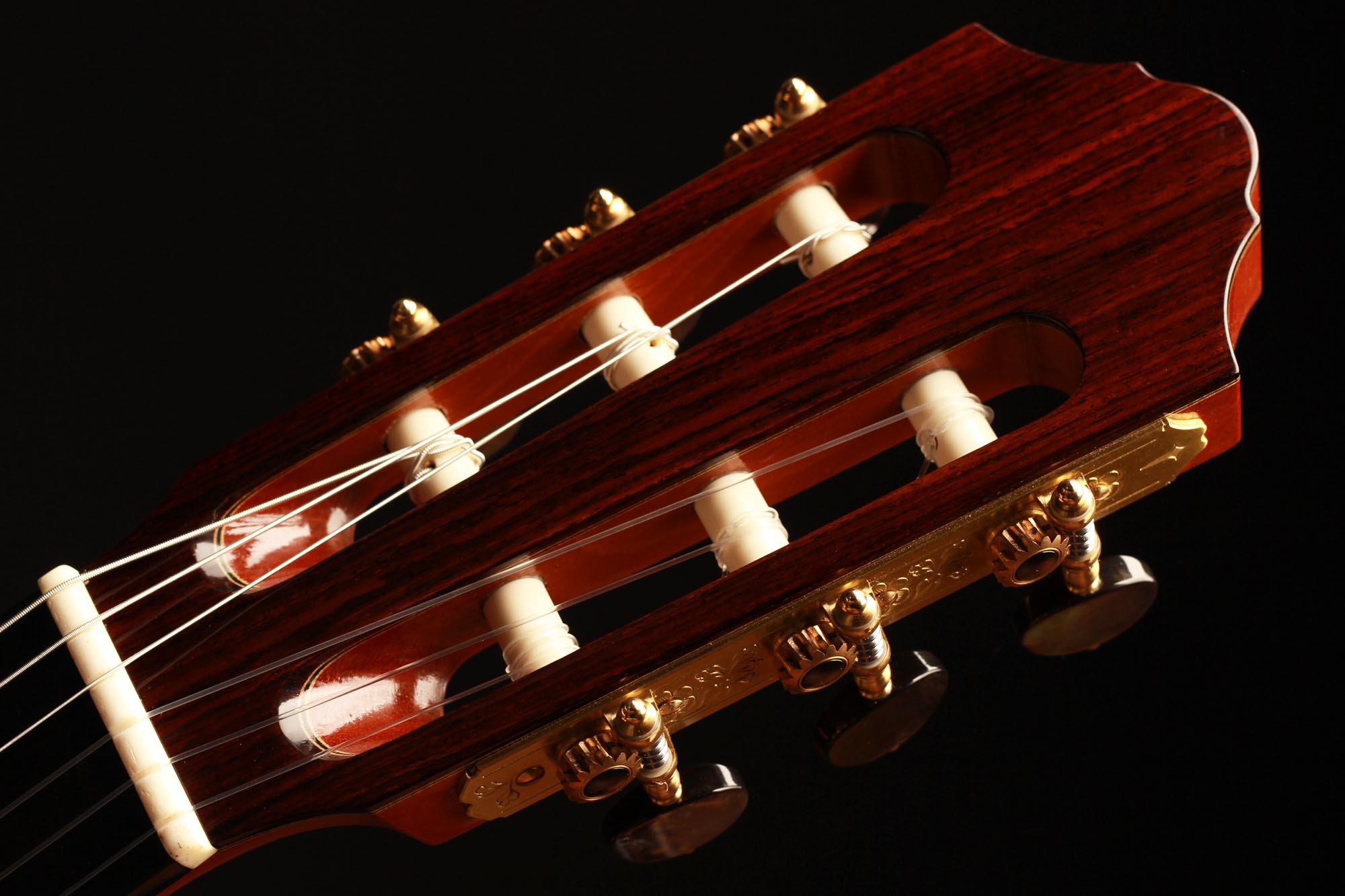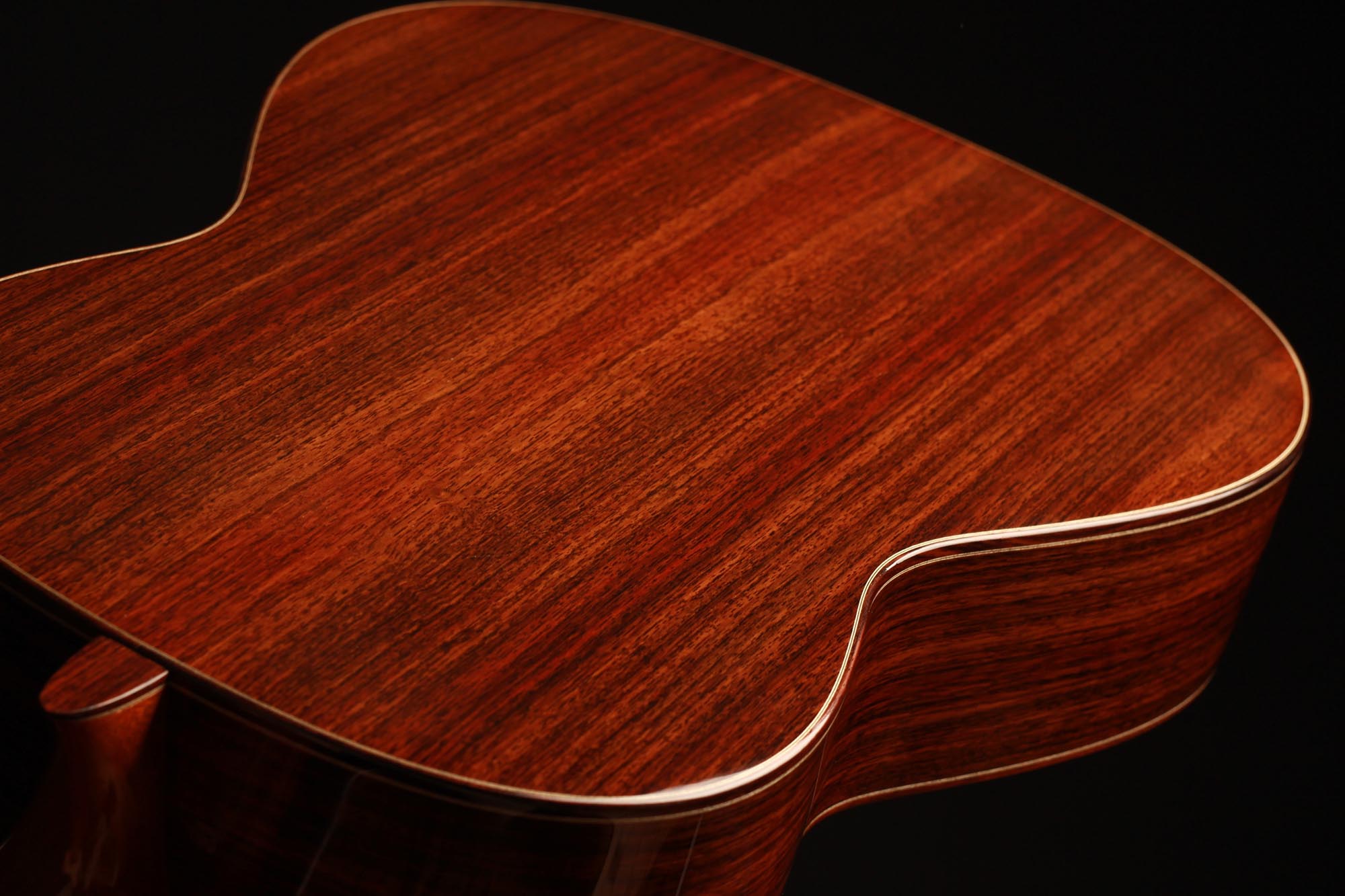 The beautiful East Indian rosewood for back and sides, as well as the mahogany of the neck of this instrument, come from the stock of Edgar Mönch and were stored for over 40 years. The fine-grained cedar is also about 40 years old and gives the instrument a beautiful warm and round sound. The top is made of alpine spruce in Lattice construction. Thus, the guitar has a very direct response and a strong, yet versatile tone.