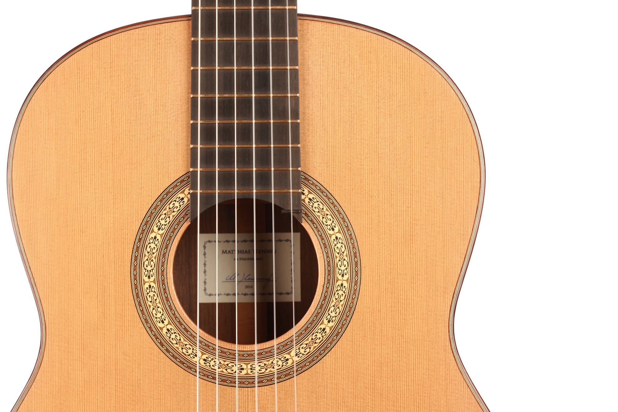 Matthias Hennig trained as a guitar builder from 1999 to 2004 with Kolya Panhuyzen, the nephew of Edgar Mönch. Previously he had completed his training as a carpenter and received 2 further certificates in technical professions. From 2008 he built guitars in his own workshop in Bad Boll. In 2009 he joined forces with the workshop of Kolya Panhuyzen and constantly exchanged ideas with important guitar makers such as Sergei de Jonge, Maurice Ottiger, Sascha Nowak and others.