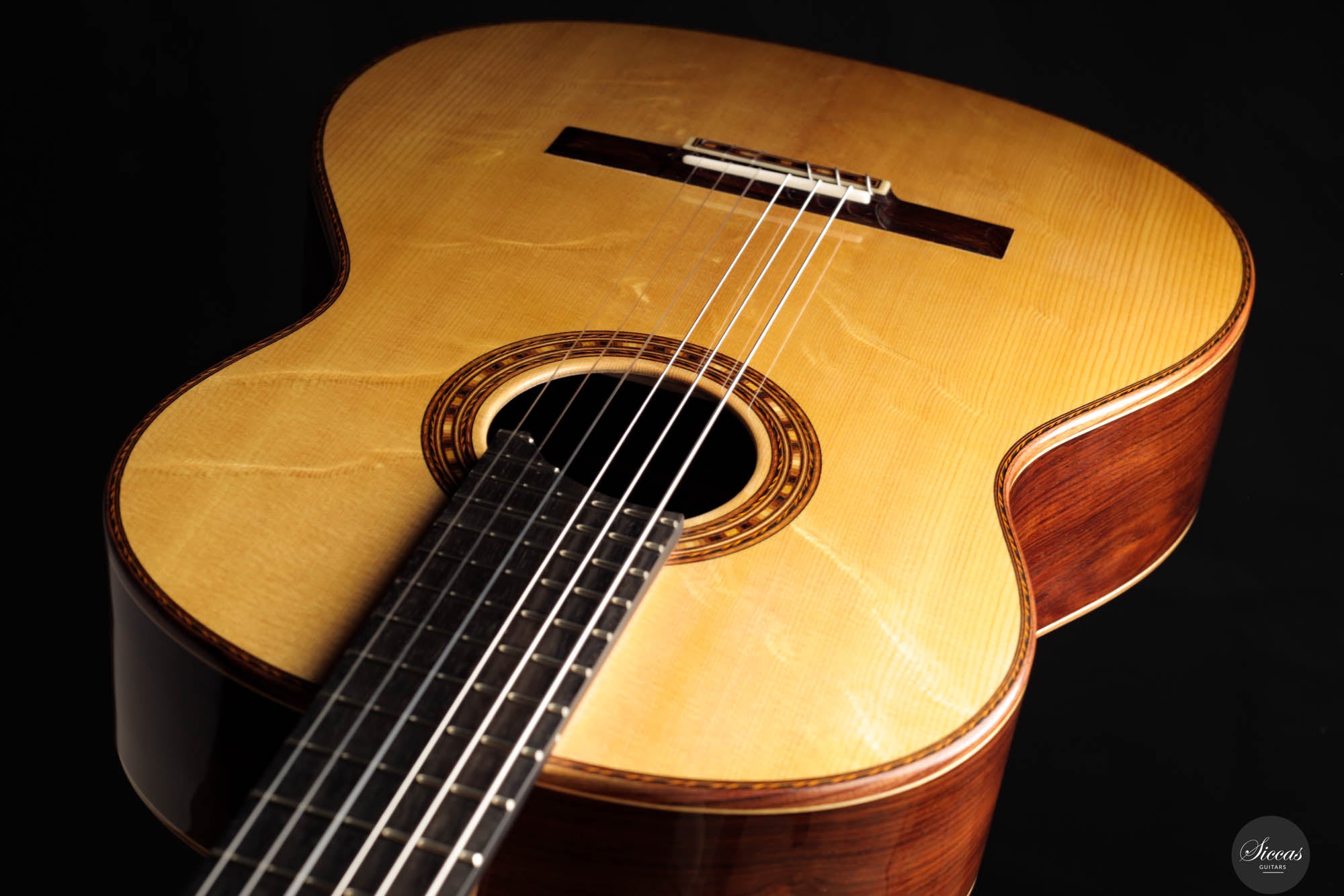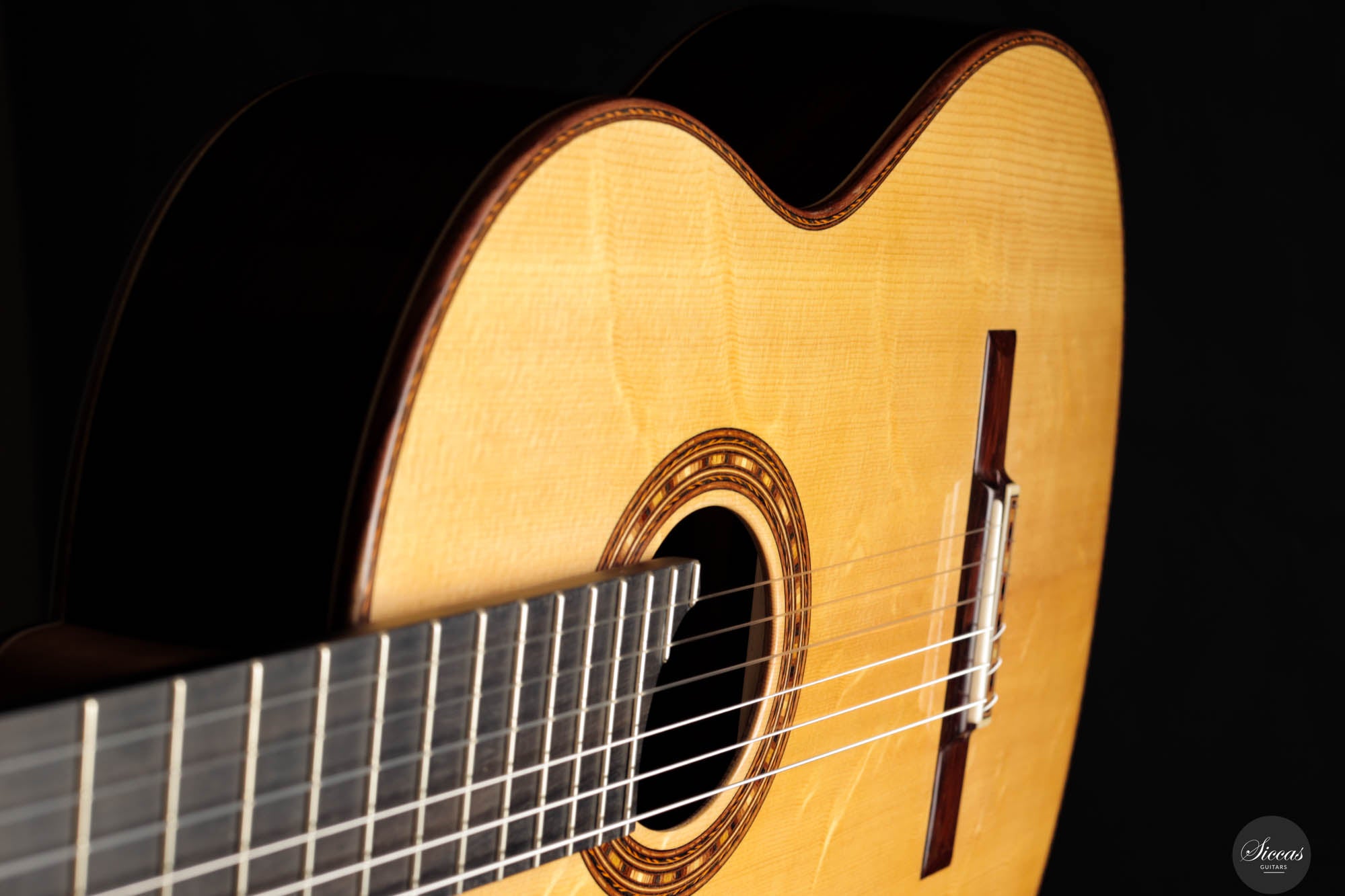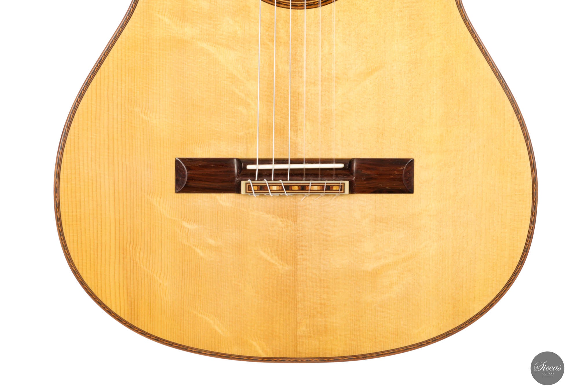 Die klassische Gitarre mit ihren weichen Nylonsaiten und ihrem charakteristischen Timbre ist zum Symbol der Kammermusik, der spanischen Tradition und des Konzertrepertoires geworden. Ihre moderne Form prägte Antonio de Torres im 19. Jahrhundert, indem er den Standard für Korpus, Fächerbeleistung und die 65-Zentimeter-Mensur setzte, die bis heute verwendet werden. Instrumente dieser Kategorie eröffnen eine reiche Palette von den feinen romantischen Miniaturen Tárregas bis zu den majestätischen Konzerten Rodrigos. Hier finden Sie Gitarren, die historische Kontinuität bewahren und zugleich zu neuen Interpretationen anregen.