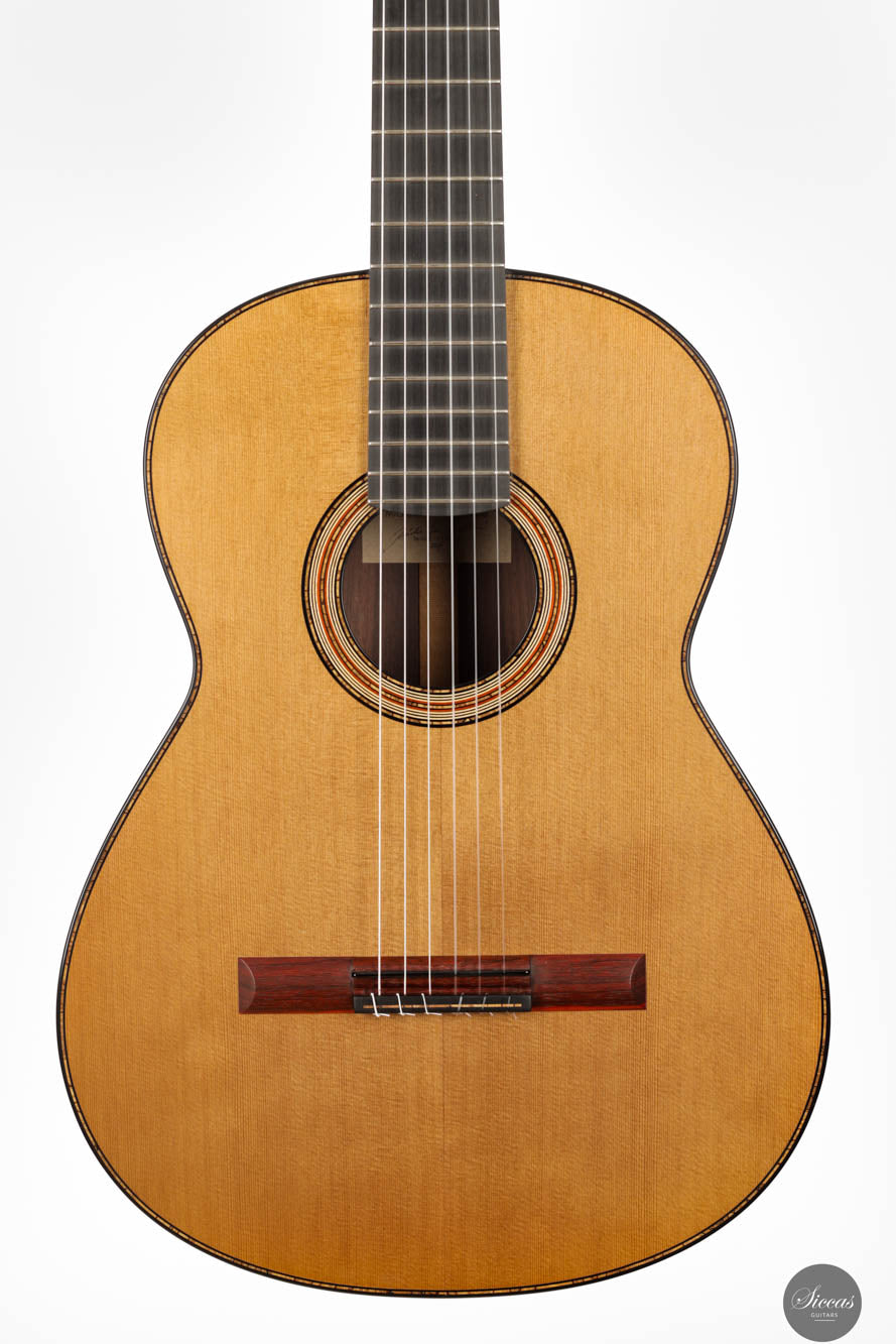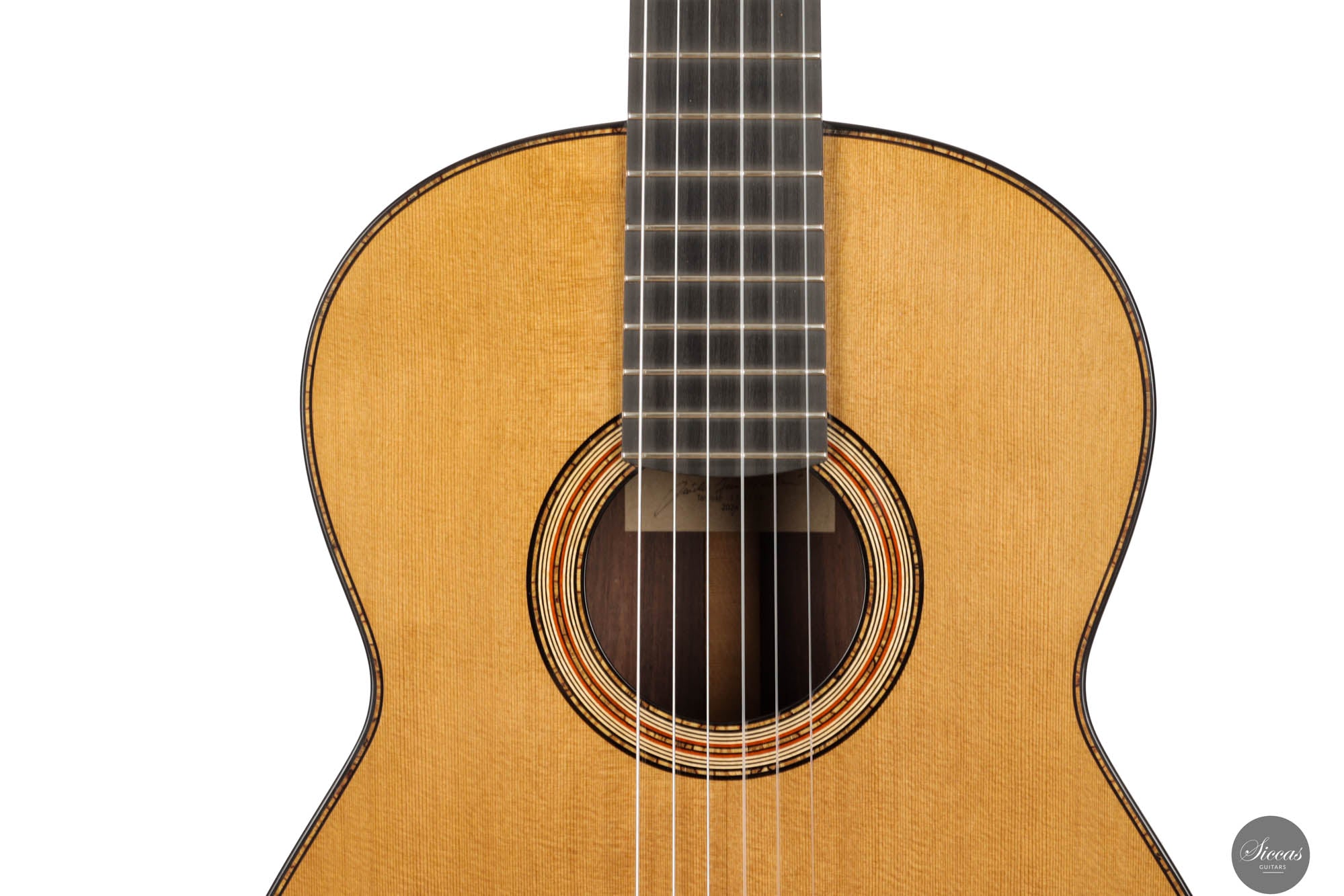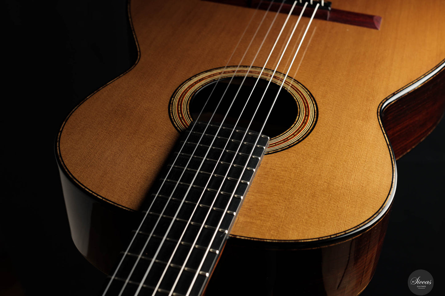 Die klassische Gitarre mit ihren weichen Nylonsaiten und ihrem charakteristischen Timbre ist zum Symbol der Kammermusik, der spanischen Tradition und des Konzertrepertoires geworden. Ihre moderne Form prägte Antonio de Torres im 19. Jahrhundert, indem er den Standard für Korpus, Fächerbeleistung und die 65-Zentimeter-Mensur setzte, die bis heute verwendet werden. Instrumente dieser Kategorie eröffnen eine reiche Palette von den feinen romantischen Miniaturen Tárregas bis zu den majestätischen Konzerten Rodrigos. Hier finden Sie Gitarren, die historische Kontinuität bewahren und zugleich zu neuen Interpretationen anregen.