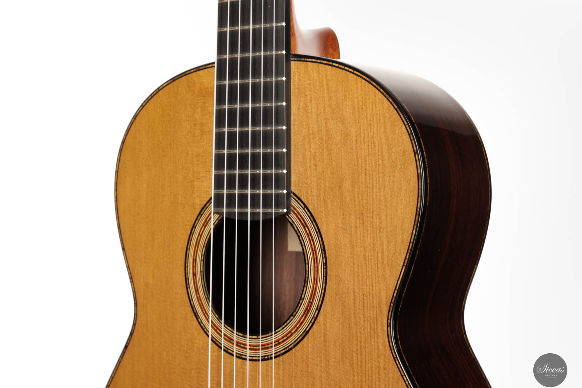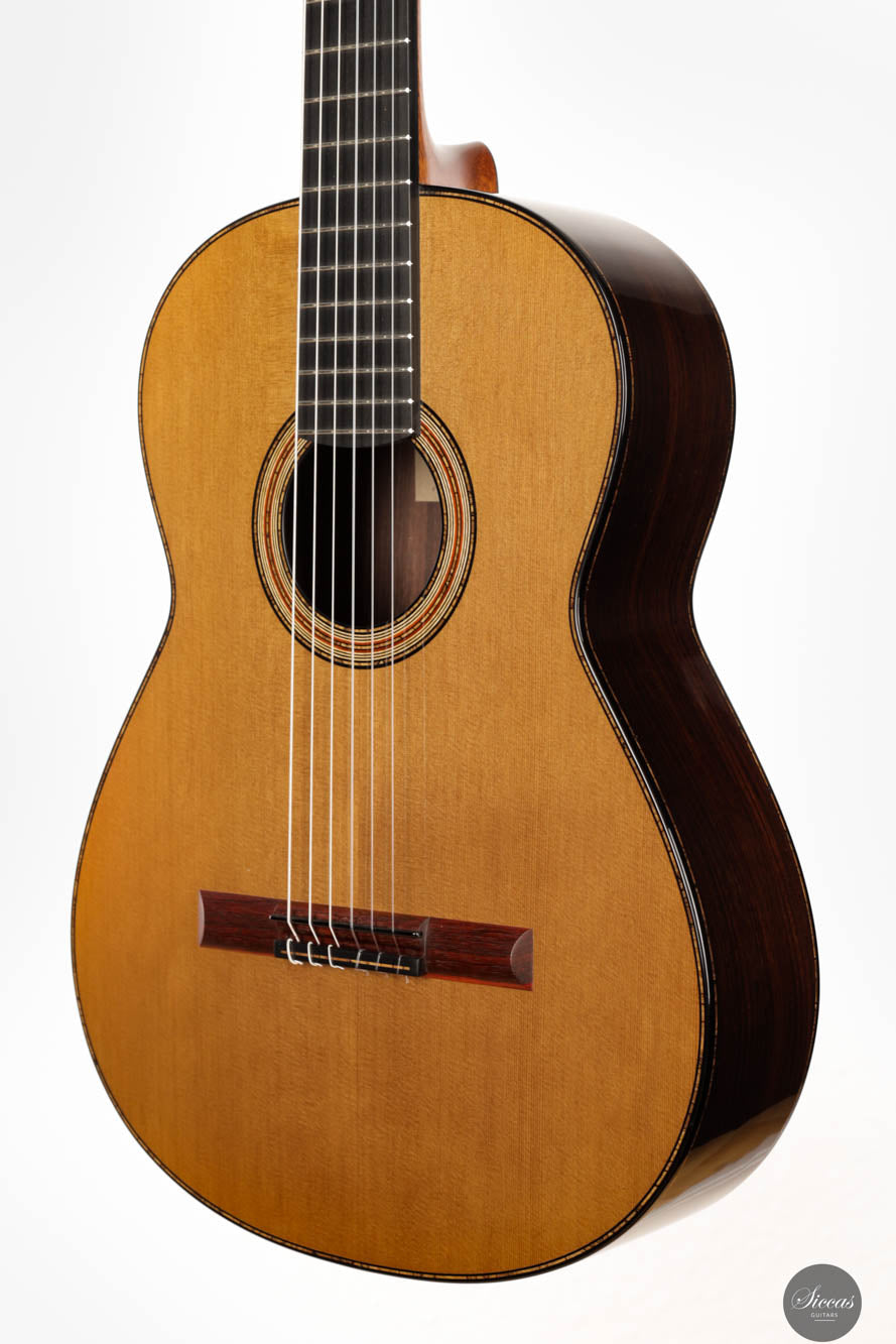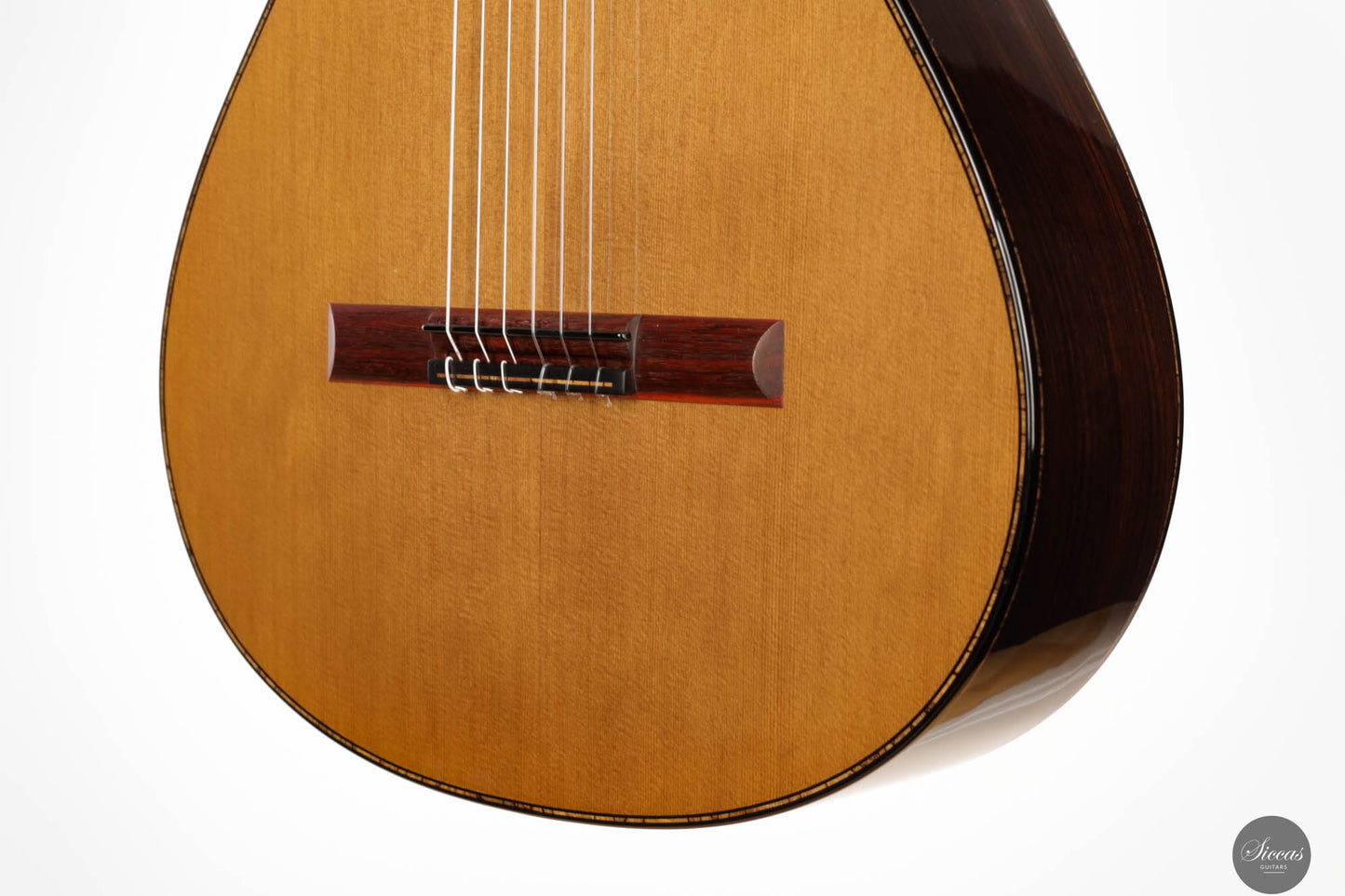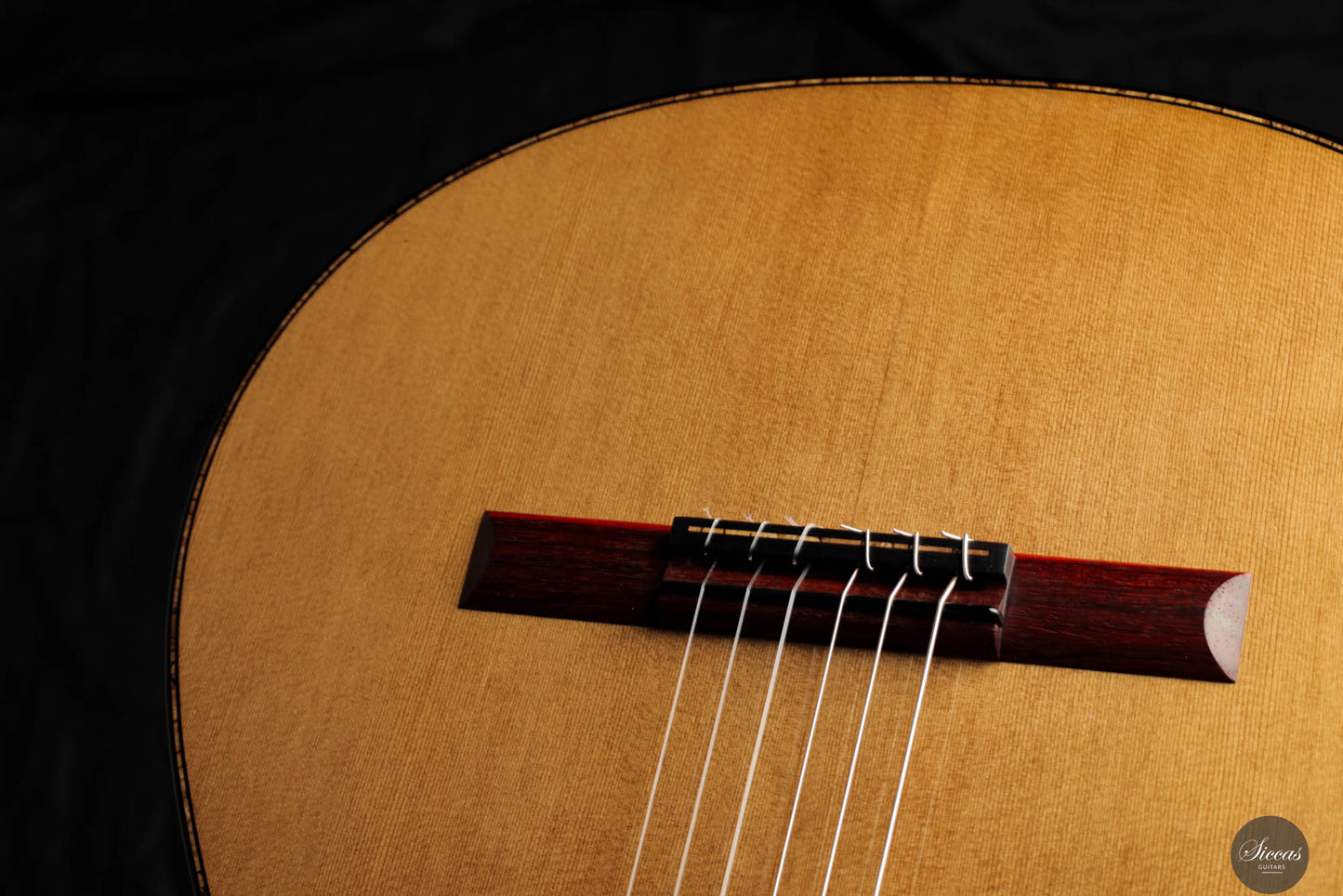 Die klassische Gitarre mit ihren weichen Nylonsaiten und ihrem charakteristischen Timbre ist zum Symbol der Kammermusik, der spanischen Tradition und des Konzertrepertoires geworden. Ihre moderne Form prägte Antonio de Torres im 19. Jahrhundert, indem er den Standard für Korpus, Fächerbeleistung und die 65-Zentimeter-Mensur setzte, die bis heute verwendet werden. Instrumente dieser Kategorie eröffnen eine reiche Palette von den feinen romantischen Miniaturen Tárregas bis zu den majestätischen Konzerten Rodrigos. Hier finden Sie Gitarren, die historische Kontinuität bewahren und zugleich zu neuen Interpretationen anregen.