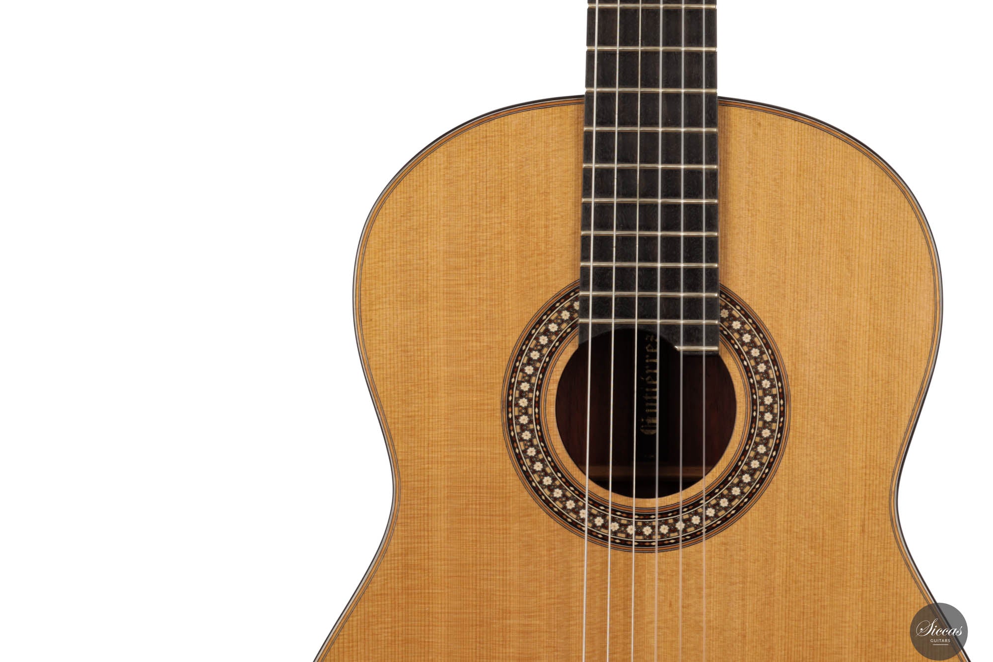Die klassische Gitarre mit ihren weichen Nylonsaiten und ihrem charakteristischen Timbre ist zum Symbol der Kammermusik, der spanischen Tradition und des Konzertrepertoires geworden. Ihre moderne Form prägte Antonio de Torres im 19. Jahrhundert, indem er den Standard für Korpus, Fächerbeleistung und die 65-Zentimeter-Mensur setzte, die bis heute verwendet werden. Instrumente dieser Kategorie eröffnen eine reiche Palette von den feinen romantischen Miniaturen Tárregas bis zu den majestätischen Konzerten Rodrigos. Hier finden Sie Gitarren, die historische Kontinuität bewahren und zugleich zu neuen Interpretationen anregen.