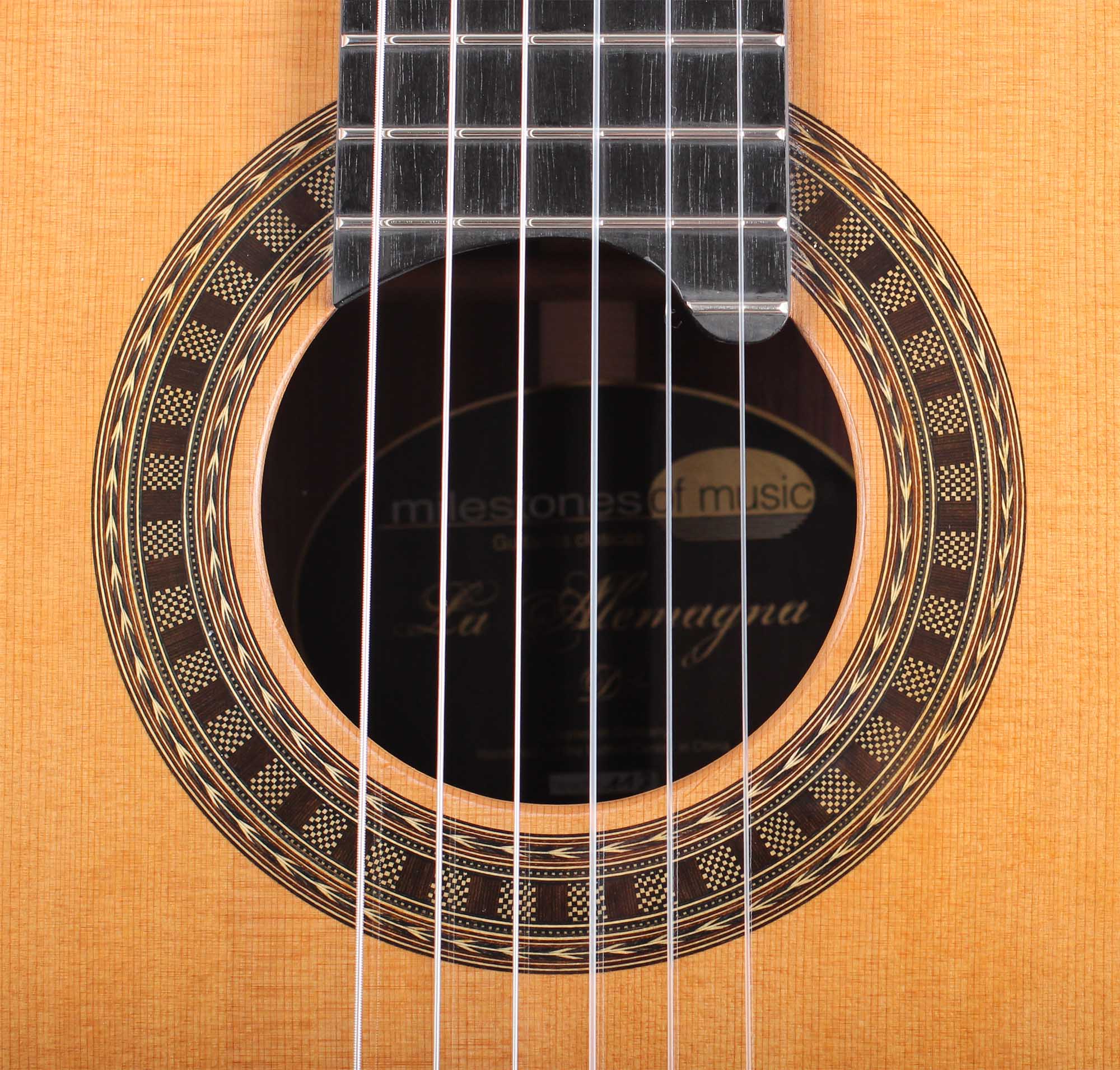 Die klassische Gitarre mit ihren weichen Nylonsaiten und ihrem charakteristischen Timbre ist zum Symbol der Kammermusik, der spanischen Tradition und des Konzertrepertoires geworden. Ihre moderne Form prägte Antonio de Torres im 19. Jahrhundert, indem er den Standard für Korpus, Fächerbeleistung und die 65-Zentimeter-Mensur setzte, die bis heute verwendet werden. Instrumente dieser Kategorie eröffnen eine reiche Palette von den feinen romantischen Miniaturen Tárregas bis zu den majestätischen Konzerten Rodrigos. Hier finden Sie Gitarren, die historische Kontinuität bewahren und zugleich zu neuen Interpretationen anregen.Alle Produkte der Kollektion ansehen -