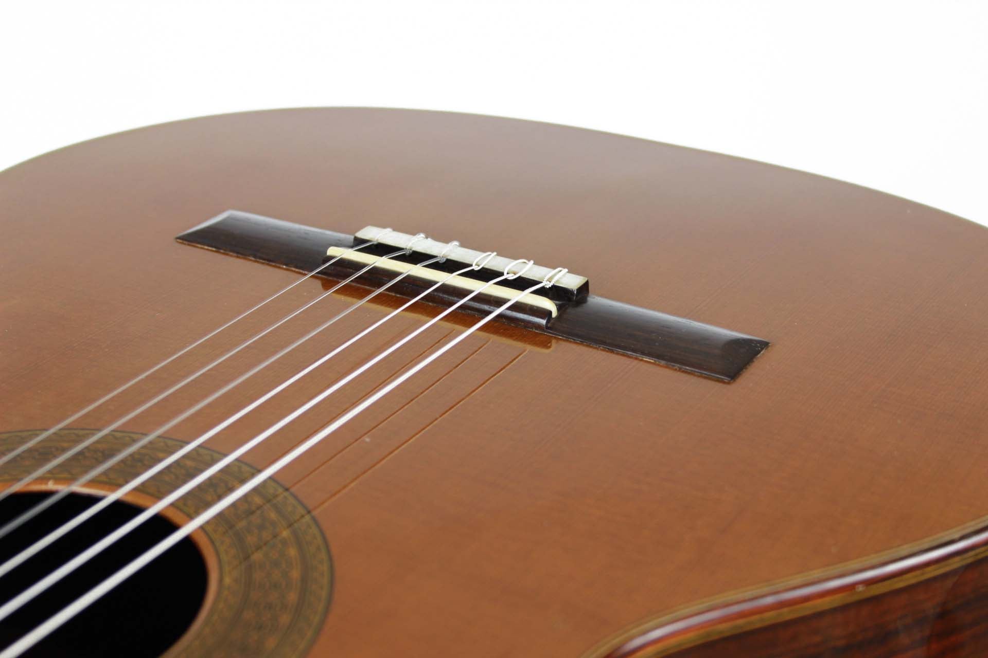 Preis auf AnfrageGitarrenbauer: Ignacio FletaBaujahr: 1954Decke: SpruceBoden und Zargen: Brazilian rosewood (CITES certified)Deckenoberfläche: French polishKorpusoberfläche: NitrocelluloseLuftresonanz: G / G sharpGewicht (g): 1585Mechaniken: FusteroZustand: Very good -