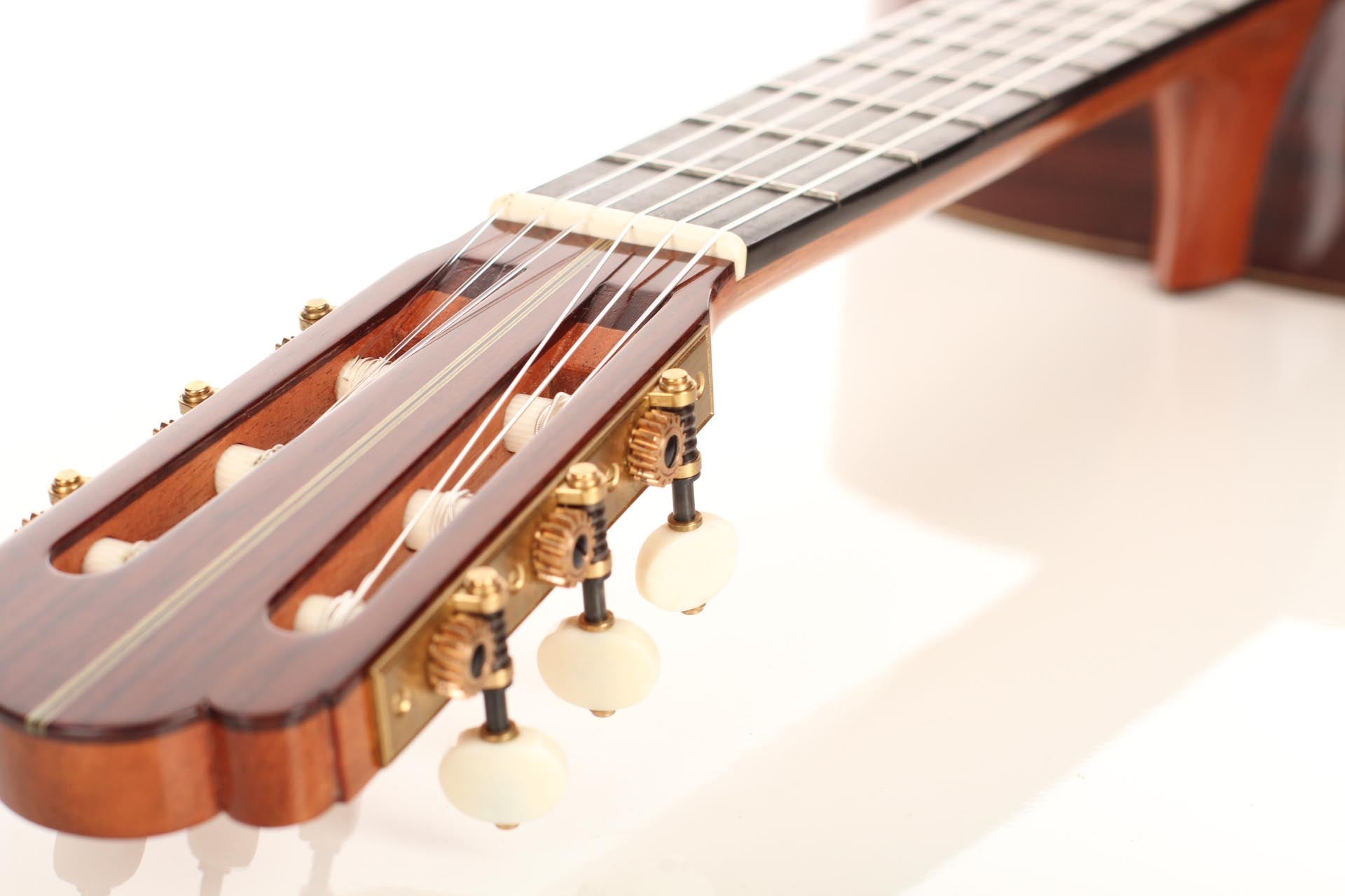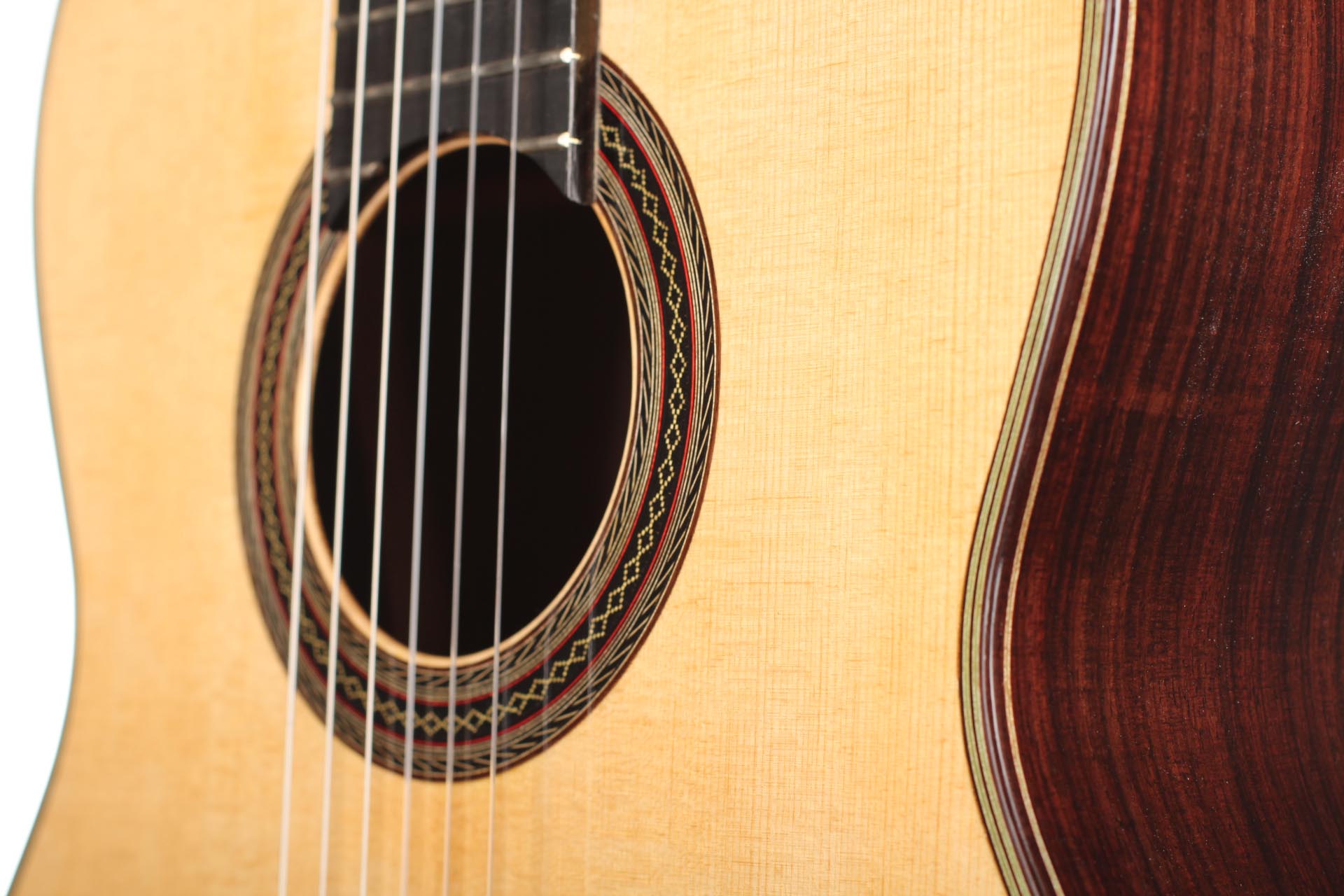 Die klassische Gitarre mit ihren weichen Nylonsaiten und ihrem charakteristischen Timbre ist zum Symbol der Kammermusik, der spanischen Tradition und des Konzertrepertoires geworden. Ihre moderne Form prägte Antonio de Torres im 19. Jahrhundert, indem er den Standard für Korpus, Fächerbeleistung und die 65-Zentimeter-Mensur setzte, die bis heute verwendet werden. Instrumente dieser Kategorie eröffnen eine reiche Palette von den feinen romantischen Miniaturen Tárregas bis zu den majestätischen Konzerten Rodrigos. Hier finden Sie Gitarren, die historische Kontinuität bewahren und zugleich zu neuen Interpretationen anregen.