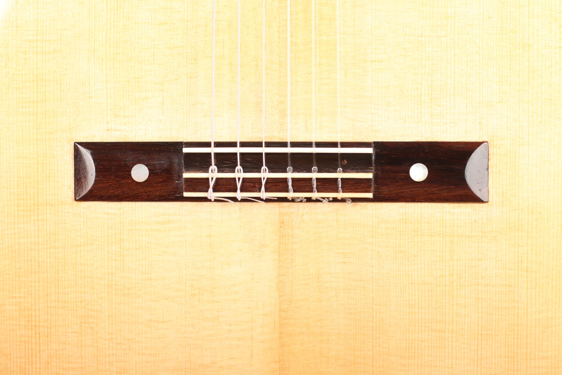 Das Ergebnis ist hervorragend und kommt dem Original klanglich und baulich sehr nahe. Der Klang ist sehr schön mit einem herausragend klaren Klangbild, der Ausgeglichenheit und bemerkenswertem Sustain. Der Bass ist tief und resonant bei einem Resonanzton um F#, der Diskant ist offen und singend. Es ist ein sehr gelungenes Instrument und die Bespielbarkeit ist sehr komfortabel. Die Decke ist aus Fichte gefertigt - Boden/Zargen sind aus indischem Palisander. Das Instrument in einem sehr guten Zustand. Die Mechaniken sind von Klaus Scheller und ein Hartschalenkoffer ist inklusive.