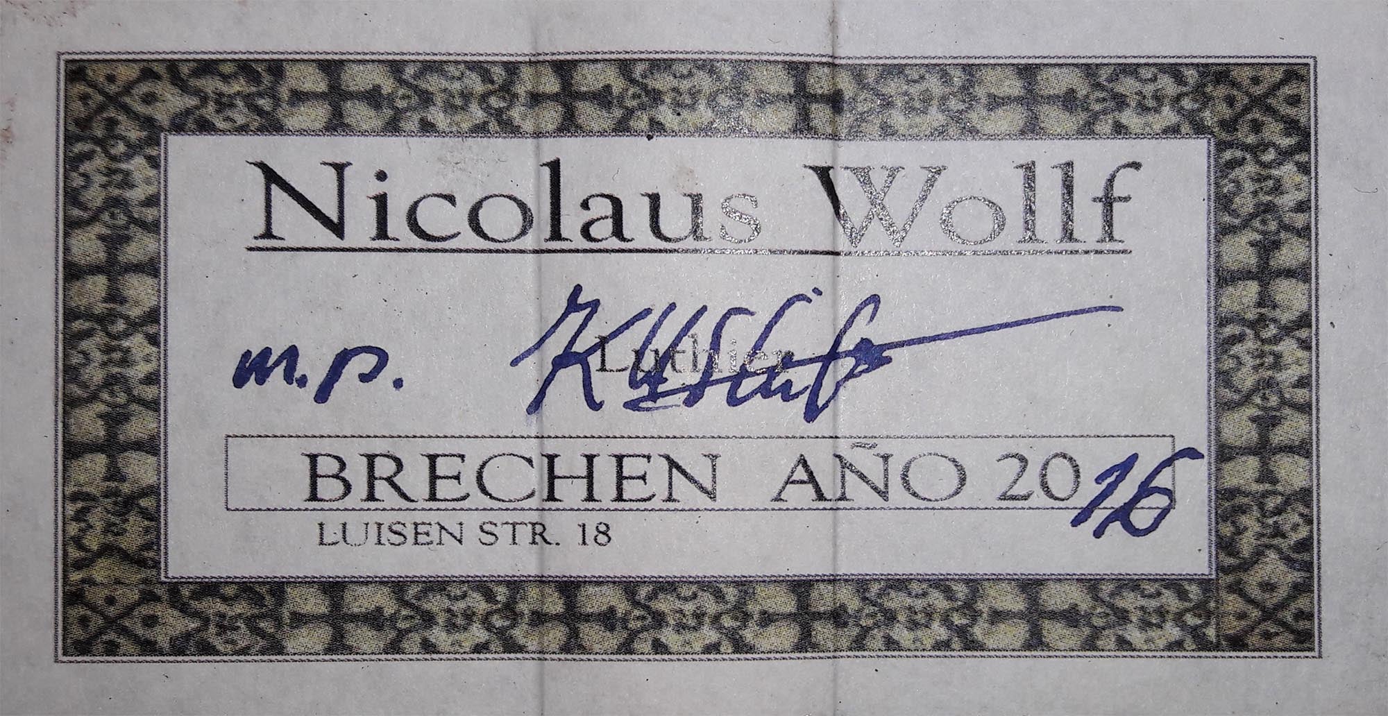 Nicolaus Wollf begann 1966 mit dem Gitarrenbau und absolvierte seine Lehre bei Gitarrenbaumeister Ernest Köröskeny und anschließend bei dem Gitarrenbaumeister Dieter Hopf in dessen Werkstatt er von 1971 bis 1994 arbeitete. 1994 eröffnete er schließlich sein eigenes Atelier in Oberneisen um diese dann im Sommer 1999 nach Niederbrechen zu verlegen.