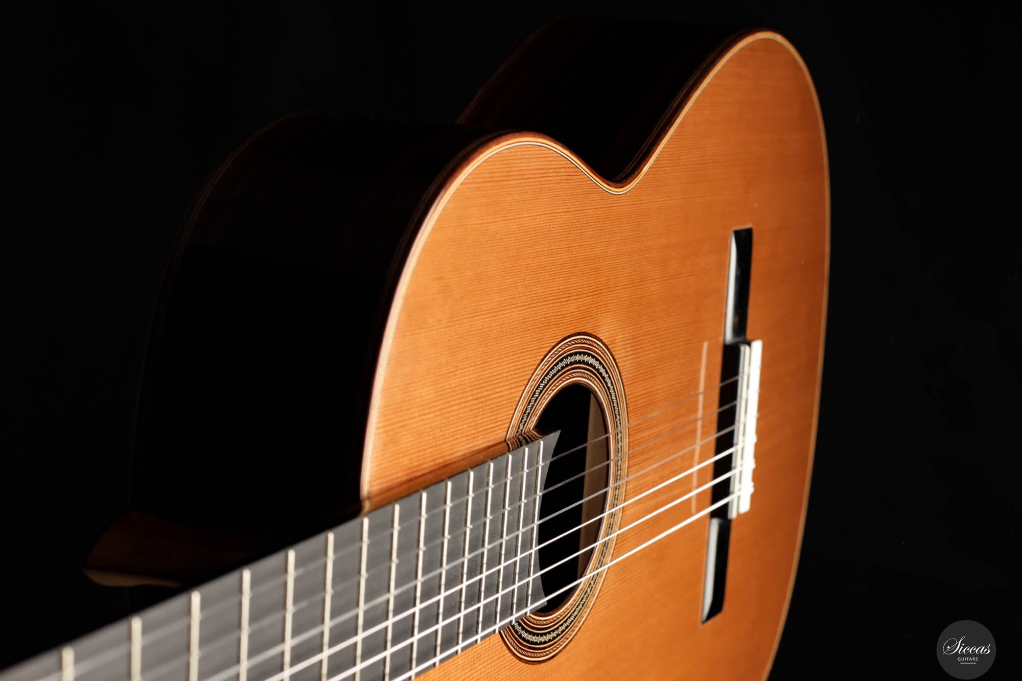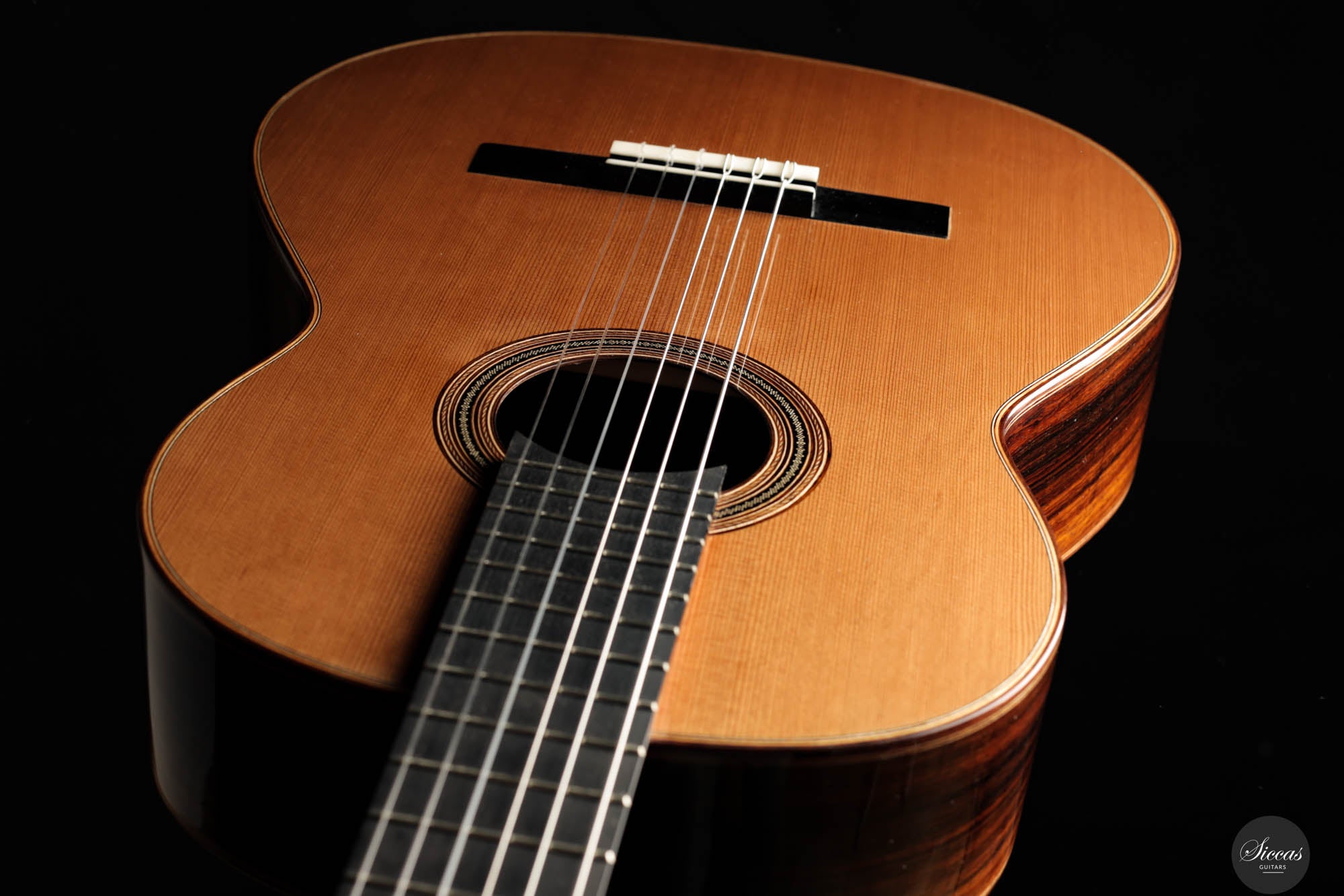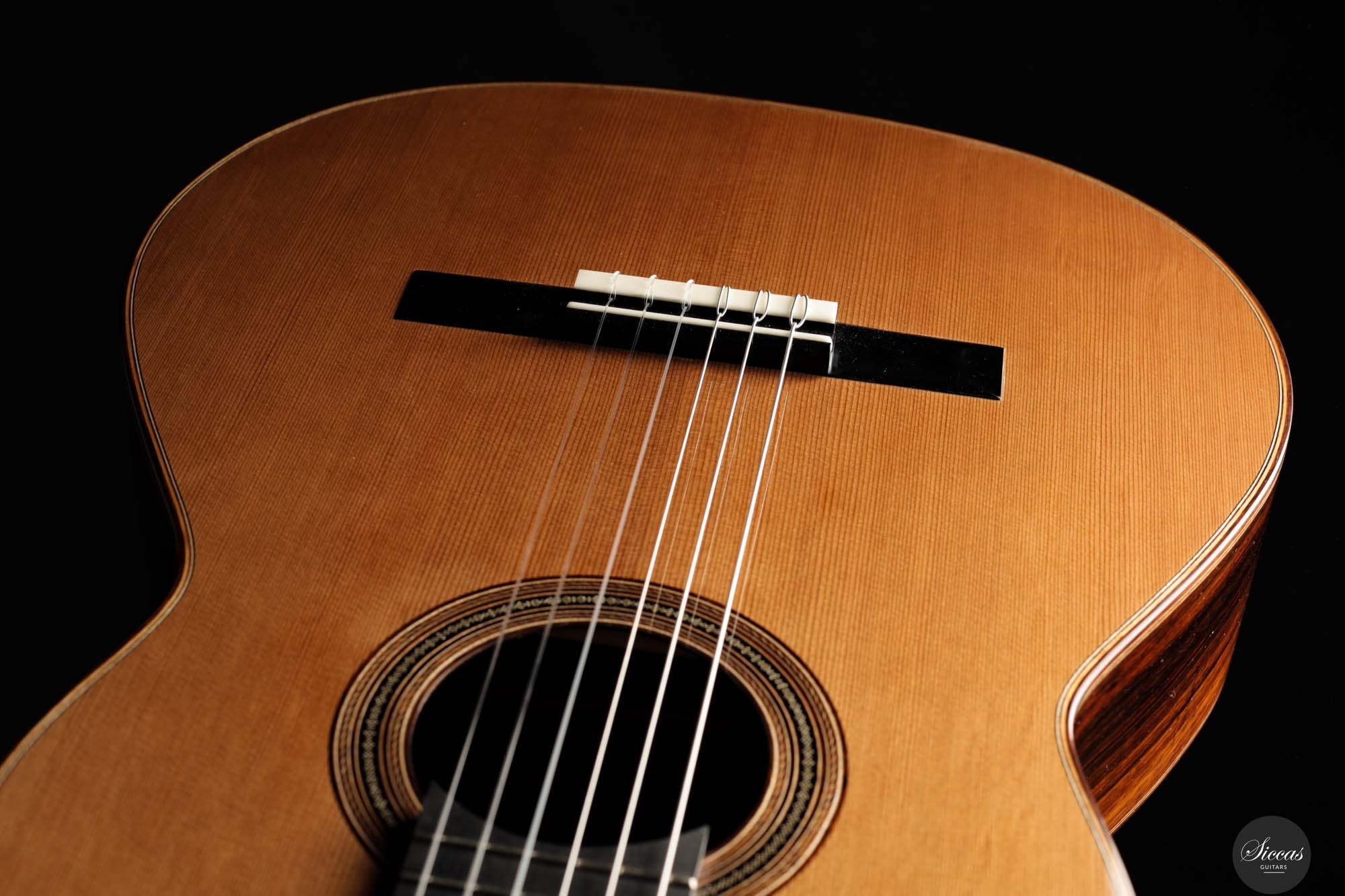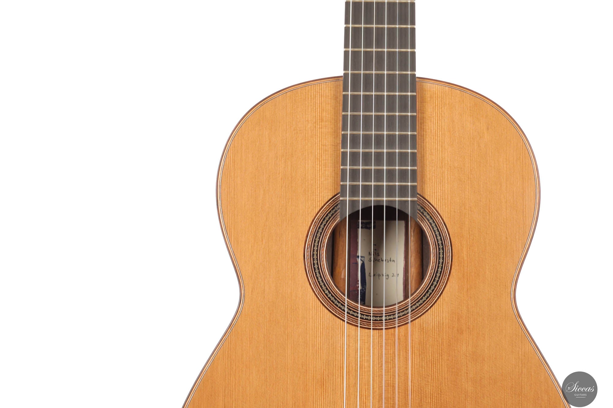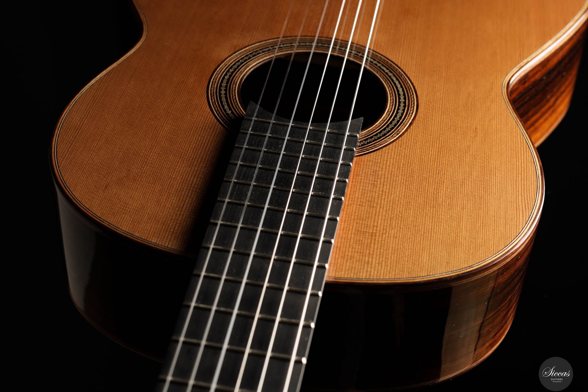 Die Nils Schebesta Balsa-Doubletop-Gitarre zeigt einen innovativen Ansatz im Design von Konzertinstrumenten, maßgeschneidert für den modernen Interpreten, der ein unverwechselbares und immersives Musikerlebnis sucht. Mit einer Double-Top-Konstruktion mit einem Kern aus Balsa bietet diese Gitarre eine reiche, dunkle Klangpalette, die typisch für hochwertige deutsche Doubletop-Instrumente ist. Ihre sorgfältig gefertigten Einlegearbeiten, Rosette und Hals unterstreichen Schebestas außergewöhnliche Liebe zum Detail und künstlerisches Geschick. Die Höhen sind warm, rund und bemerkenswert verzeihend, was ein glattes und ausdrucksstarkes Spielerlebnis ermöglicht, während die tiefen, luftigen Bässe Tiefe und Resonanz hinzufügen. Dieses Instrument bietet eine mühelos zufriedenstellende Performance und macht es zu einer herausragenden Wahl für anspruchsvolle Musiker.