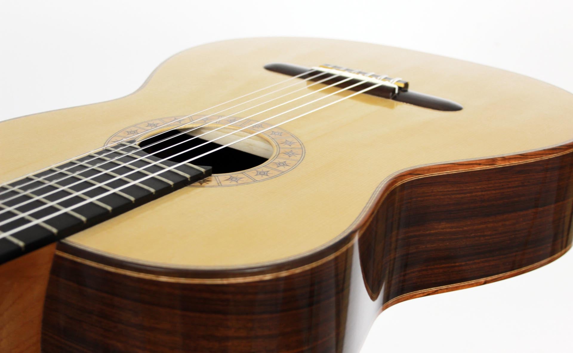 Die klassische Gitarre mit ihren weichen Nylonsaiten und ihrem charakteristischen Timbre ist zum Symbol der Kammermusik, der spanischen Tradition und des Konzertrepertoires geworden. Ihre moderne Form prägte Antonio de Torres im 19. Jahrhundert, indem er den Standard für Korpus, Fächerbeleistung und die 65-Zentimeter-Mensur setzte, die bis heute verwendet werden. Instrumente dieser Kategorie eröffnen eine reiche Palette von den feinen romantischen Miniaturen Tárregas bis zu den majestätischen Konzerten Rodrigos. Hier finden Sie Gitarren, die historische Kontinuität bewahren und zugleich zu neuen Interpretationen anregen.Alle Gitarren der Kollektion ansehen -