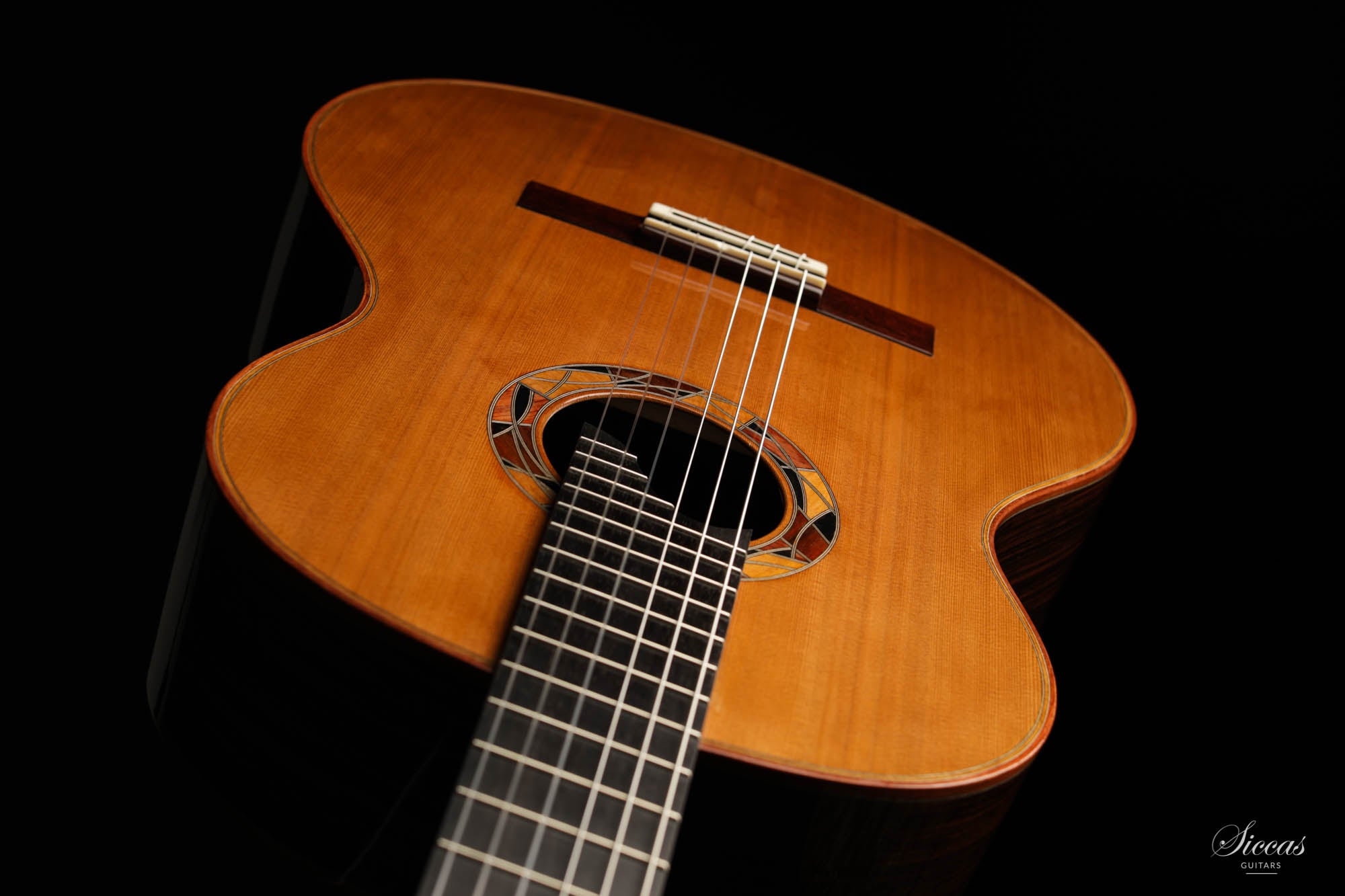 "Daniel Lesueur lehrte mich die Liebe zur Arbeit auf der Suche nach Perfektion. Nachdem er selbst bei Daniel Friedrich in die Lehre gegangen war, teilte er mir seine geheimsten Erkenntnisse und die, die er von seinem "Meister" gelernt hatte, mit. In die Idee und Herstellung einer klassischen Gitarre einzutauchen, erscheint mir wie eine mystische Initiierung. Höchste Konzentration ist erforderlich, um den langen Weg bis zu einem vielleicht "großen" Instrument zu beschreiten. Meine Vorstellung von einem grossartigen Instrument ist in erster Linie eine, die meinem Geschmack entspricht, mehr noch als eine vorübergehende Modeerscheinung. Während meiner gesamten Recherchen habe ich versucht, Antworten auf Probleme zu finden, die von meinen Mentoren nicht beantwortet werden konnten. Wie in allen künstlerischen Werken sind die Fragen nie endend, und darin liegt die Freude am Handwerk - jeder Tag bringt eine neue Entdeckung. Die Demut vor dem atmenden Material und die Vollkommenheit der Akustik, die mit diesen vielfältigen Hölzern verbunden ist, bildet den Kern des Gitarrenbauerhandwerks. Im Klang fühle ich mich ein wenig wie ein Bildhauer. »