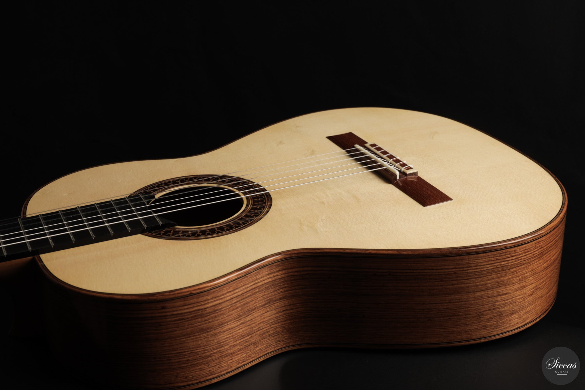 Über das gesamte Register hinweg bietet die Gitarre volle Töne, gutes Sustain und einen natürlichen Fluss zwischen melodischen Linien. Sie projiziert sicher, ohne forciert werden zu müssen, und feine Veränderungen der rechten Hand bringen leicht unterschiedliche Klangfarben hervor. Das Ergebnis ist eine traditionelle Konzertgitarre mit moderner Kraft und Reaktionsfreude, geformt mit Sorgfalt, Sensibilität und einer klar individuellen musikalischen Stimme.