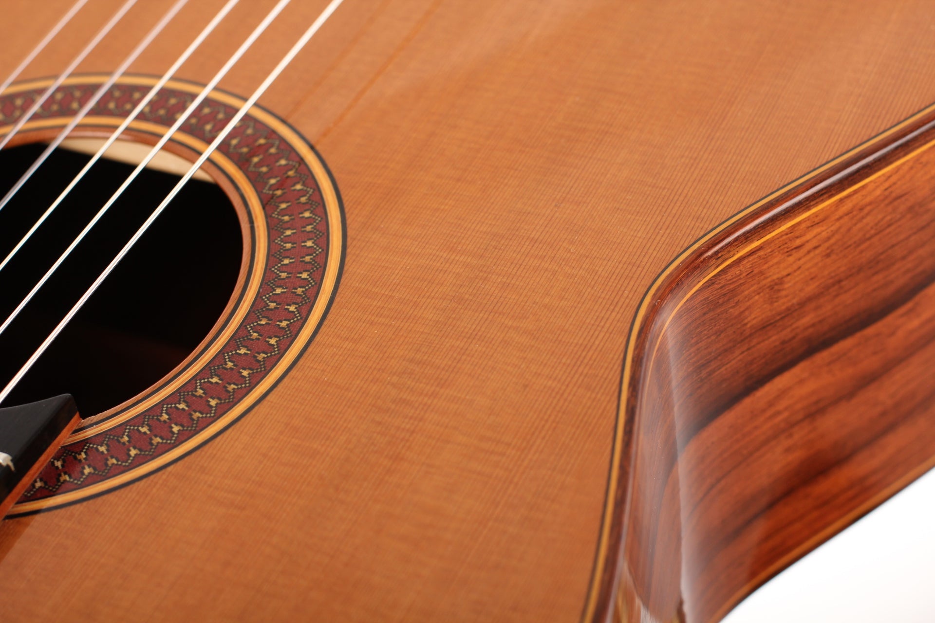 Preis auf AnfrageGitarrenbauer: Ignacio FletaBaujahr: 2018Decke: CedarBoden und Zargen: Indian rosewoodDeckenoberfläche: French polishKorpusoberfläche: French polishLuftresonanz: A / A sharpGewicht (g): 1850Mechaniken: FusteroZustand: Excellent -