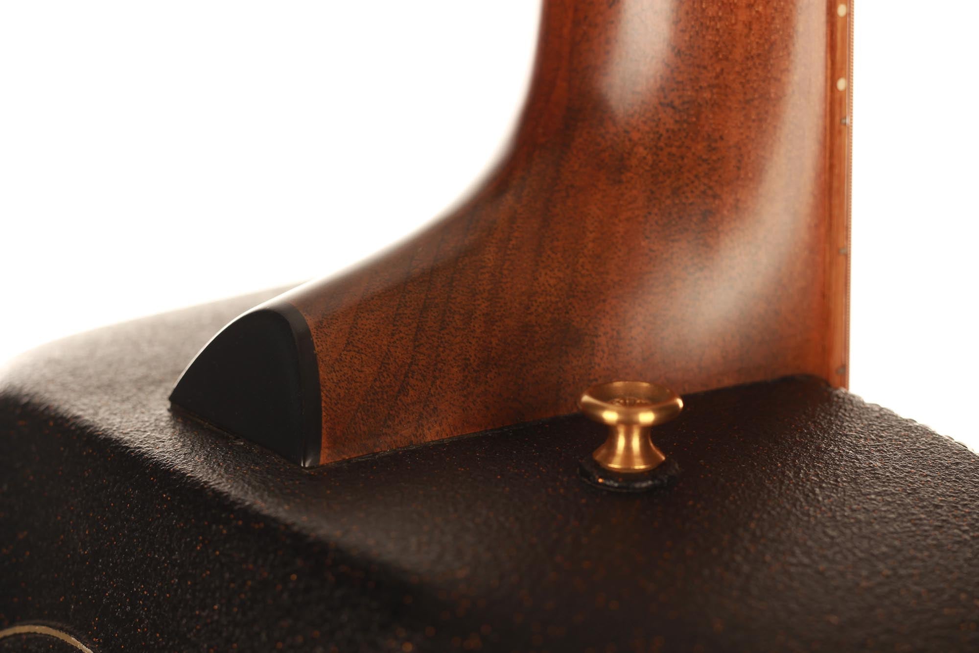 This was the top model from Ovation at that time and features the carved head and bridge, the leaf sound-holes and the piezo pickup with pre-amp. Also, the original hard case, the instrument pass, and the care instructions are preserved. The sound of the guitar is also very impressive. It sounds powerful and expressive, with full basses and clear trebles. this Adams is not only interesting for enthusiasts and collectors but due to its solid and robust construction, it is also suitable for active musicians and can easily handle the daily tour routine.