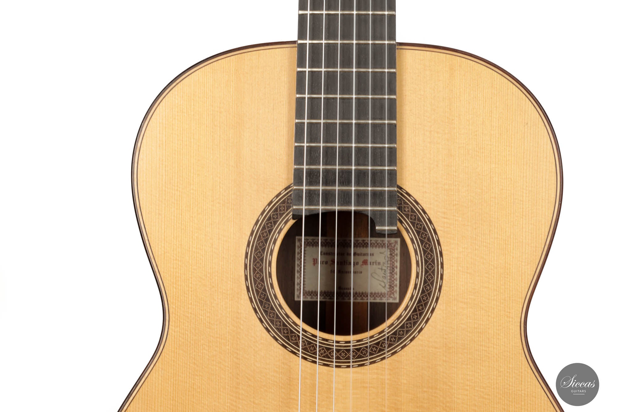 Paco Santiago Marín was born in Granada in 1946. His father, Francisco Santiago Oliva, was a cabinet maker of vocation and taught his son Paco Santiago the delicate art of wood crafting. In 1963 Paco Santiago joined his uncle's workshop, Antonio Marín Montero, to complete his transition from a cabinet maker to a full-fledged luthier. In 1972 he decided to start his workshop.