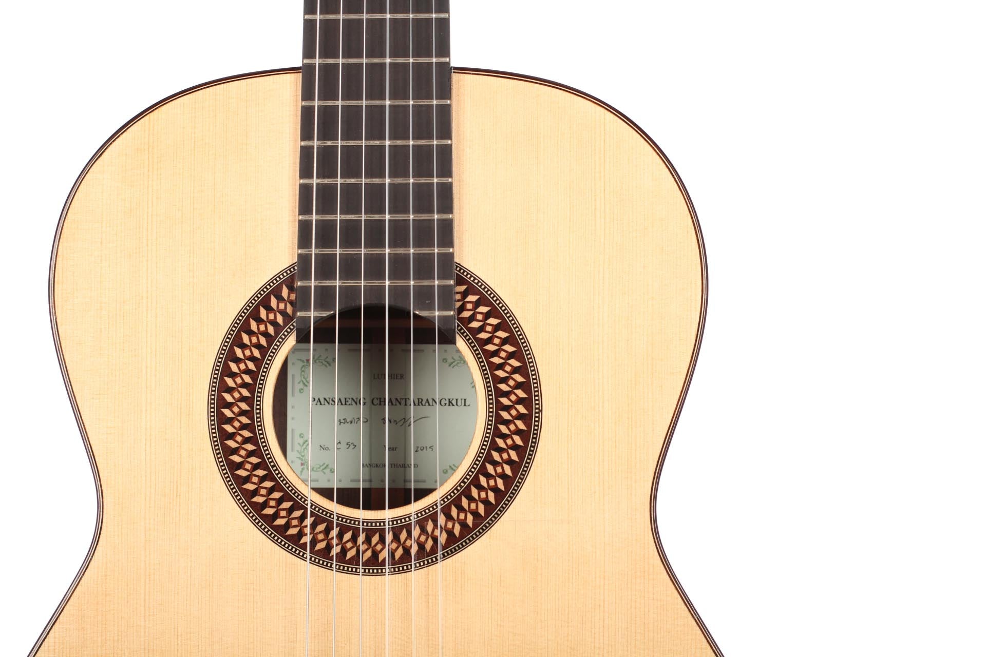 Pansaeng Chantarangkul is a Thailand based guitar maker. He learned the art of guitar making from Yuichi Imai in Tokyo, Japan, before attending to one of the famous Jose Luis Romanillos’ Spanish guitar making course. Recently in contact with Henner Hagenlocher, Granada, Pansaeng Chantarangkul is building classical guitars in the Spanish tradition.