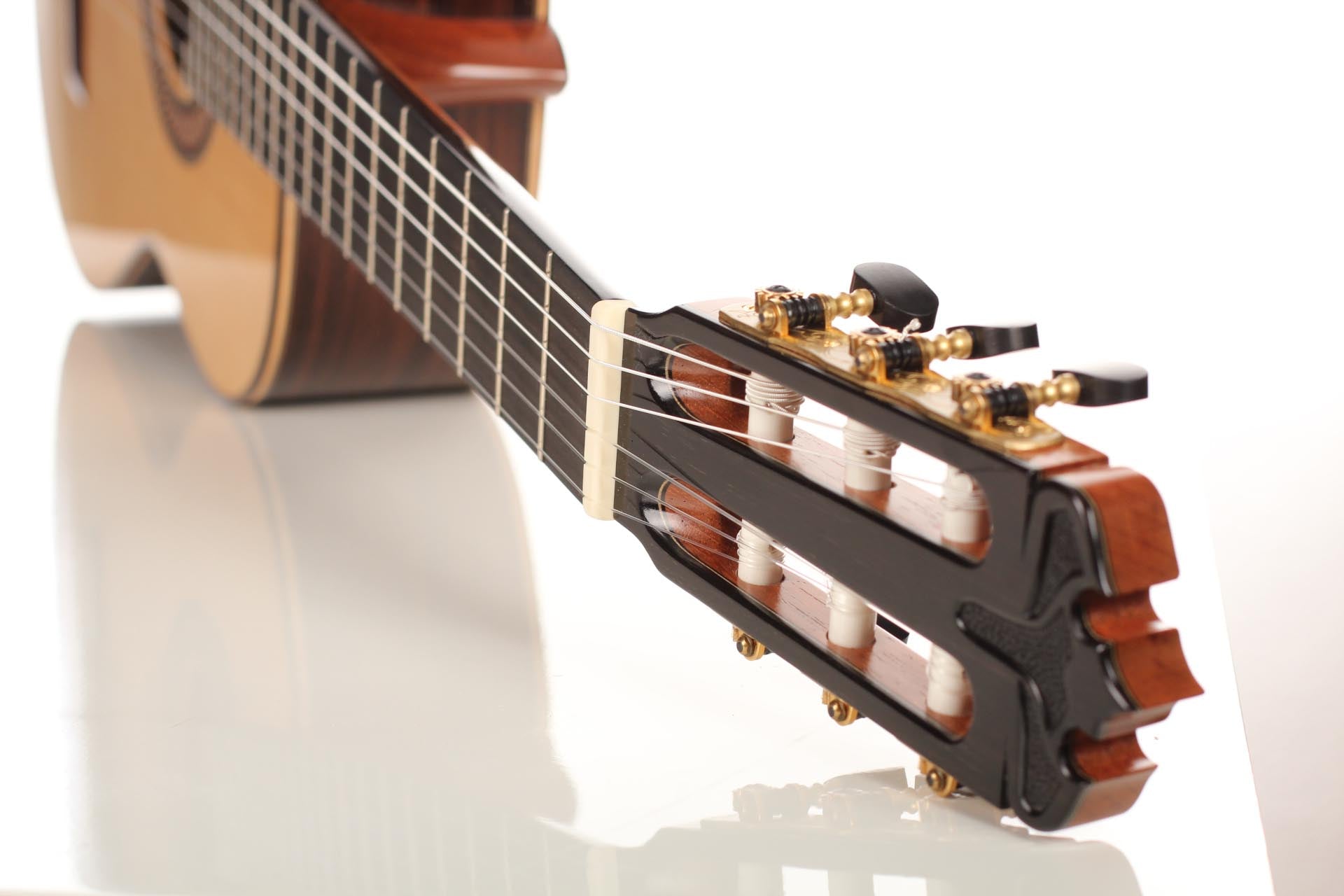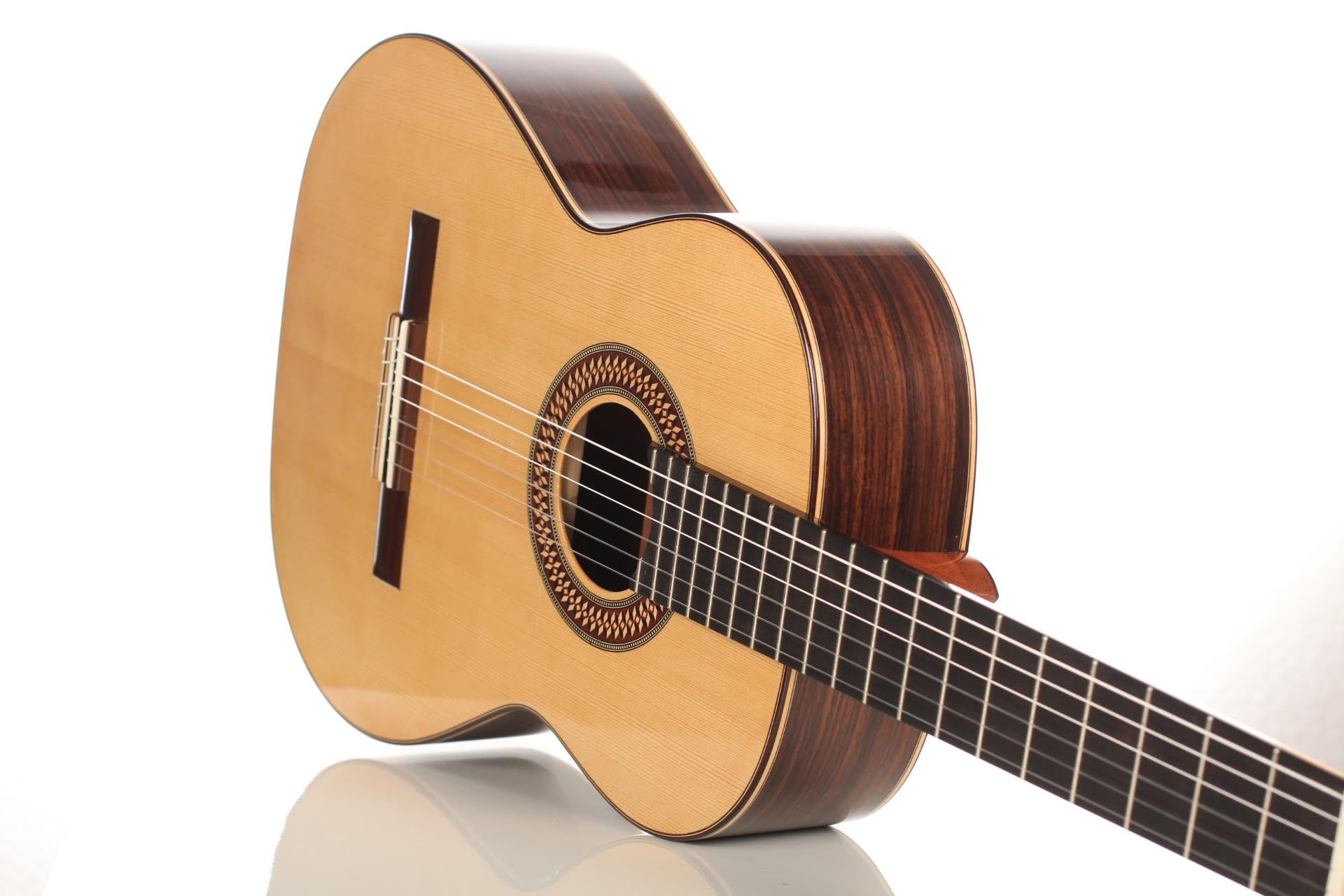 Klassische GitarreDie klassische Gitarre mit ihren weichen Nylonsaiten und ihrem charakteristischen Timbre ist zum Symbol der Kammermusik, der spanischen Tradition und des Konzertrepertoires geworden. Ihre moderne Form prägte Antonio de Torres im 19. Jahrhundert, indem er den Standard für Korpus, Fächerbeleistung und die 65-Zentimeter-Mensur setzte, die bis heute verwendet werden. Instrumente dieser Kategorie eröffnen eine reiche Palette von den feinen romantischen Miniaturen Tárregas bis zu den majestätischen Konzerten Rodrigos. Hier finden Sie Gitarren, die historische Kontinuität bewahren und zugleich zu neuen Interpretationen anregen.Alle Klassische Gitarren ansehen