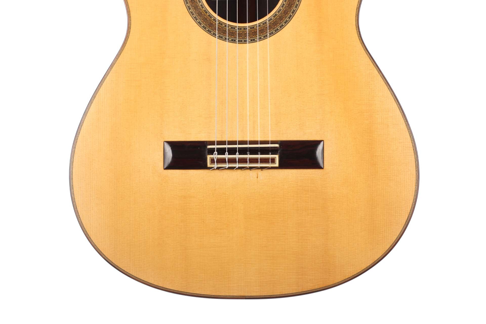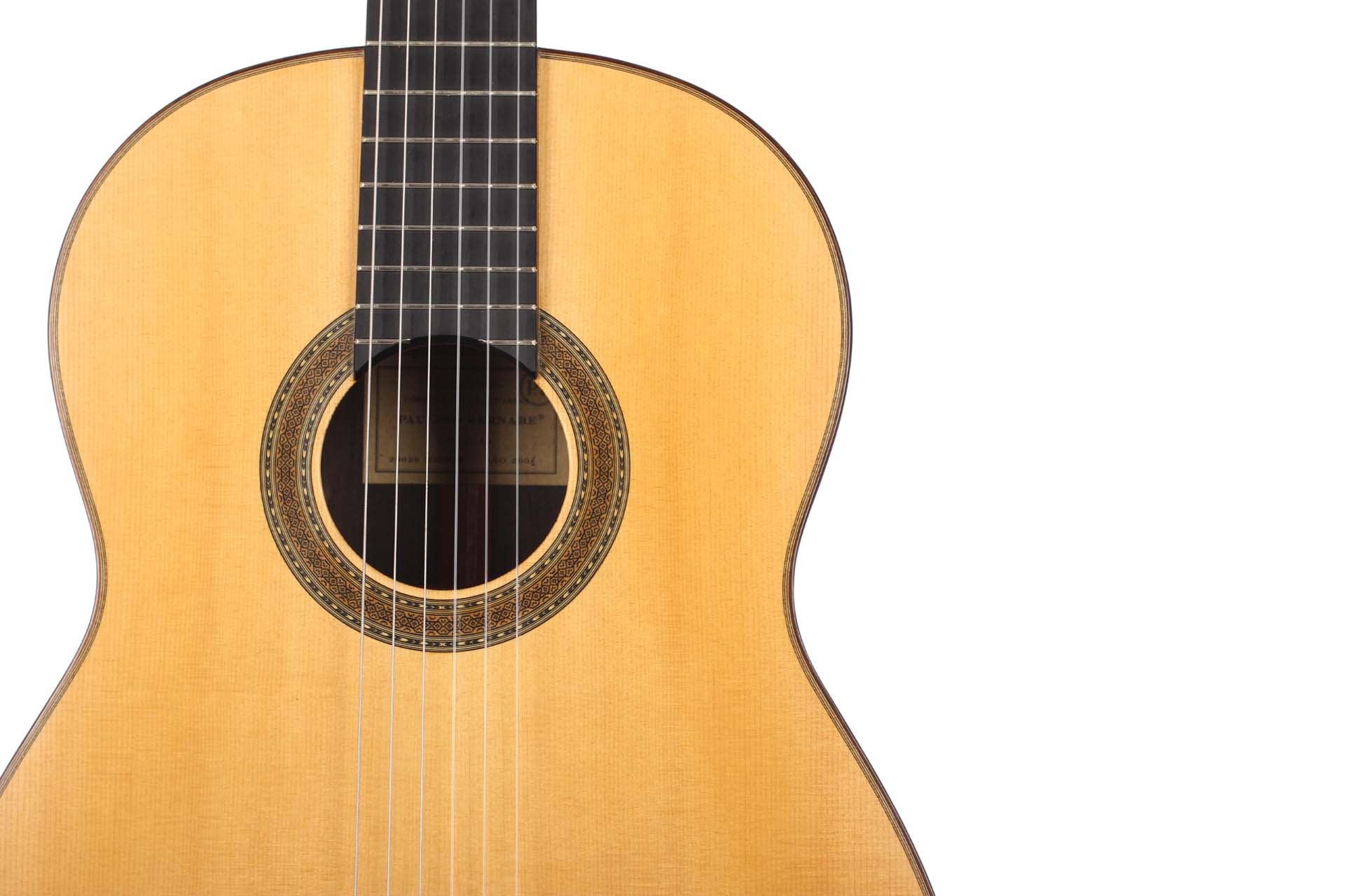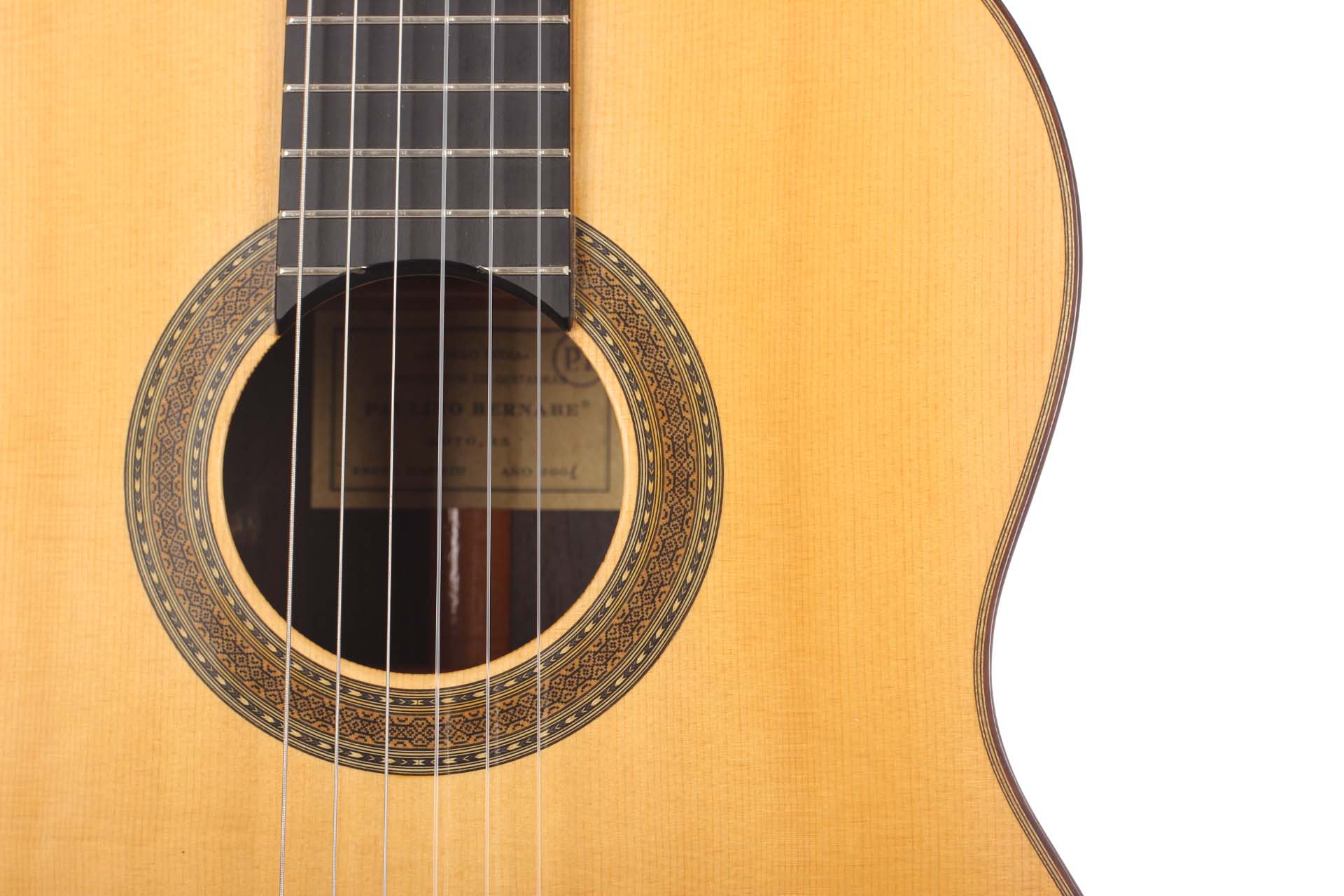 Diese Gitarre wurde von Paulino Bernabé Senior im Jahr 2001 gebaut. P. Bernabé Senior war einer der bedeutendsten und bekanntesten Gitarrenbauern aus Spanien. Im Jahr 1969 gründete er seine erste eigene Werkstatt nachdem er zuvor viele Jahre als Gitarrenbauer bei José Ramirez III gearbeitet hatte. Er experimentierte viel und entwickelte eine damals neuartige Anordnung der Deckenbeleistung. Diese besteht aus vier Leisten, die vom Schallloch ausgehend fächerartig angeordnet sind sowie drei Verstärkungsleisten. Nach dem Tod seines Vaters im Jahr 2007 übernahm sein Sohn die Werkstatt. Diese Gitarre befindet sich in einem guten Zustand. Unterhalb des Stegs befindet sich ein kleinere Beschädigung, die durch eine durchgerutschte Saite verursacht wurde. Die originalen Mechaniken sind von Rubner.