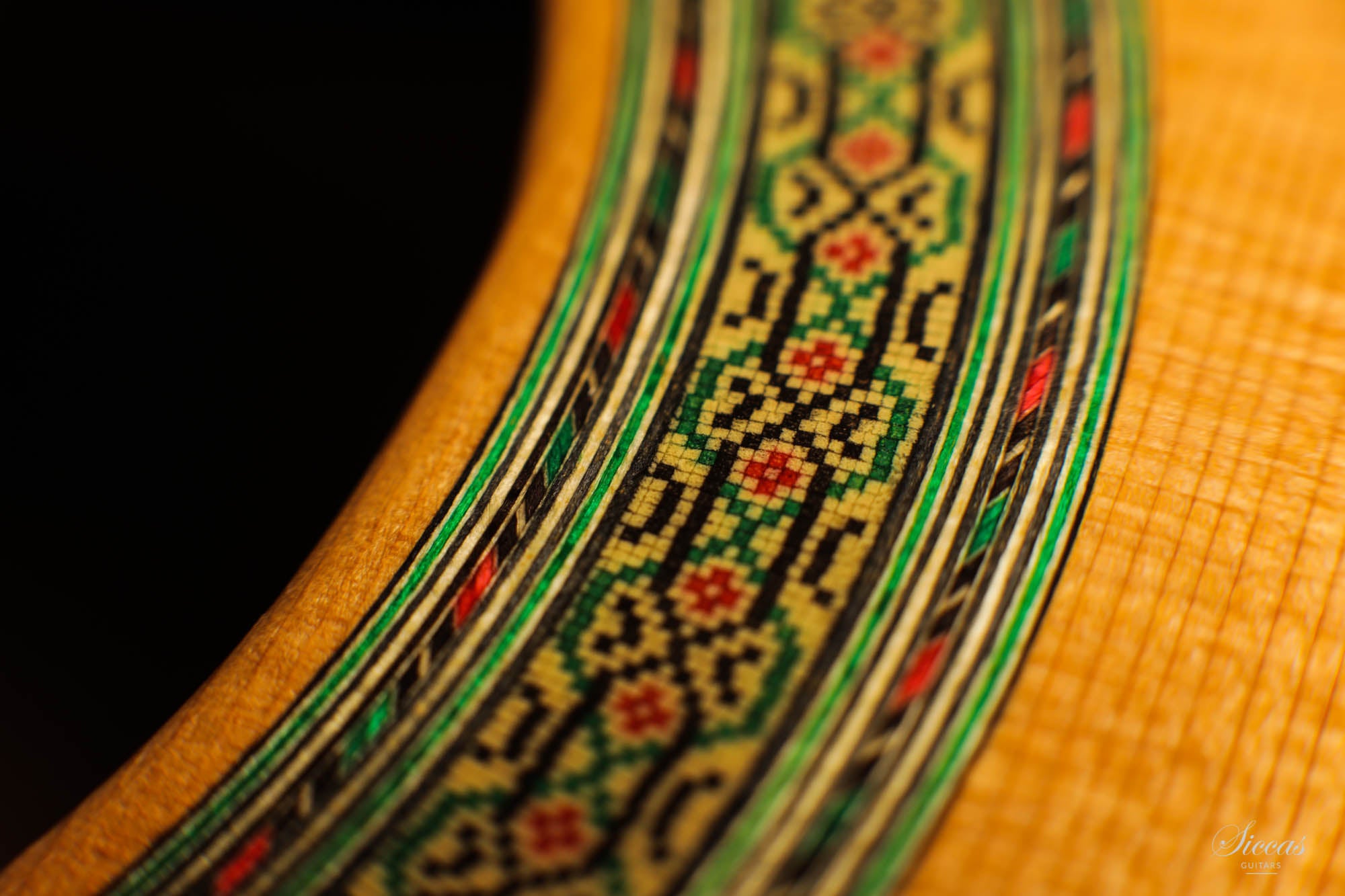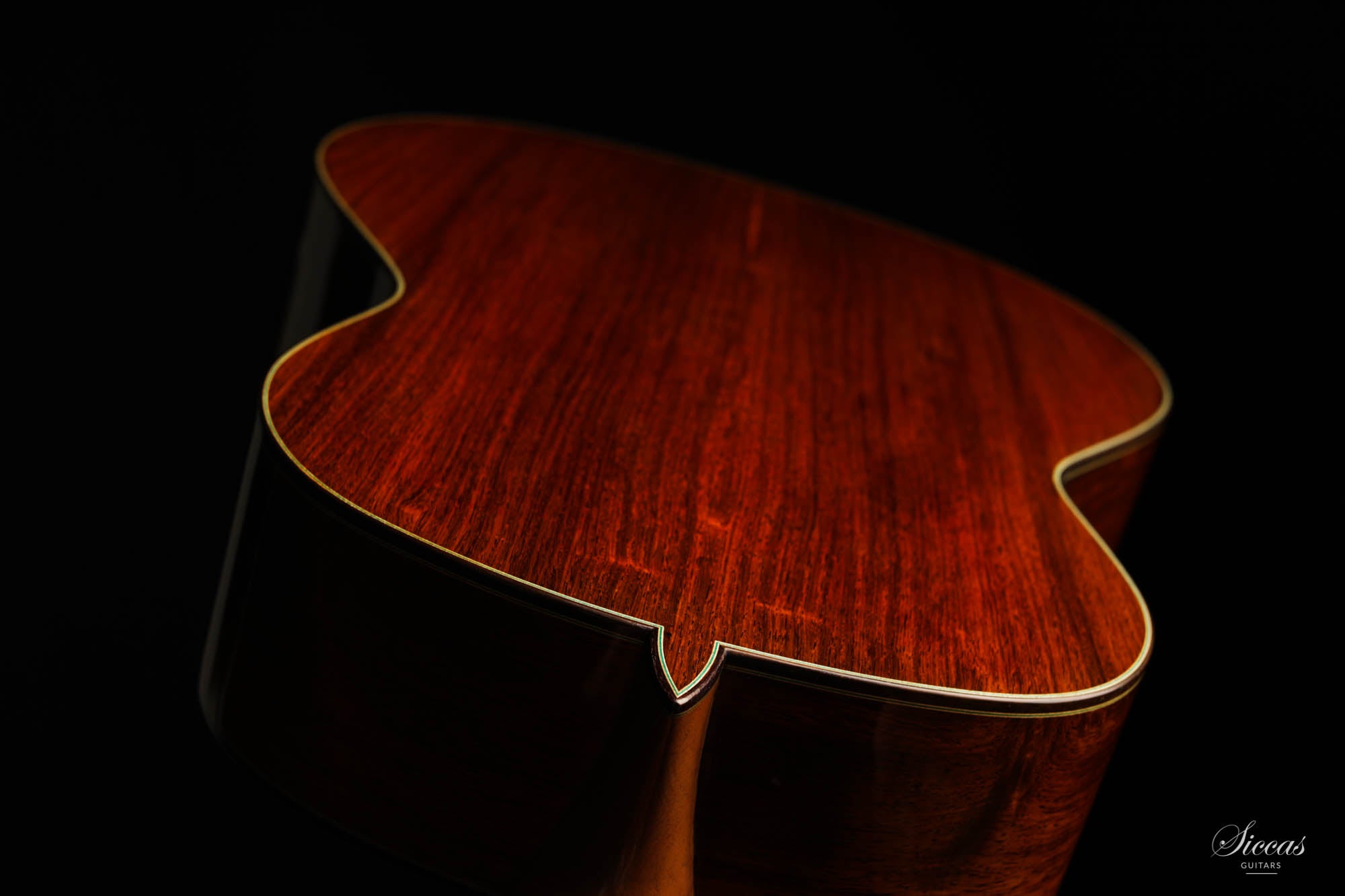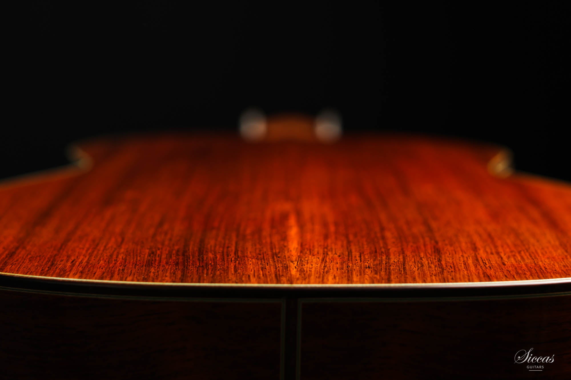 The Model 50 from Bernabe offers a variety of intriguing qualities. Stunning woods combined with excellent craftsmanship result in an overall inspiring guitar. The curly grain of the Bocote rosewood is an absolute eye-catcher. Creamy smooth trebles with a lyrical Spanish sense mixed with the strong fundamental basses capture the perfect mix between a modern guitar and a traditional tone. The volume is pleasant and plenty for any required situation, Bernabe’s guitars are always easy to play and have a smooth setup. When playing on this guitar you immediately notice how responsive it is, the cedar top creates angelic overtones that fill a room with a beautiful shimmer.