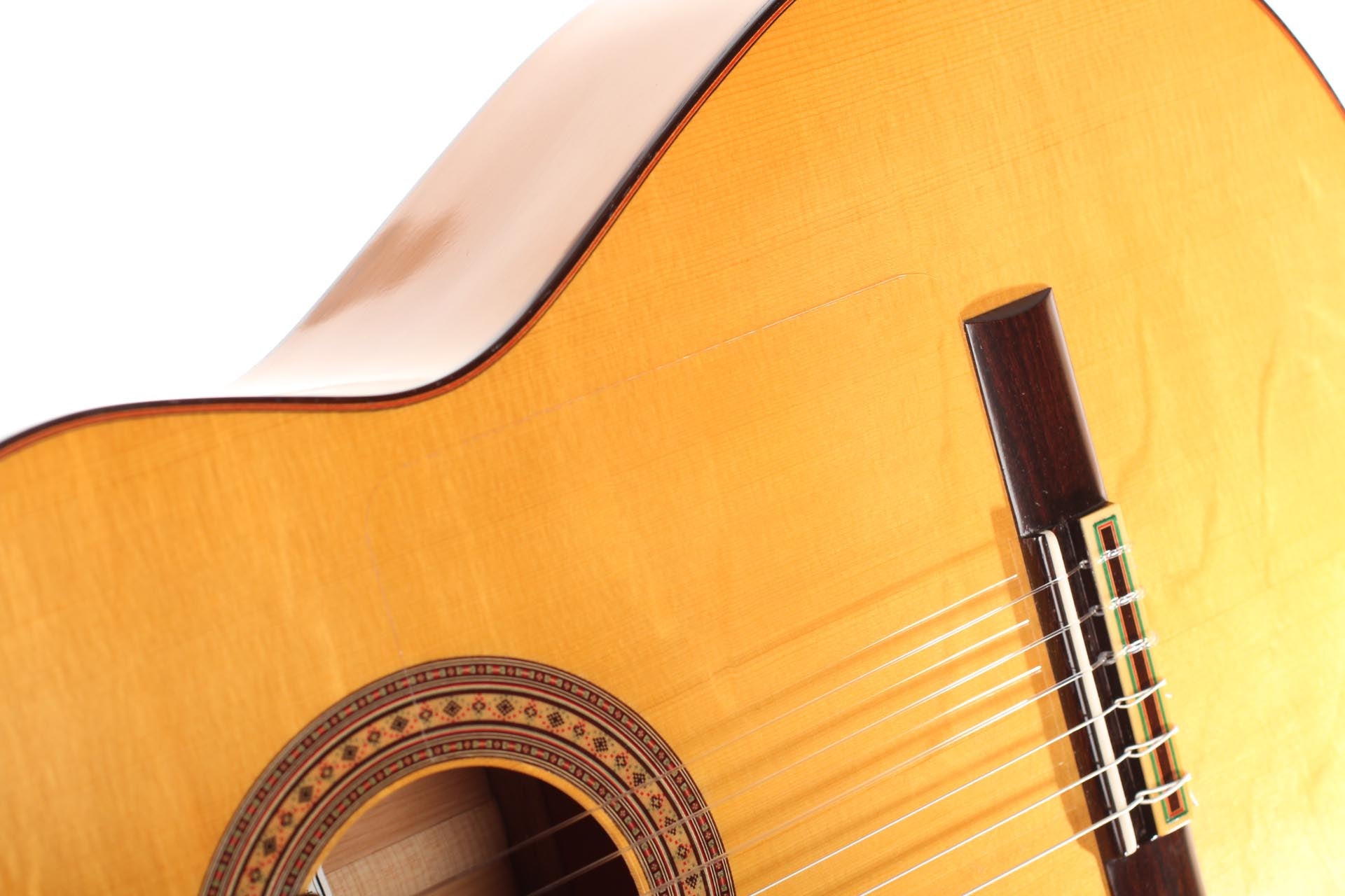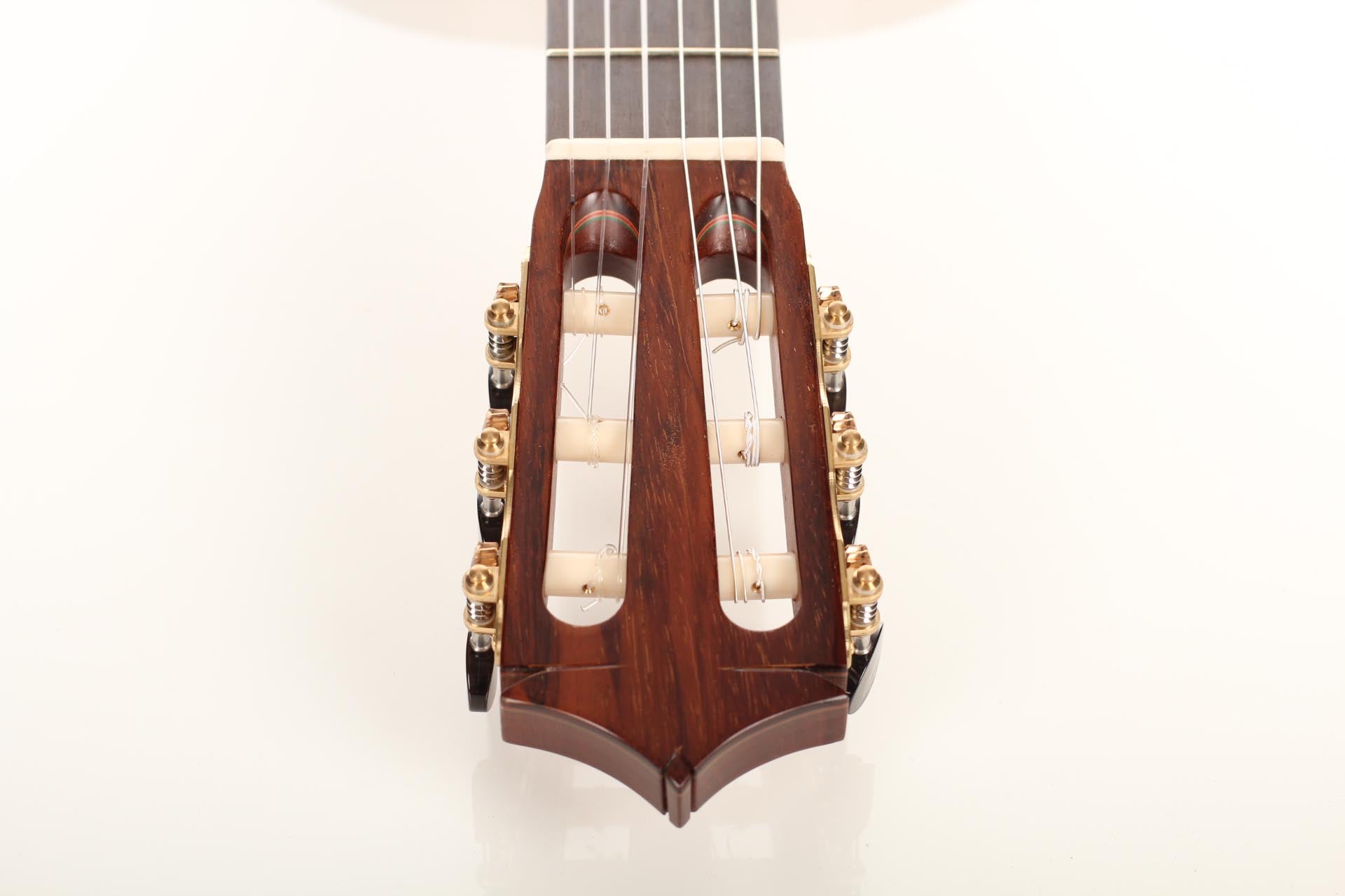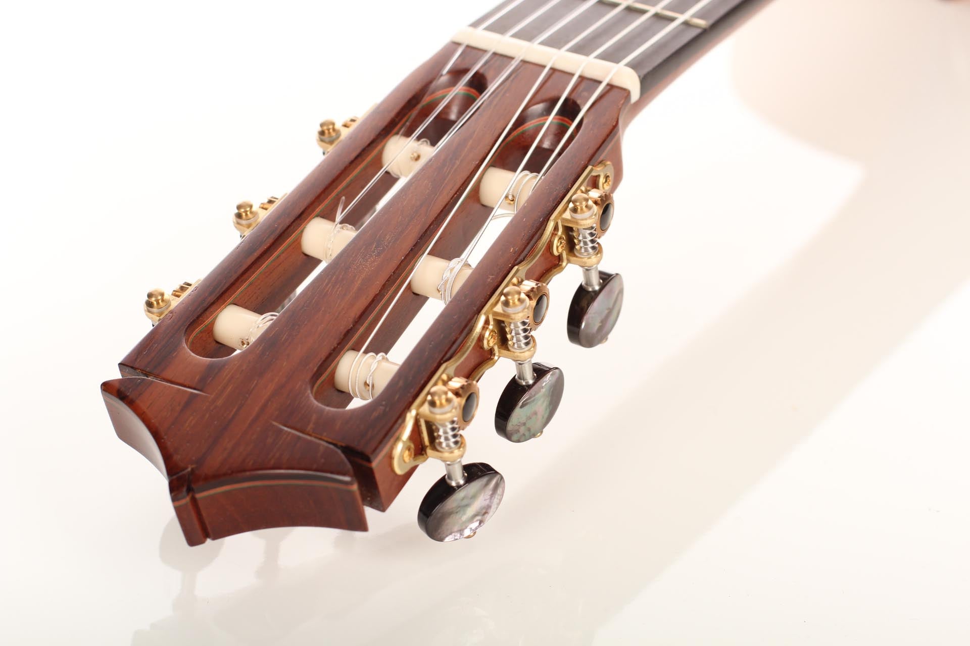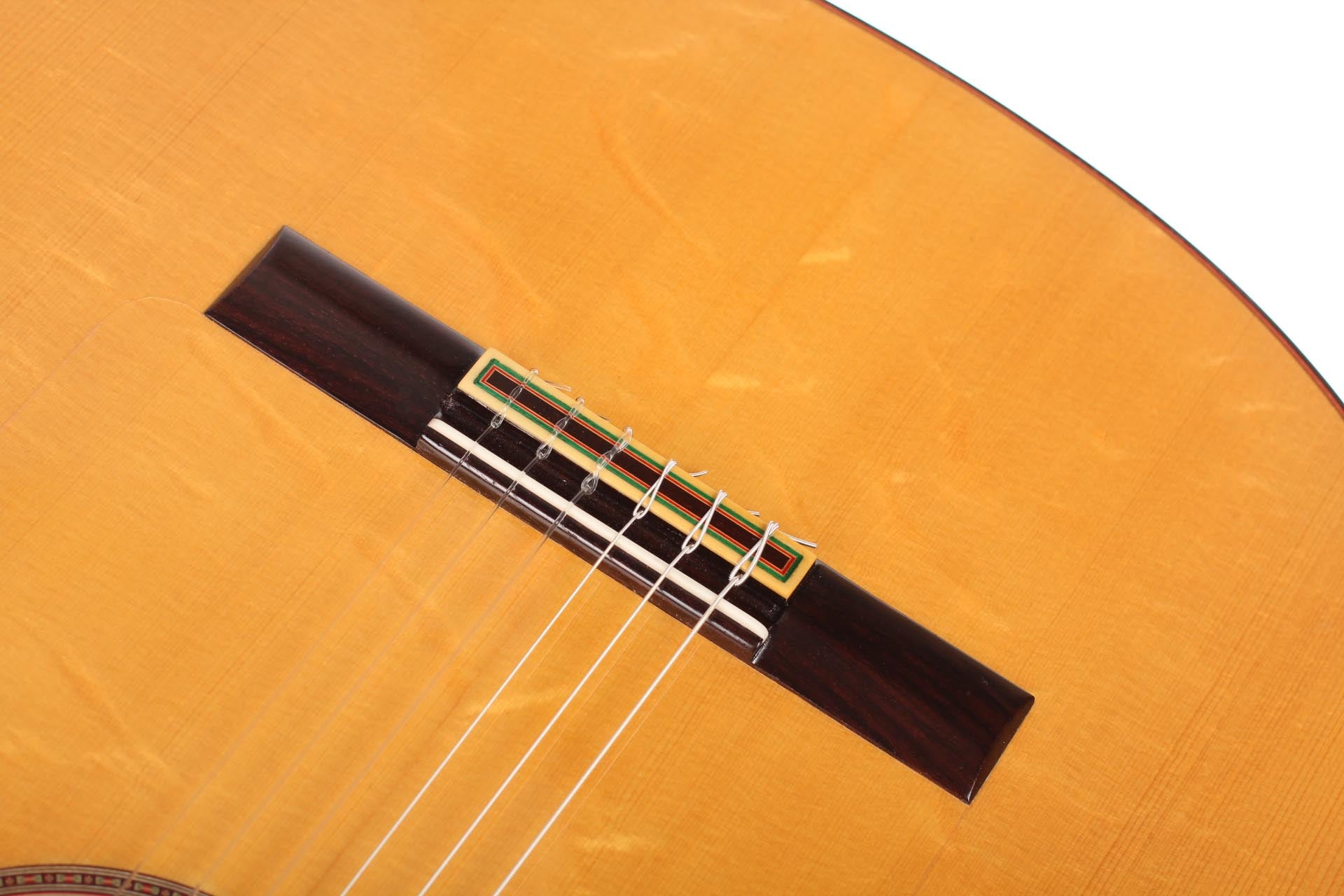 The top is made of German spruce with an outlined grain, straight and smooth, that endorse its exceptional quality. The back and sides are made of cypress, whose beauty and quality are simply perfect. The sound of this guitar is really surprising. A very special flamenco timbre with a strong personality and a very mature tone. The tuners are made by Alessi. A hard-shell case is included. This guitar is Cites-free (CF).