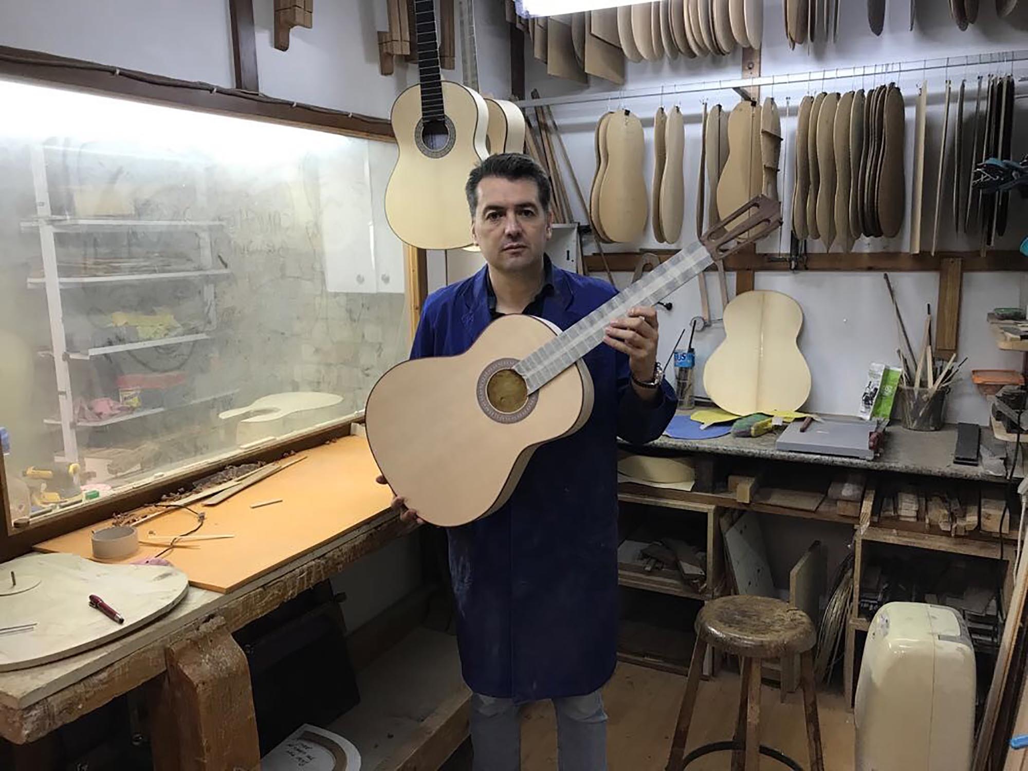 Pedro Muriel is one of the most talented Spanish guitar maker of the new generation. He has now established his workshop in Herrera, a small town in the province of Sevilla, where he builds mainly flamenco guitars. He was the disciple of Francisco Sánchez, and had the chance to study a lot of great guitars from the Spanish masters Santos Hernandez, Marcelo Barbero, Francisco Barba, etc. Those studies are one of his biggest sources of inspiration and Pedro is expressing his whole knowledge in building subtle and complex sounding instruments.