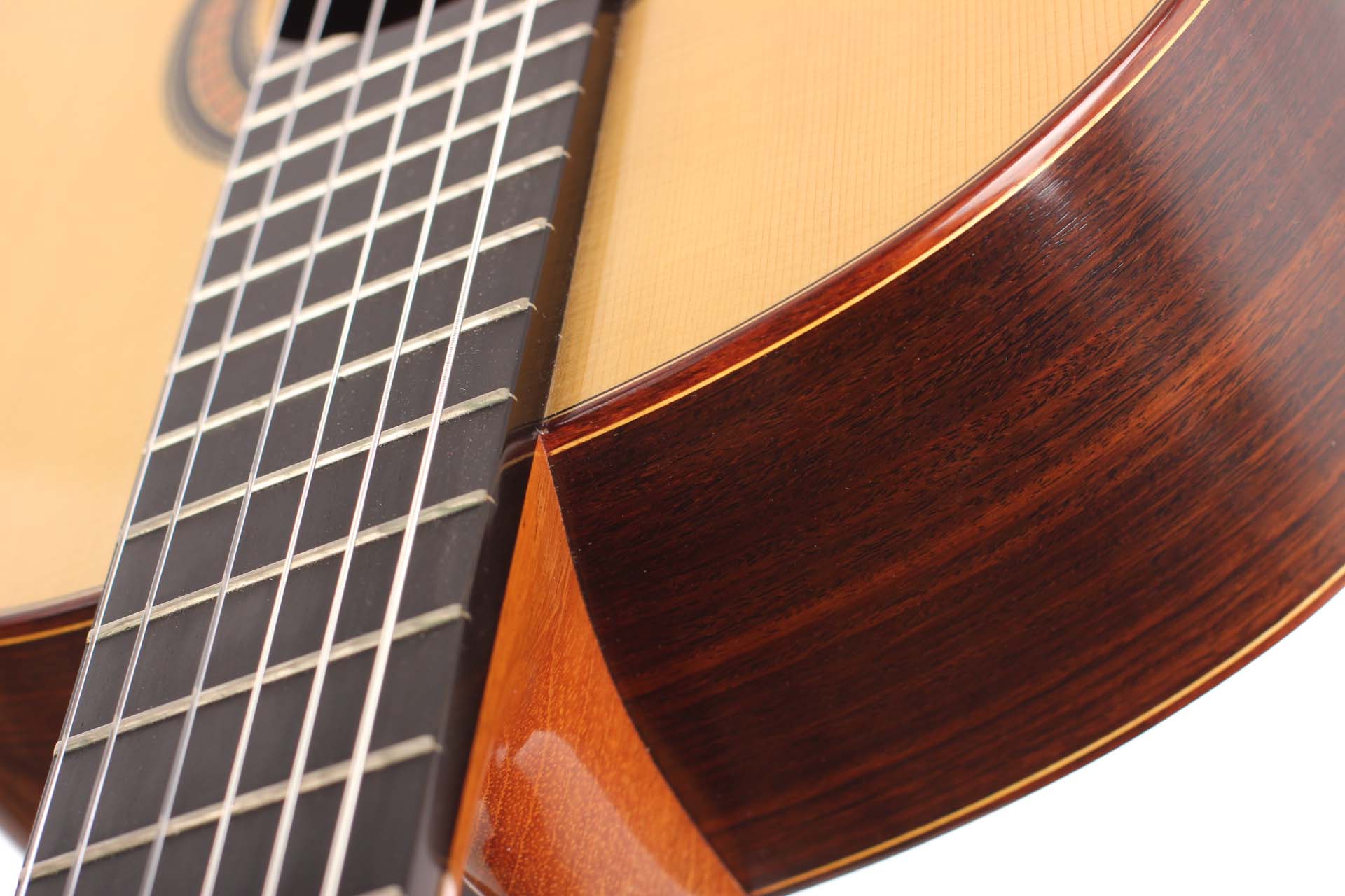 Since 1990 Per Hallgren has built classical guitars in Sweden - about 200 guitars in total. The top is made of European Spruce from the Italian Alps. Back and sides are made of beautiful Indian Rosewood. The top was built in a traditional way and has seven fan struts. Regarding the sound: The basses are very deep and the trebles have very nice colors. The guitar has a French-polish finish and the machine-heads are by Alessi.