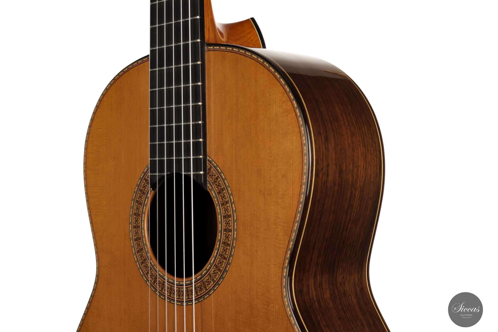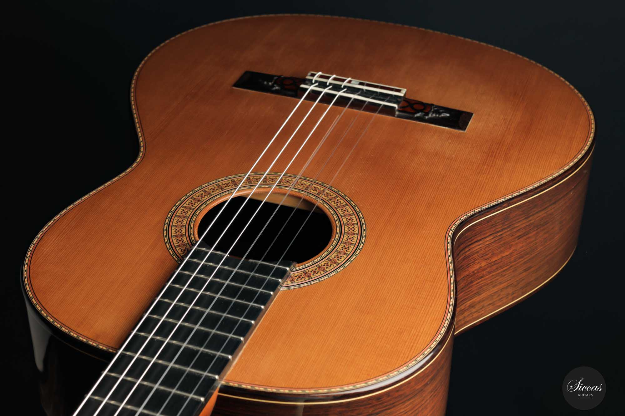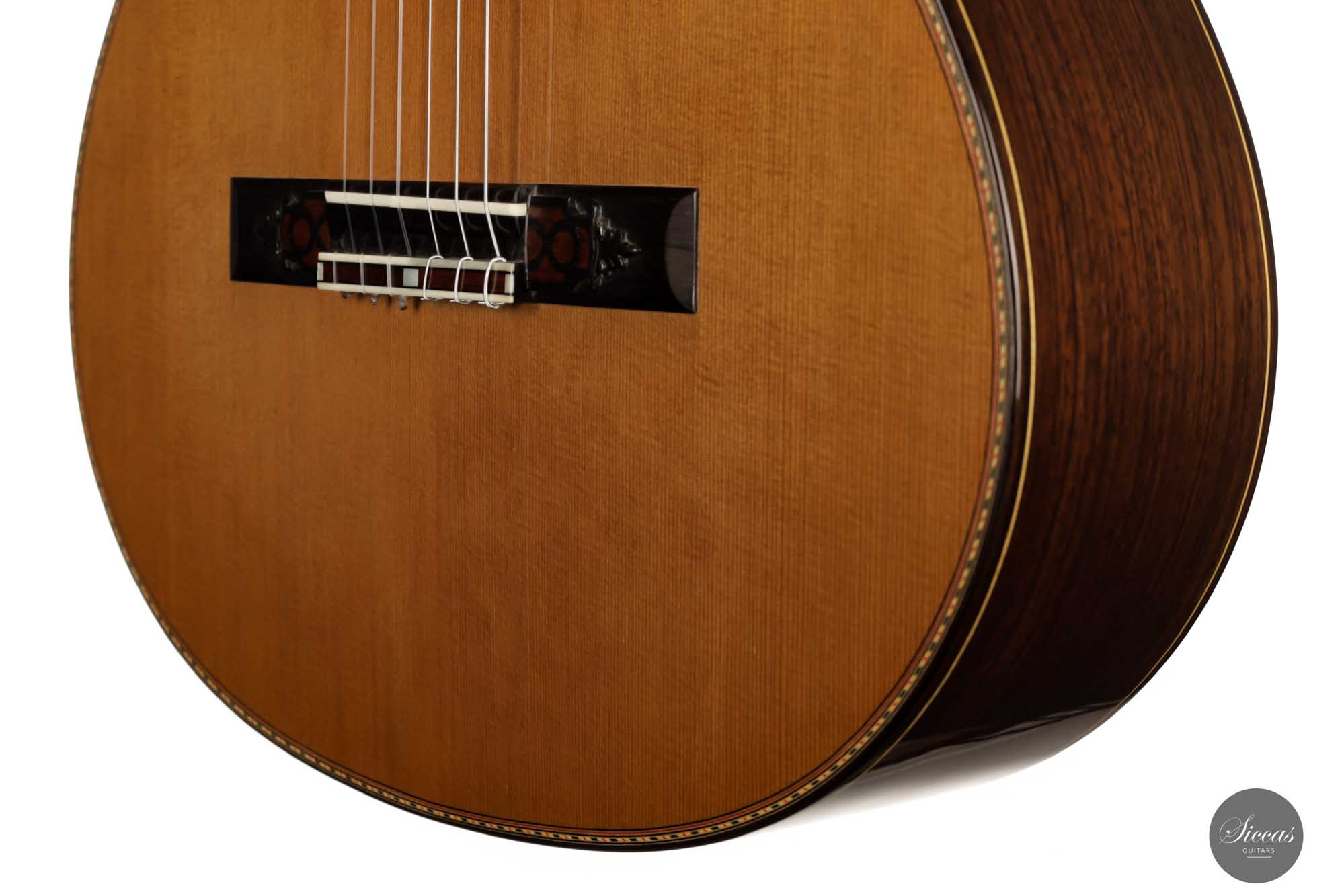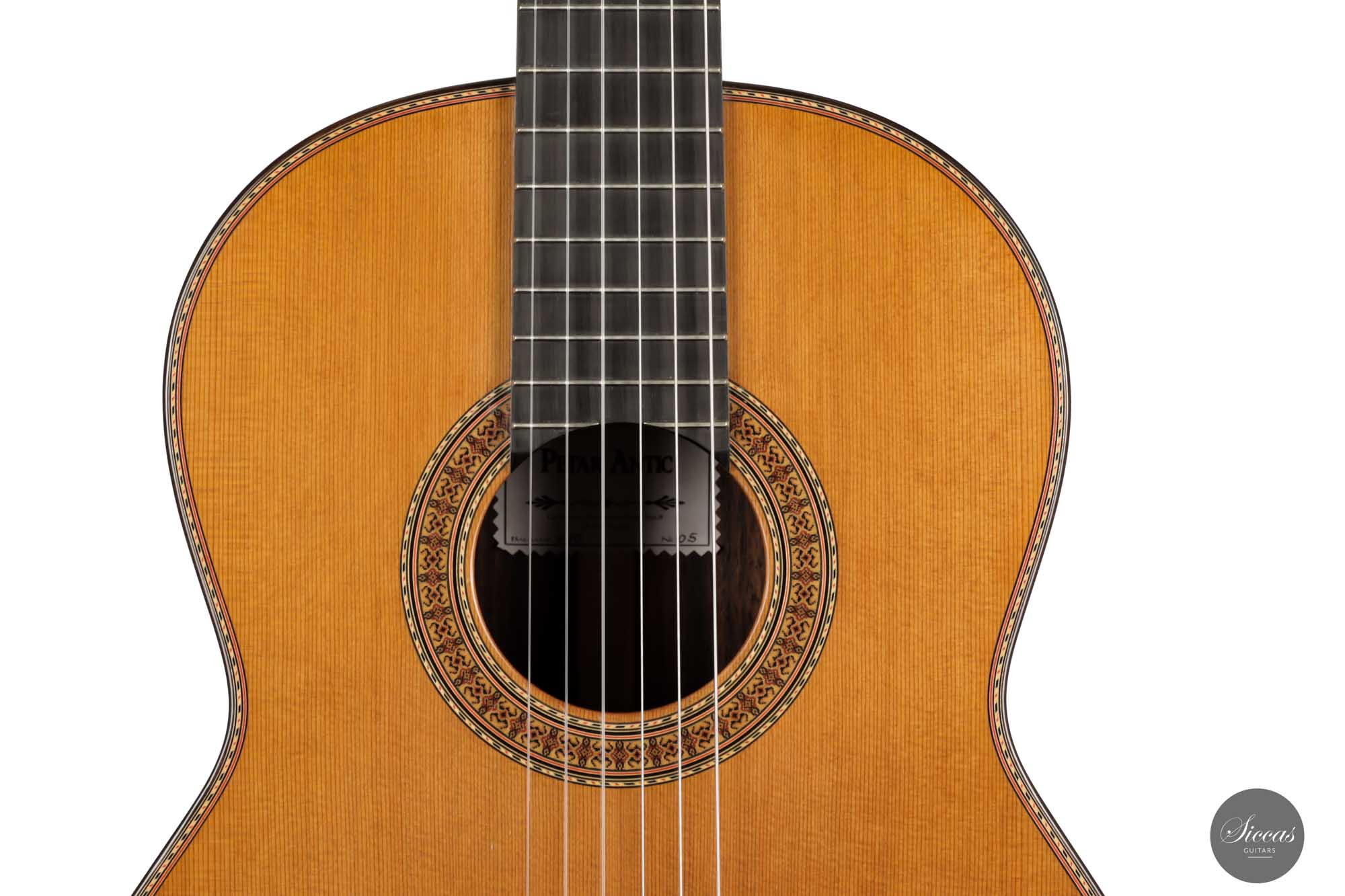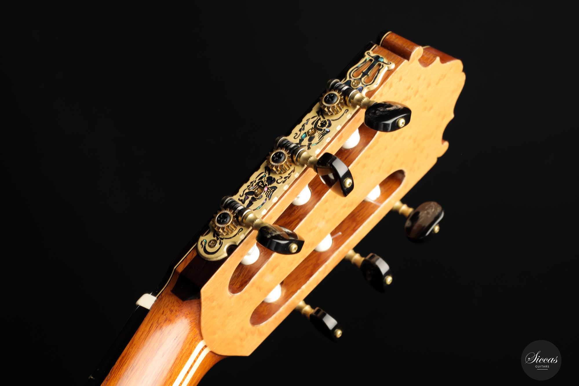 Petar Antic ist leider kürzlich verstorben und diese Gitarre Nr. 5 aus dem Jahr 2010 wurde uns von seinem Sohn persönlich überbracht. Da es sich um ein Anschauungsmodell handelt, das sich seit der Fertigstellung im Jahr 2010 in Petars Werkstatt befand, ist sie technisch neu und kann als New Old Stock (NOS) betrachtet werden. Die Zwillingsschwester dieser Gitarre ist die Nr.4 aus dem Jahr 2009, welche das exakt gleiche Modell darstellt, aber für Rechtshänder gebaut wurde. Es ist ein wunderschönes Instrument mit hervorragender Spielbarkeit und einer breiten Palette an Klangfarben. Diese sehr schöne Gitarre hat eine Zederndecke kombiniert mit Boden und Zargen aus indischem Palisander. Dank des großartigen Setups ist dieses Instrument leicht zu spielen. Darüber hinaus ist die Liebe zum Detail unverkennbar, was sich in wunderschön gearbeiteten und ausgeführten Verzierungen zeigt. Mit einer ausgezeichneten Lautstärke und Ansprache bietet diese Gitarre umfangreiche Möglichkeiten für Gitarristen jeden Niveaus.