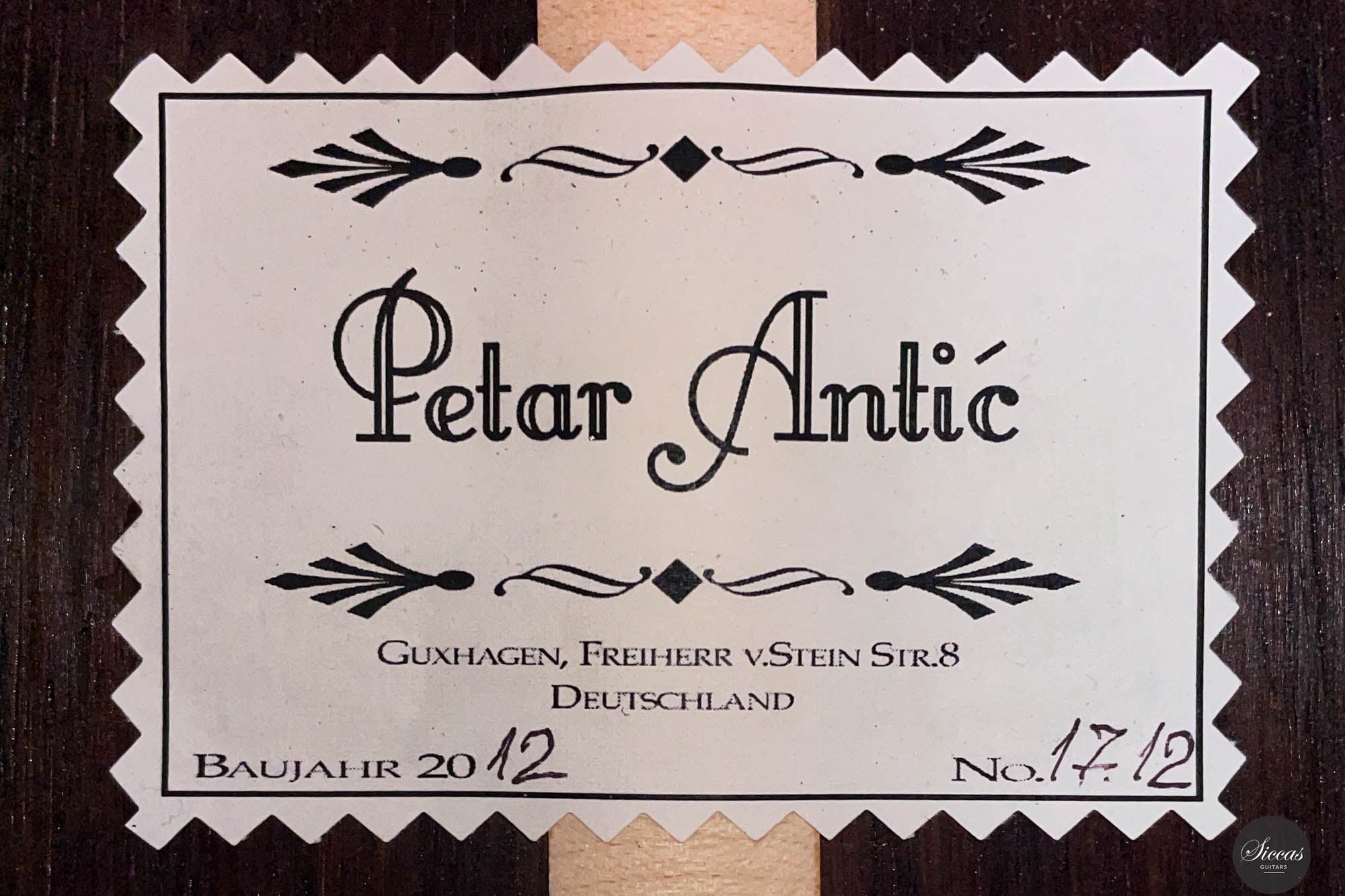 The No. 17.12 guitar by the late Petar Antic is not only a musical instrument but a cherished embodiment of his exceptional craftsmanship and legacy. Featuring a cedar top and indian rosewood back and sides, the guitar resonates with warm and rounded tonal qualities. The guitar's construction, from the beautifully crafted ornaments to its expertly executed setup, showcases Antic’s meticulous attention to detail, ensuring ease of play and comfort. This instrument excels in both volume and response, making it incredibly versatile across various musical styles and settings. The condition of the guitar is very good. There are some shallow playing marks on the top.