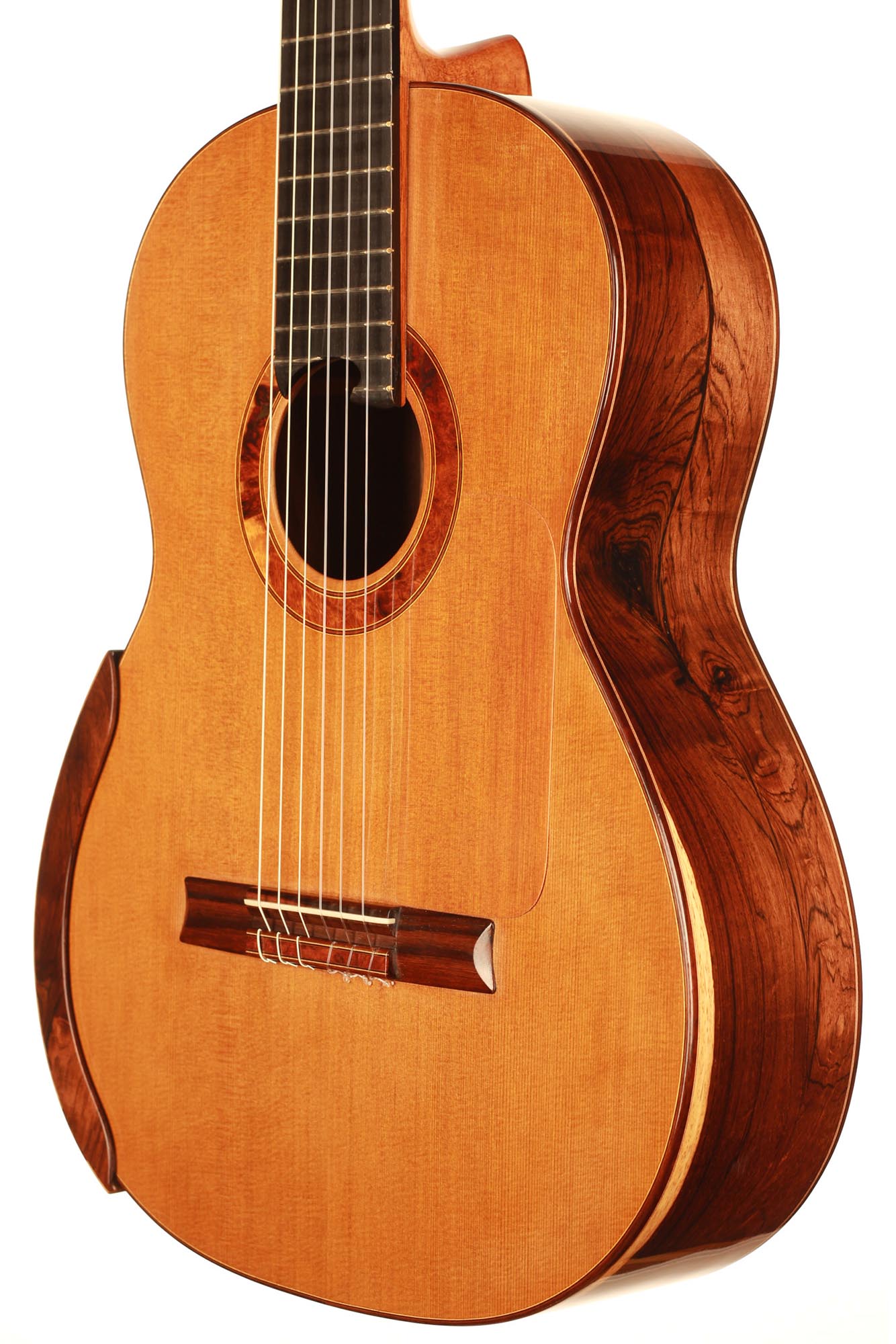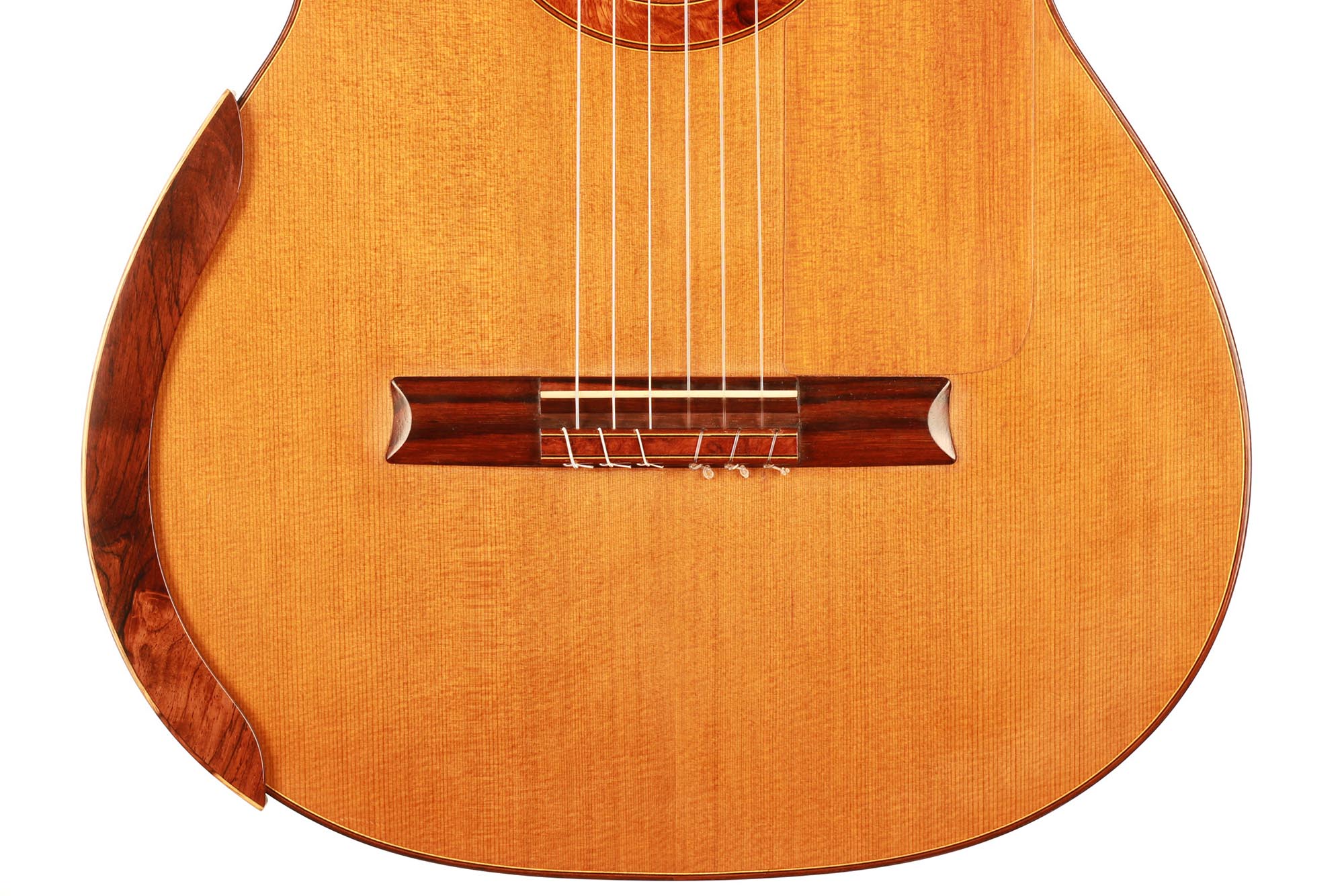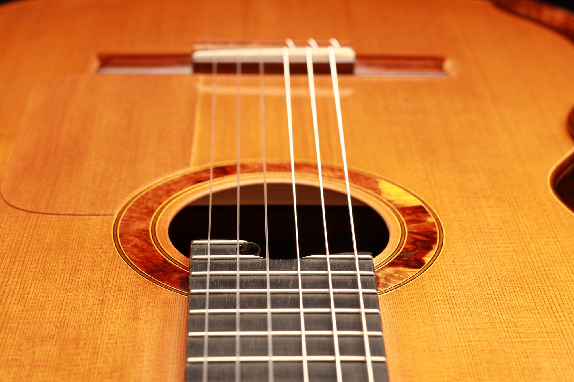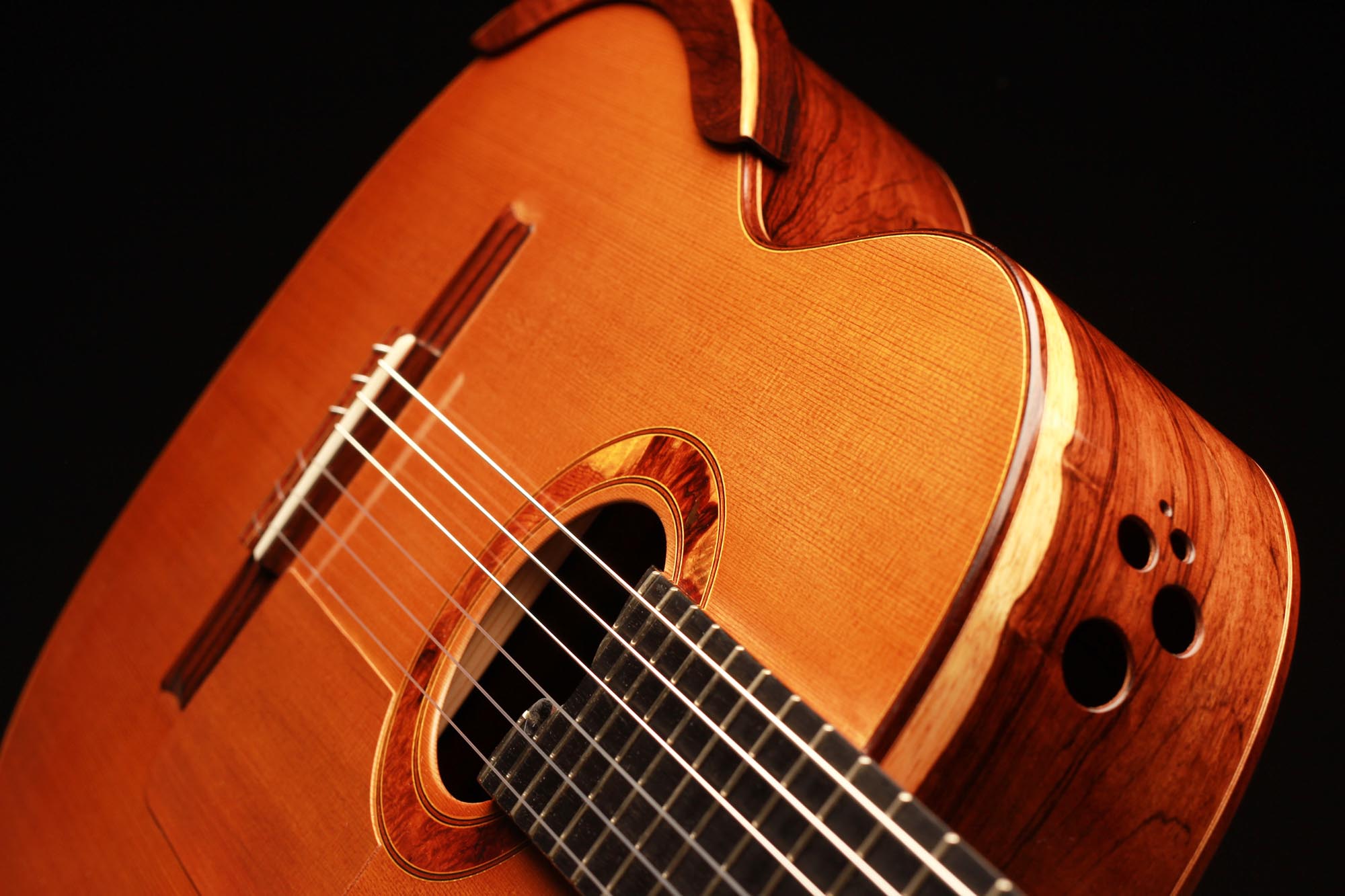 A thin piece of cedar was added to the top in order to protect this section. Nevertheless, this top is perfectly stable and the sound unchanged. This guitar is a great opportunity to get a well-built, powerful, and comfortable double-top at a very attractive price.