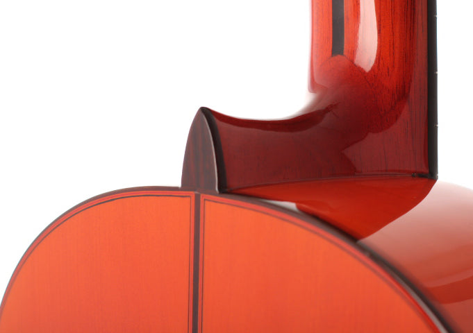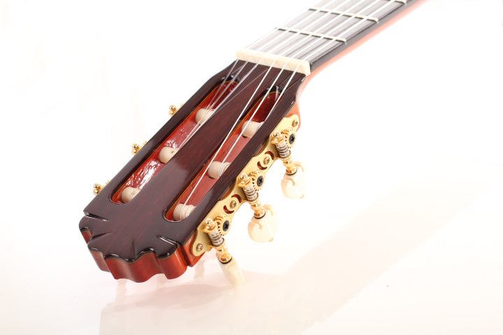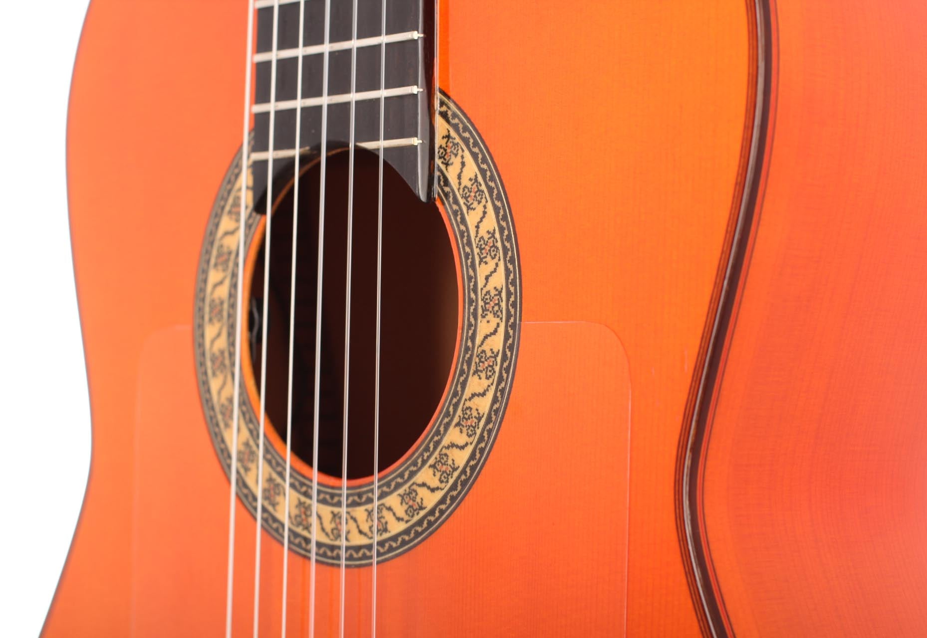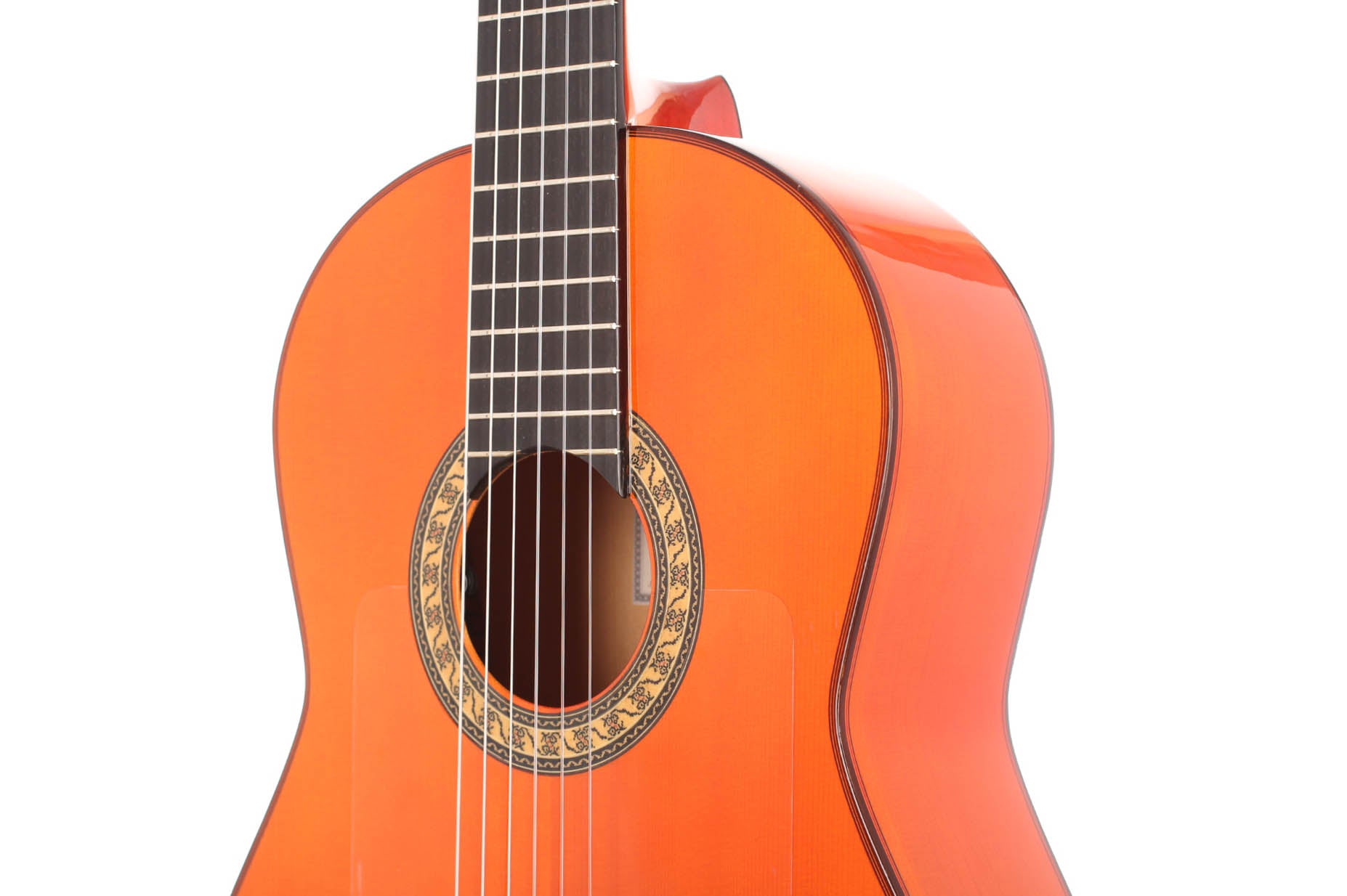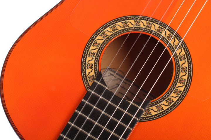Rafael Romero wurde 1963 geboren und begann im Alter von zwölf Jahren mit dem Gitarrenspiel. In den folgenden Jahren tourte er als Gitarrist durch Spanien und lernte Mario Melero Deudero kennen bei dem er eine Lehre als Gitarrenbauer begann. Heute ist Rafael nicht nur ein großartiger Gitarrenbauer sondern auch ein wundebarer Gitarrist was ihm viele Vorteile bei der Beurteilung seiner Instrumente bringt. Seine Instrumente werden von Gitarristen wie z.B. Manuel und Juan Parilla und Moraito Chico gespielt. Diese Gitarre wurde im Jahr 2006 gebaut. Nur die besten Hölzer wurden für diese Gitarre ausgewählt – Fichte für die Decke und Zypressenholz für Boden/Zargen. Der Klang ist sehr kräftig und crisp. Die Bespielbarkeit ist sehr leichtgängig. Gebrauchsspuren sind nur minimal vorhanden. Die Mechaniken sind von Gotoh. Ein Pick-up System wurde eingebaut. Inklusive Hartschalenkoffer.
