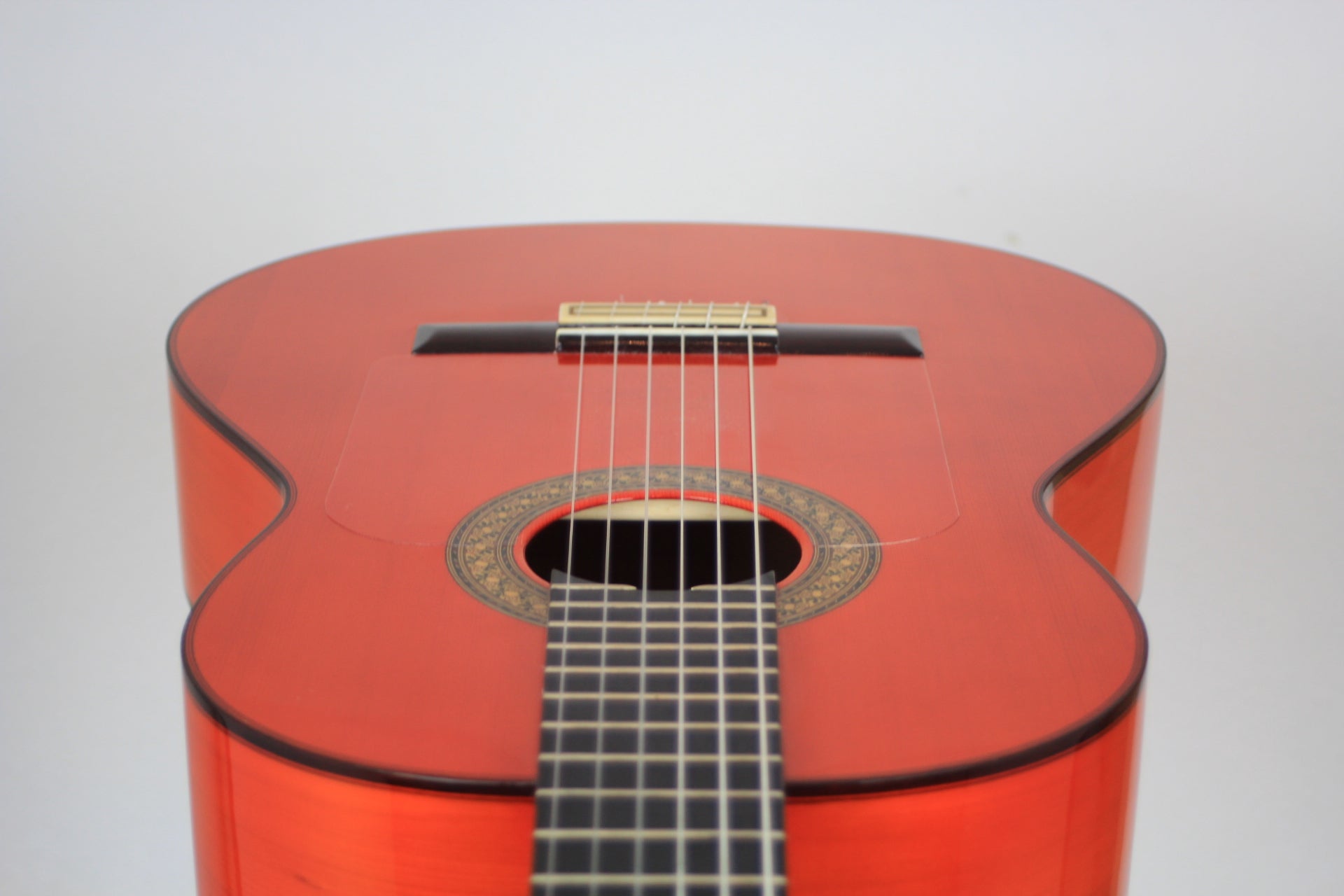 Only the best woods were used for this guitar: Fine spruce for the top and fine cypress for back and sides. The sound is powerful and crispy, easy to play with a lot of projection. The condition is very good, no cracks. There is only a little sign on the head.