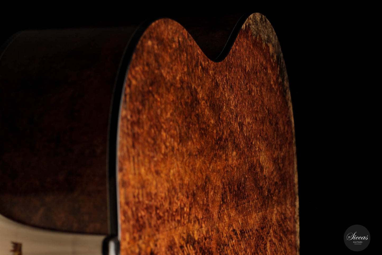 Die Rafal-Turkowiak-Gitarre 2023 ist ein Kunstwerk, bekannt als die "Königin der Gitarren - Black Diamond", mit der Nummer 519. Diese exklusive Gitarre besticht durch einen gewölbten Boden aus exquisitem Amboyna Burl mit einem hellen Splintholz in der Mitte, das die Aufmerksamkeit auf sich zieht. Die Fichtendecke verfügt über eine leichte, mit Kohlefaser verstärkte Gitterbeleistung, die sie unglaublich reaktionsschnell und leicht macht. Das Besondere an diesem Instrument ist die berühmte "Acoustic tube" im Inneren des Halses, die die Gesamtresonanz der Gitarre verbessert. Der Klang der Gitarre ist mühelos, und der Spieler muss nur minimale Anstrengungen mit der rechten Hand unternehmen, um einen raumfüllenden Ton zu erzeugen, der den Spieler in seinen Klang einhüllt. Die Höhen sind knackig, und die Trennung der Stimmen ist tadellos. Die Bässe und Höhen sind gleichmäßig ausgeglichen, was das Instrument zu einem inspirierenden Instrument macht, das dem Spieler in jeder Hinsicht Freude und Zufriedenheit bringt.