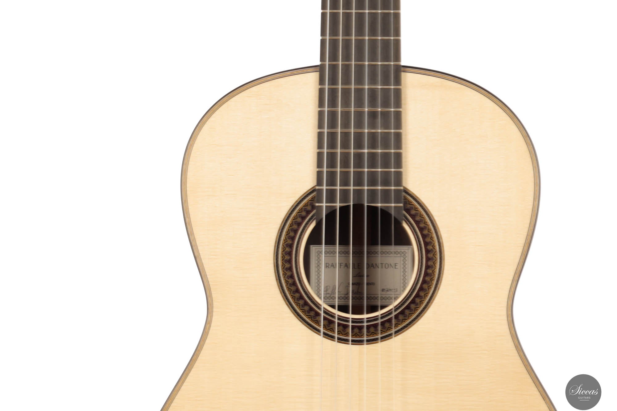 Raphaelle Dantone, geboren 1993 in Bozen, lebt im malerischen Fassatal in den Dolomiten. Umgeben von ausgedehnten Wäldern entwickelte er früh eine Leidenschaft für die Holzarbeit. Nach mehreren Jahren als Schreiner entfachte ein prägender Workshop mit dem renommierten Gitarrenbauer Mirko Borghino sein Interesse am Bau von klassischen Gitarren. Diese entscheidende Erfahrung führte dazu, dass er sich an der Civica Scuola di Liuteria di Milano einschrieb. Nach dem Studium verfeinerte Raphaelle seine Fähigkeiten unter der Anleitung des meisterhaften und bekannten Geigenbauers Daniele Marrabello, wobei er sich auf Konstruktionstechniken, Klangqualität und akribische Details konzentrierte. Heute betreibt er seine eigene Werkstatt in den Dolomiten, wo er weiterhin exquisite Instrumente schafft.