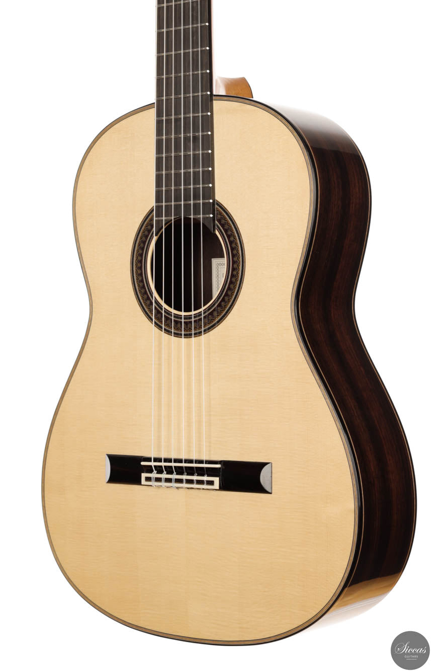 Die klassische Gitarre mit ihren weichen Nylonsaiten und ihrem charakteristischen Timbre ist zum Symbol der Kammermusik, der spanischen Tradition und des Konzertrepertoires geworden. Ihre moderne Form prägte Antonio de Torres im 19. Jahrhundert, indem er den Standard für Korpus, Fächerbeleistung und die 65-Zentimeter-Mensur setzte, die bis heute verwendet werden. Instrumente dieser Kategorie eröffnen eine reiche Palette von den feinen romantischen Miniaturen Tárregas bis zu den majestätischen Konzerten Rodrigos. Hier finden Sie Gitarren, die historische Kontinuität bewahren und zugleich zu neuen Interpretationen anregen.
