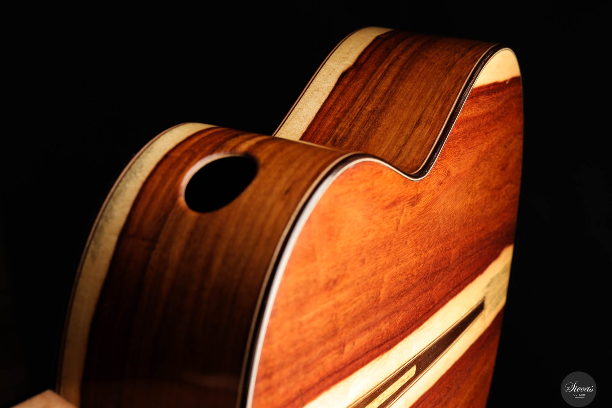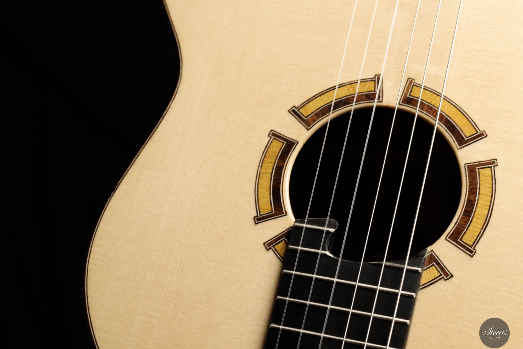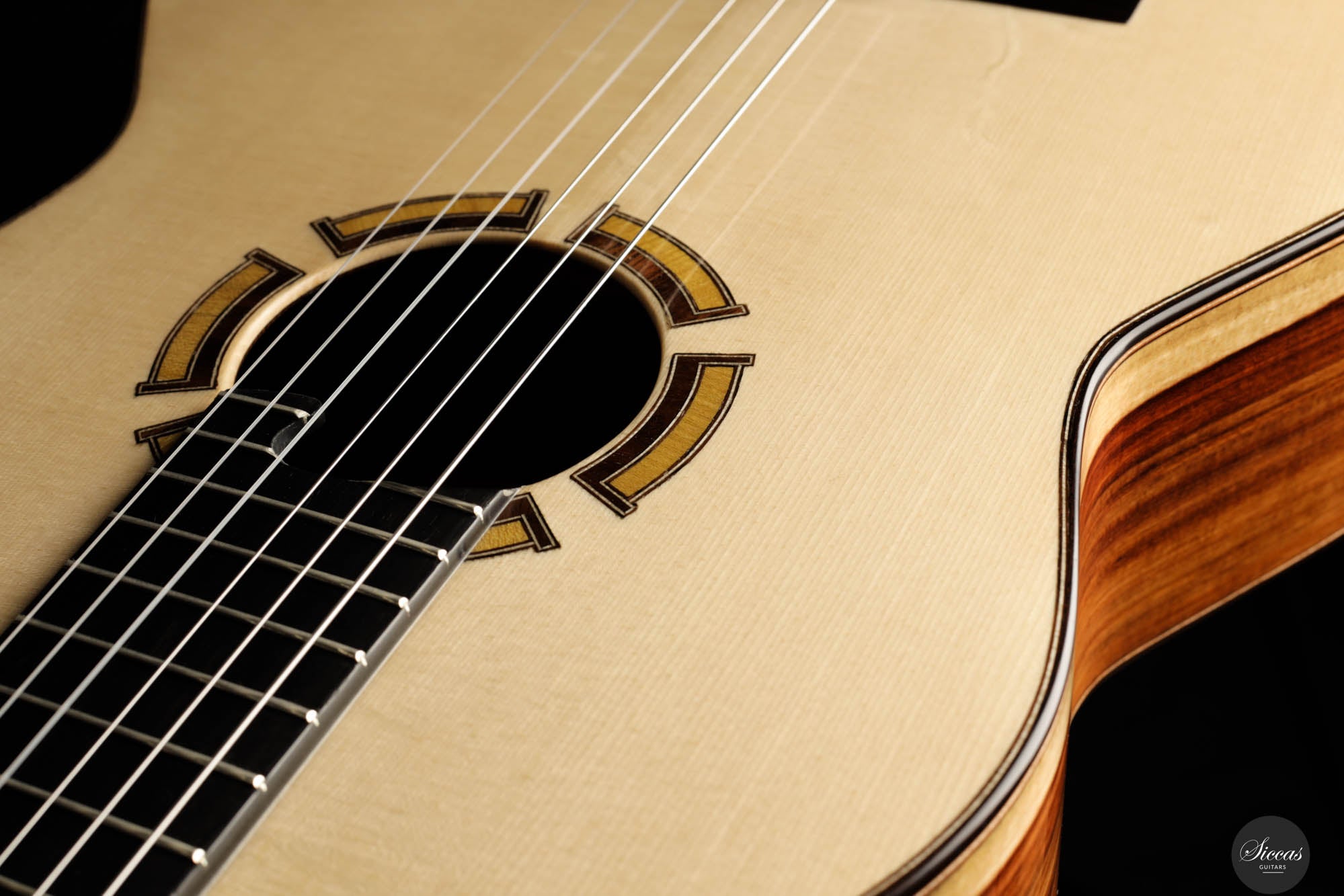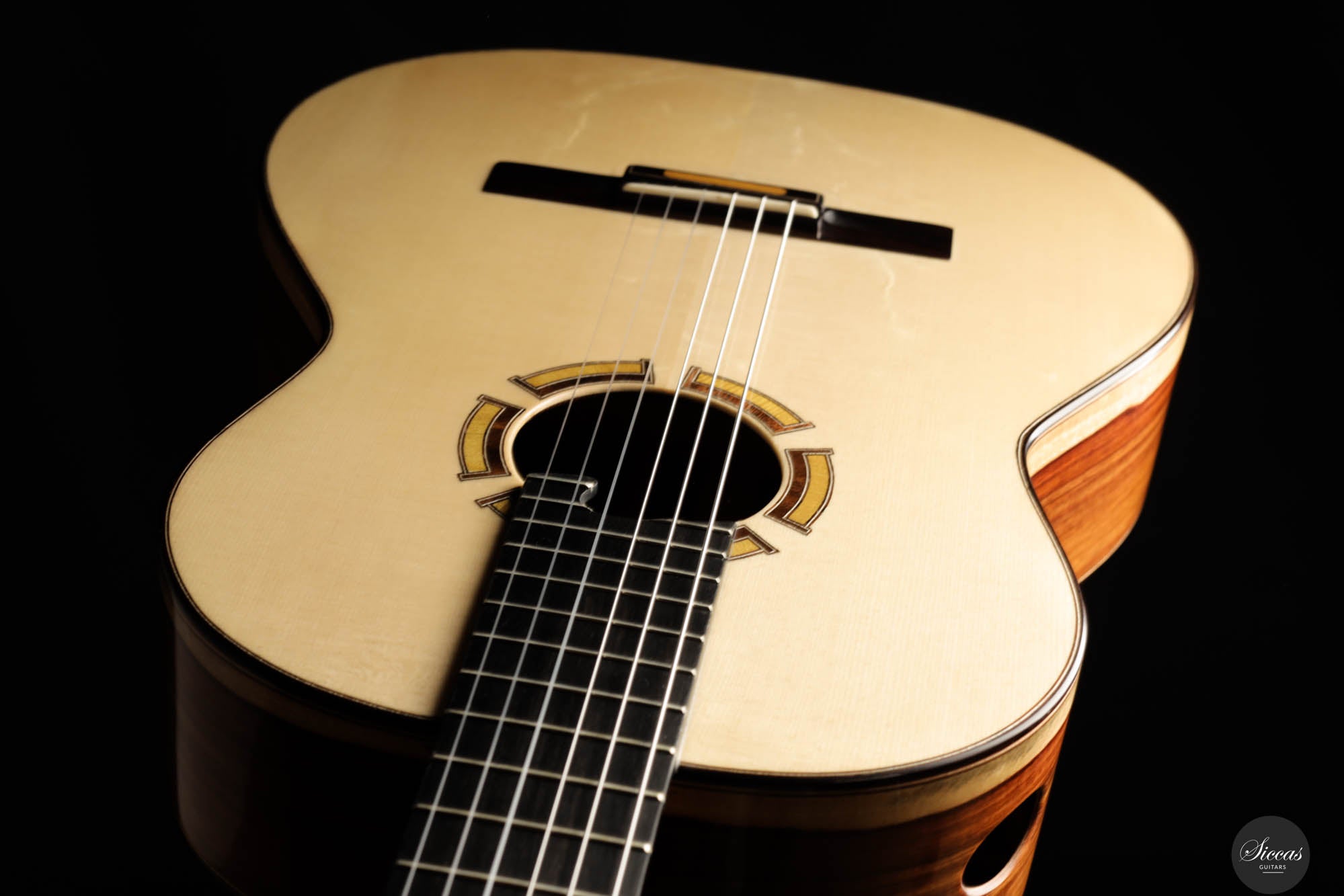 Die Gitarre Nr. 461 ist eine bemerkenswerte Konzertgitarre, die traditionelle Handwerkskunst mit modernen akustischen Weiterentwicklungen vereint. Mit einer wunderschönen Fichtendecke und Granadillo für Rücken und Zargen ist sie sowohl ein Genuss zu spielen als auch ein optisch beeindruckendes Instrument. Durch ein modernes Schallloch an der Seite wird die Lautstärke und Projektion verbessert, was sie ideal für Konzertauftritte in unterschiedlichsten Settings macht. Ihre Konstruktion spiegelt ein klares Engagement für Qualität wider und bietet Musikern eine vielseitige Option, die die Tiefe des traditionellen Tons mit den Vorteilen zeitgemäßer Innovationen kombiniert.