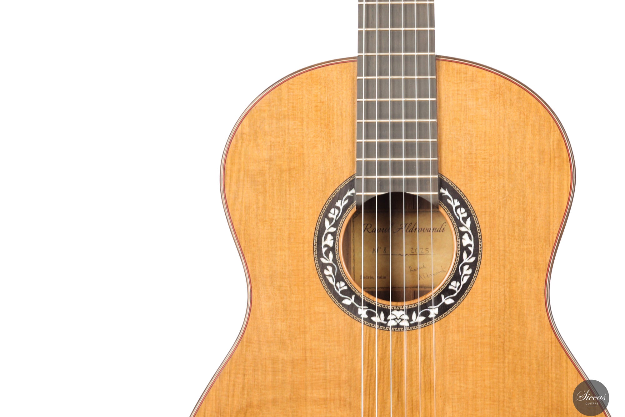 Raoul Aldrovandi begann seinen beruflichen Weg zunächst mit einem Ingenieurstudium, stellte jedoch bald fest, dass seine eigentliche Leidenschaft woanders lag. Er brach das Studium ab, um sich dem Holzhandwerk zu widmen, und erlernte als Tischler Techniken wie Schnitzen, Bildhauen und Drechseln. Ein klassisches Gitarrenkonzert veränderte seine Ausrichtung grundlegend: Inspiriert vom Klang des Instruments begann er selbst Gitarre zu spielen und verband schließlich sein handwerkliches Können mit dem Gitarrenbau. Nach dem Abschluss eines Kurses bei Pablo Requena, der sehr gute Ergebnisse brachte, nutzte er seine ingenieurwissenschaftlichen Kenntnisse, um einen methodischen Ansatz im Gitarrenbau zu entwickeln. Geprägt von den Schriften von Mario Garrone, Giuseppe Cuzzucoli und Trevor Gore begann Aldrovandi, eigene Gitarren zu entwerfen, wobei er Materialeigenschaften genau erfasste und akustische Daten dokumentierte. Er erhielt positives Feedback von Gitarristen und machte den Gitarrenbau zu seinem Hauptberuf, um Instrumente zu schaffen, die traditionelle Handwerkskunst mit präziser technischer Analyse verbinden.