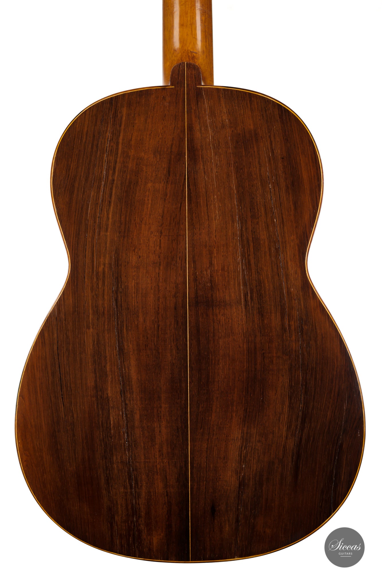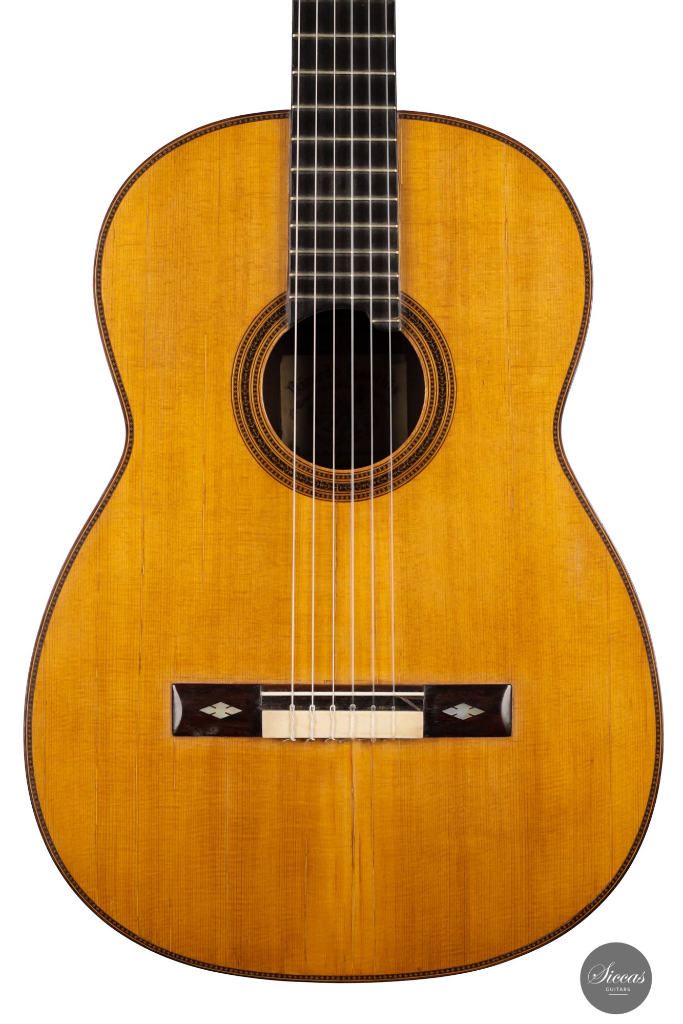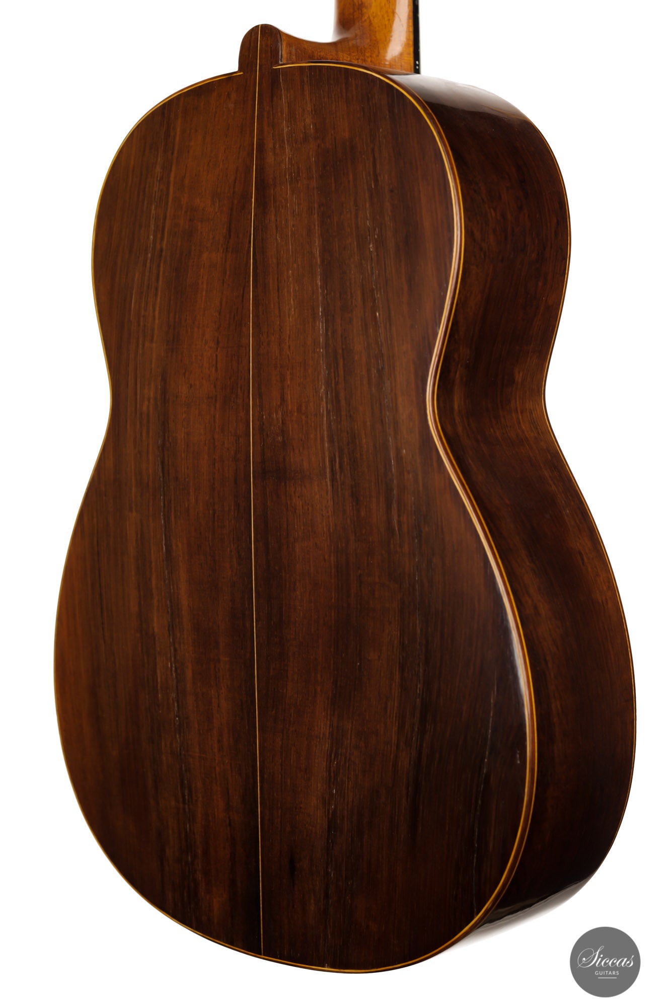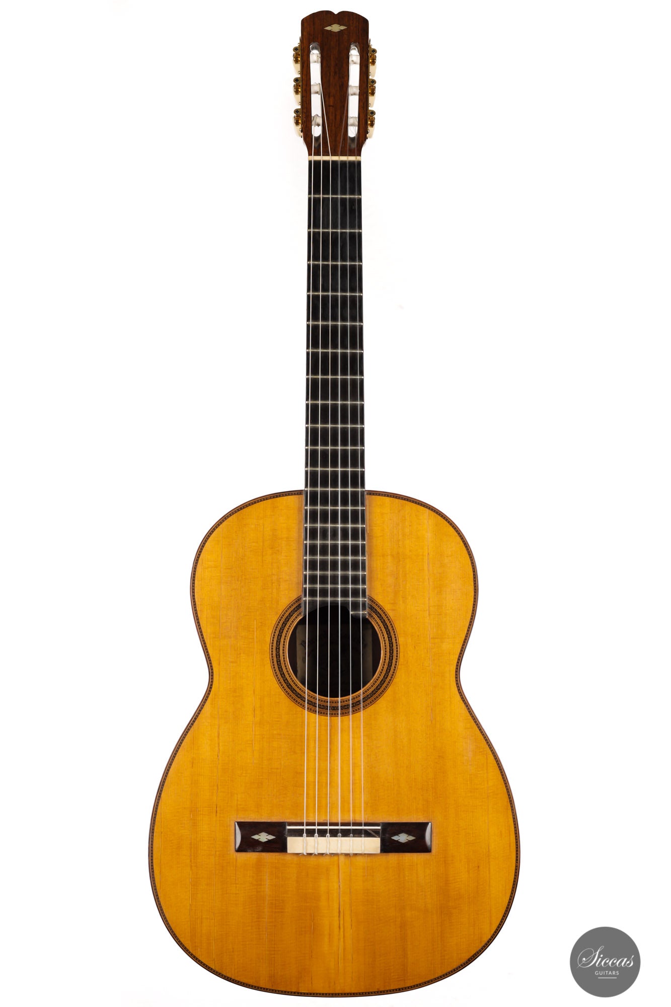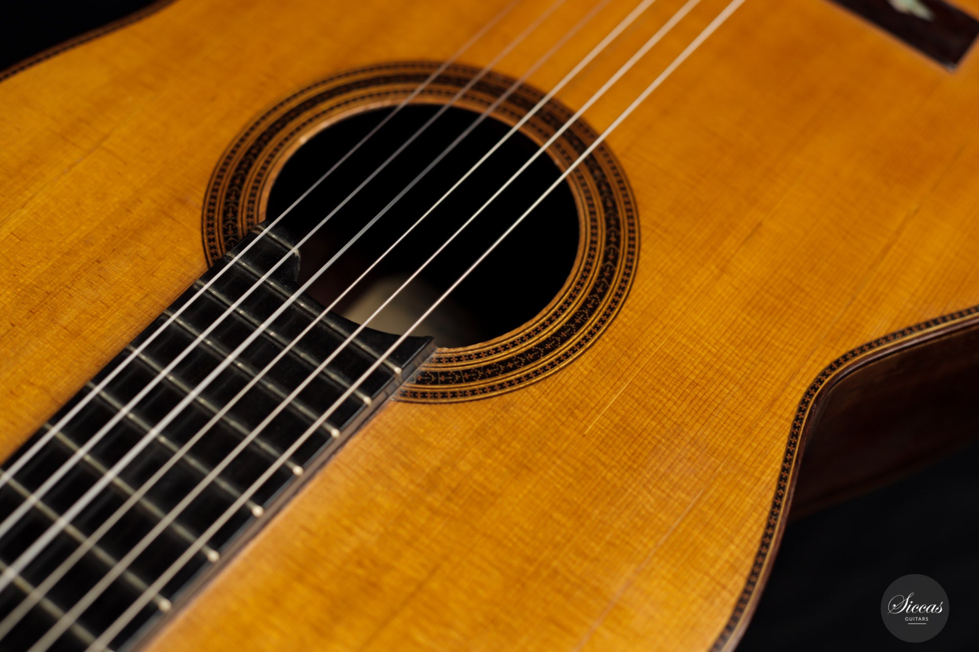 Diese Gitarre wurde von Ricardo Sanchis Nacher (1881-1960) gebaut und ist historisch gesehen hochinteressant, da sie gleichartig ist mit der letzten Gitarre, die Agustin Barrios von Ricardo Sanchis Nacher erwarb. Es ist ein wunderbares Instrument, das durch seine Ausgeglichenheit, einem schönen spanischen Ton, gute Bässe und Volumen charakterisiert ist. Die Gitarre wurde zwischen 1930 und 1940 gebaut. Sie hat eine Fichtendecke und der Boden sowie die Zargen sind aus feinstem Palisander. Der Kopf und der Steg sind mit Perlmutteinlagen verziert und eine reichlich verzierte Rosette ziert das Schallloch. Die Gitarre wurde sehr gut restauriert, sodass sein Ursprünglichkeit erhalten werden konnte. Die Mechaniken sind von Rubner.