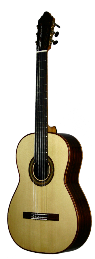Richard Newman wurde 1964 geboren und studierte in den 1990er Jahren bei Richard Wright, der heute Leiter der Yehudi Menuhin School of Music ist. Er lernte während seiner Studien viel über Klangbildung und begann eine Gitarre mit "old world sound" zu suchen. Leider war es ihm nicht möglich solch ein Instrument zu finden und entschied sich daher selbst eine Gitarre zu bauen. Da er viele Jahre als Baumchirurg arbeitete hatte er ein besonders großes Wissen über Bäume und Holz. Nach dem Bau der ersten Gitarren wurde er von vielen Gitarrenspielern in seinem Tun bestärkt sodass er seine Arbeit als Baumchirurg beendete und sich im Jahr 2001 in der Guildhall University für Gitarrenbau einschrieb. Nach Beendigung dieses Studiums eröffnete er seine Werkstatt in Ascot, Berkshire, wo er etwa zwölf Gitarren im Jahr baut. Er baut seine Gitarren mit sehr wenig Maschinen und legt sehr viel Wert auf die Verwendung traditioneller Werkzeuge, da es für ihn wichtig ist stehts in Kontakt mit den Hölzern zu sein. In seine Arbeit fließt auch das Studium vieler Gitarren berühmter Gitarrenbauer wie Santos Hernandez, Hernandez y Aguado und Daniel Friederich u.v.m., was ihm sehr geholfen hat Gitarren mit niedriger Körperresonanz und feiner Projektion zu bauen. Diese Gitarre trägt den Namen "Lemoni" und hat eine Decke aus europäischer Fichte, der Boden und die Zargen sind aus indischem Palisander. Weitere Details: - Hals aus spanischer Zeder - Griffbrett aus Ebenholz - Binding und Randeinlagen aus Platane - Sloane Mechaniken - Inklusive ist eine Hiscox Pro II hard case