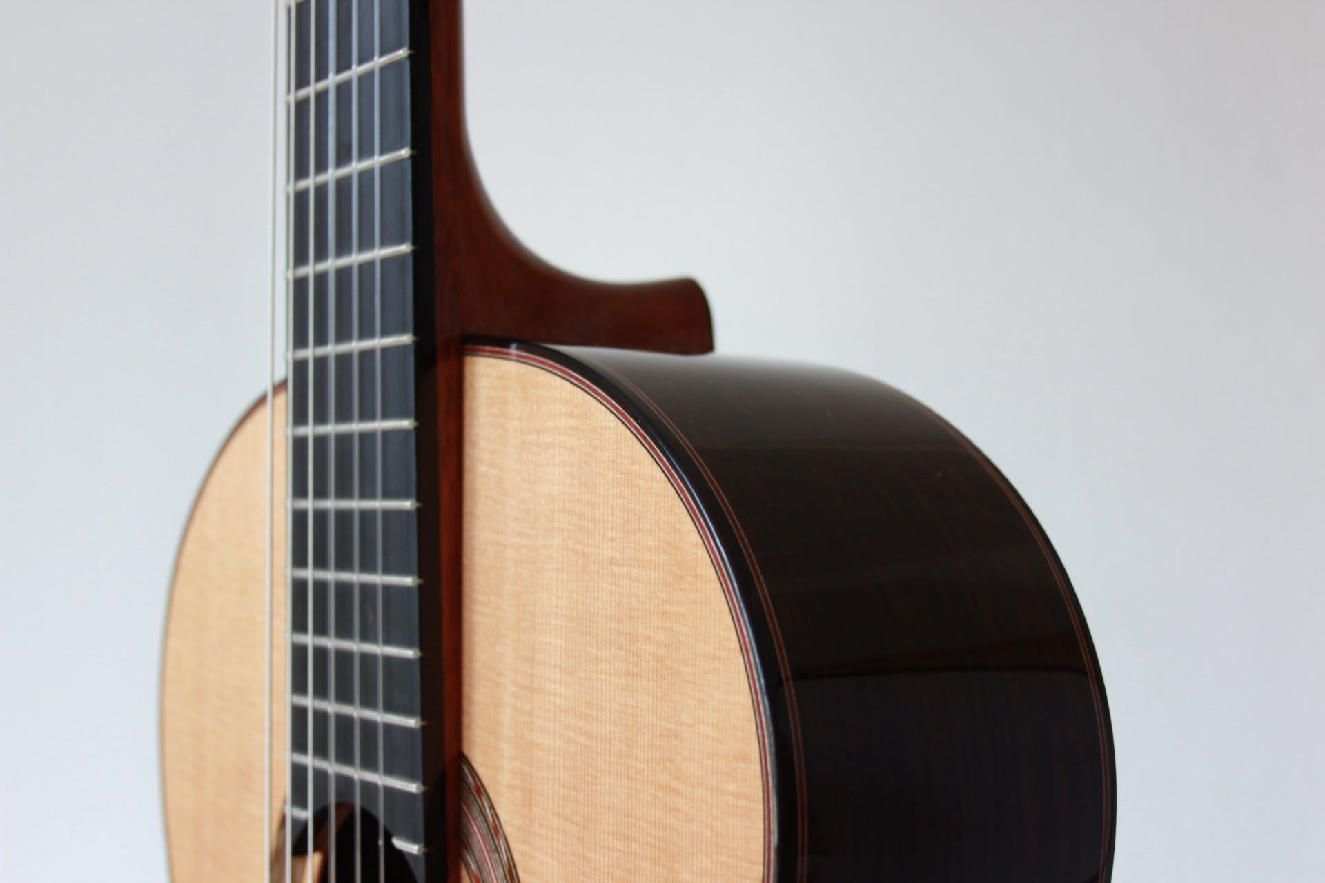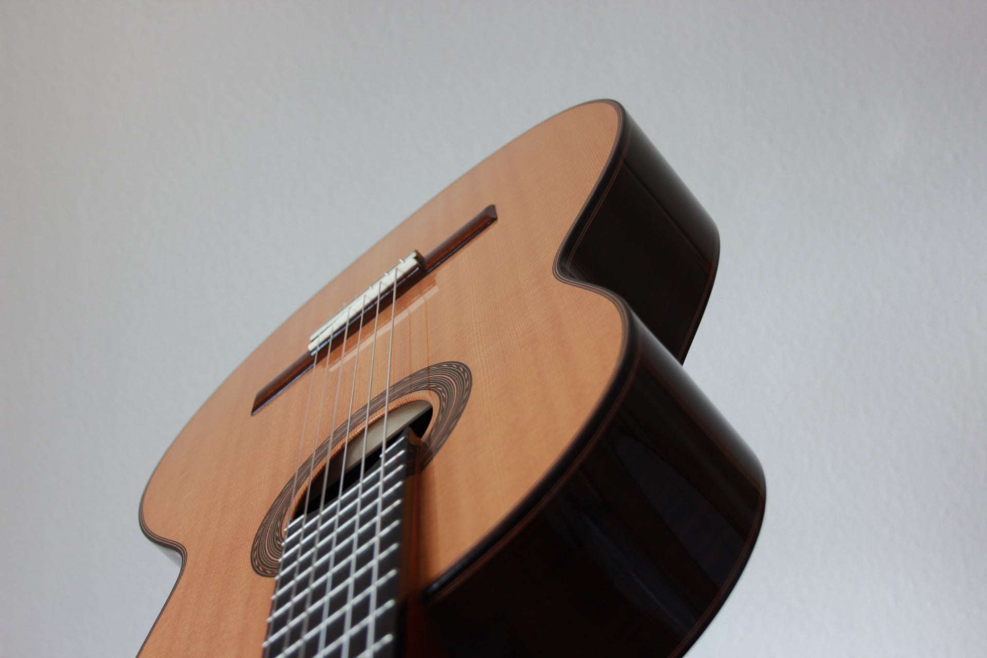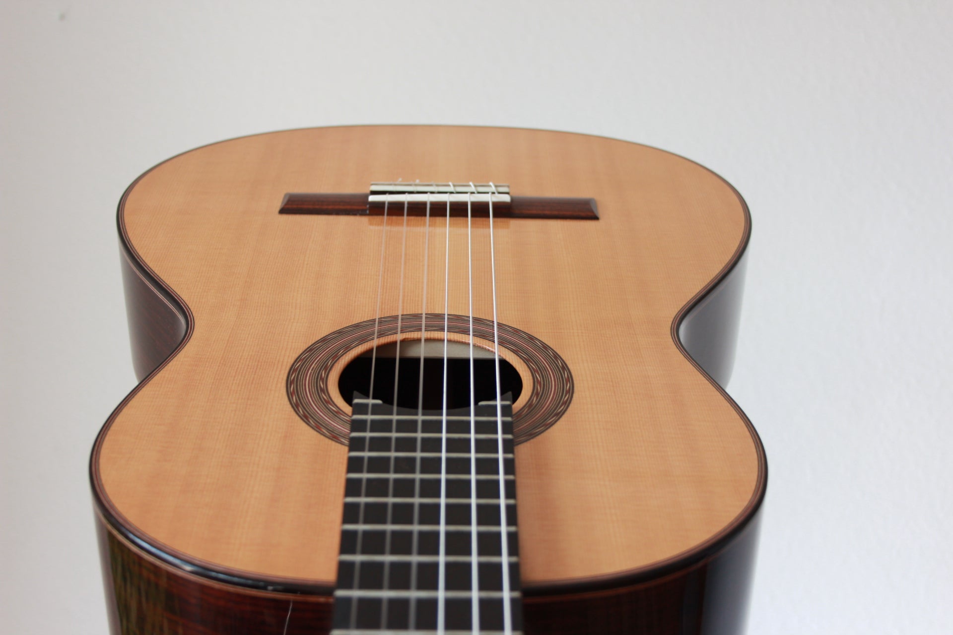 Die klassische Gitarre mit ihren weichen Nylonsaiten und ihrem charakteristischen Timbre ist zum Symbol der Kammermusik, der spanischen Tradition und des Konzertrepertoires geworden. Ihre moderne Form prägte Antonio de Torres im 19. Jahrhundert, indem er den Standard für Korpus, Fächerbeleistung und die 65-Zentimeter-Mensur setzte, die bis heute verwendet werden. Instrumente dieser Kategorie eröffnen eine reiche Palette von den feinen romantischen Miniaturen Tárregas bis zu den majestätischen Konzerten Rodrigos. Hier finden Sie Gitarren, die historische Kontinuität bewahren und zugleich zu neuen Interpretationen anregen.Alle Produkte der Kollektion ansehen -