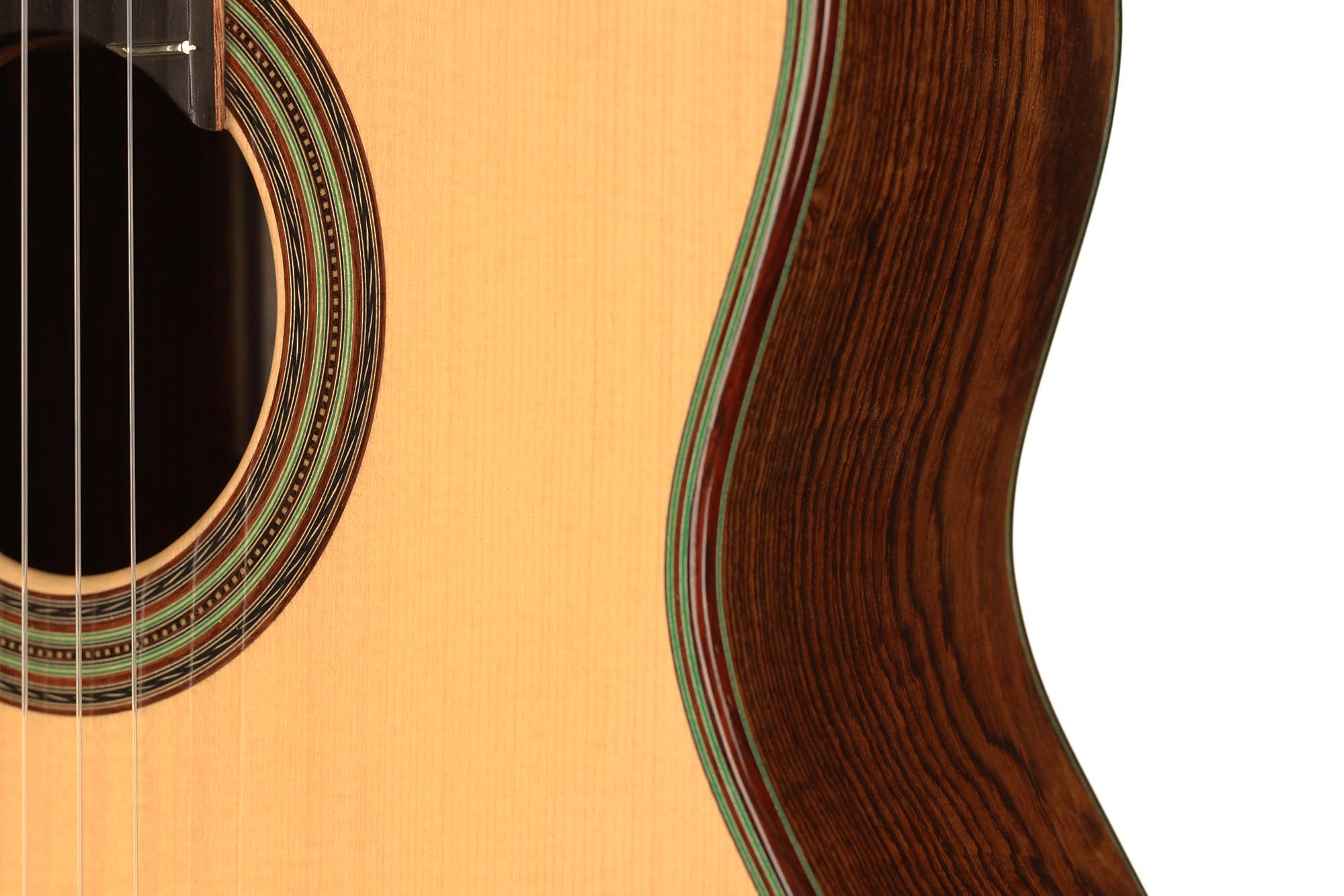 Dieses Instrument hat alle Eigenschaften einer hervorragenden Gitarre, die in der deutschen Tradition gebaut wurde. Es hat einen sehr klaren Klang mit einer feinen Palette an Obertönen und einer subtilen Trennung der Stimmen. Die polyphone Klarheit dieser Gitarre ist ein großer Vorteil für den Einsatz in Konzertsälen, da jedes musikalische Detail auch aus großer wahrnehmbar bleibt. Diese Gitarre ist CITES frei.