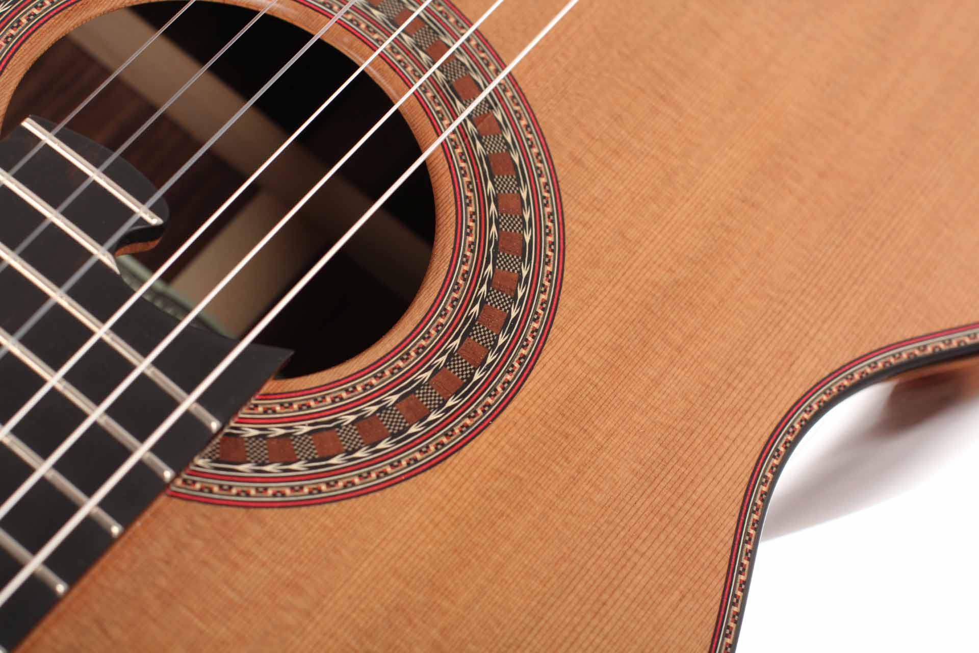 Die klassische Gitarre mit ihren weichen Nylonsaiten und ihrem charakteristischen Timbre ist zum Symbol der Kammermusik, der spanischen Tradition und des Konzertrepertoires geworden. Ihre moderne Form prägte Antonio de Torres im 19. Jahrhundert, indem er den Standard für Korpus, Fächerbeleistung und die 65-Zentimeter-Mensur setzte, die bis heute verwendet werden. Instrumente dieser Kategorie eröffnen eine reiche Palette von den feinen romantischen Miniaturen Tárregas bis zu den majestätischen Konzerten Rodrigos. Hier finden Sie Gitarren, die historische Kontinuität bewahren und zugleich zu neuen Interpretationen anregen.Alle Produkte der Kollektion ansehen -