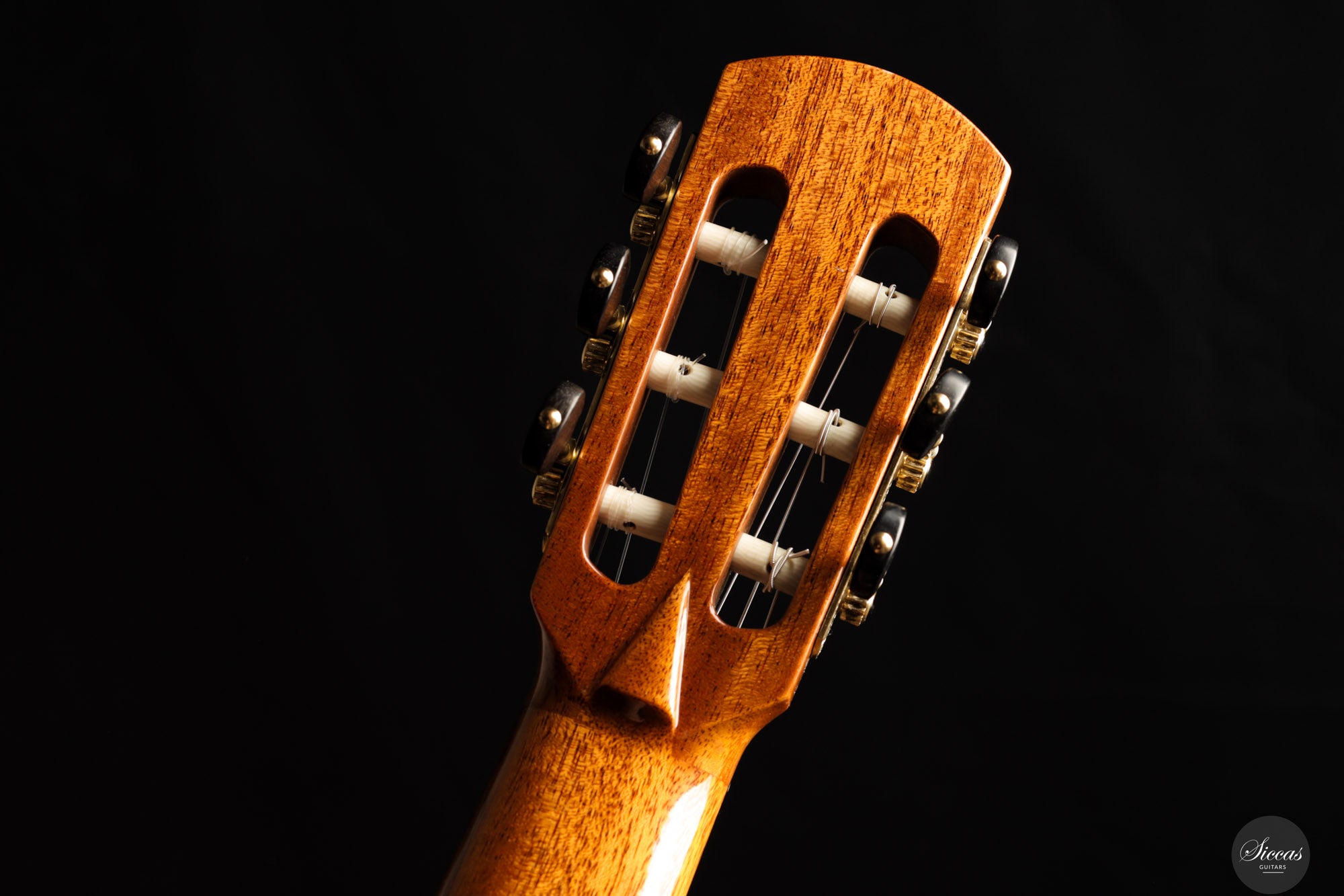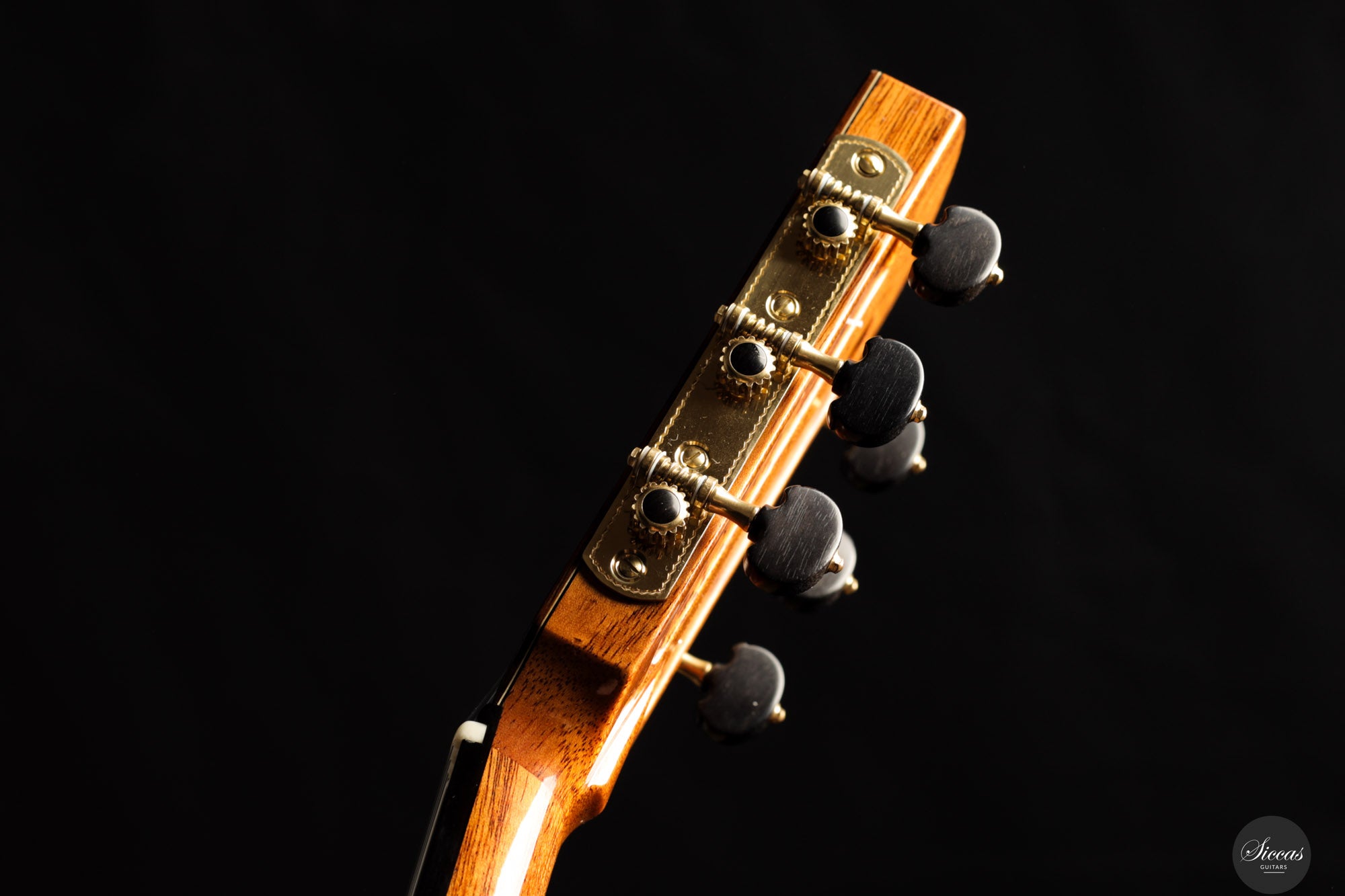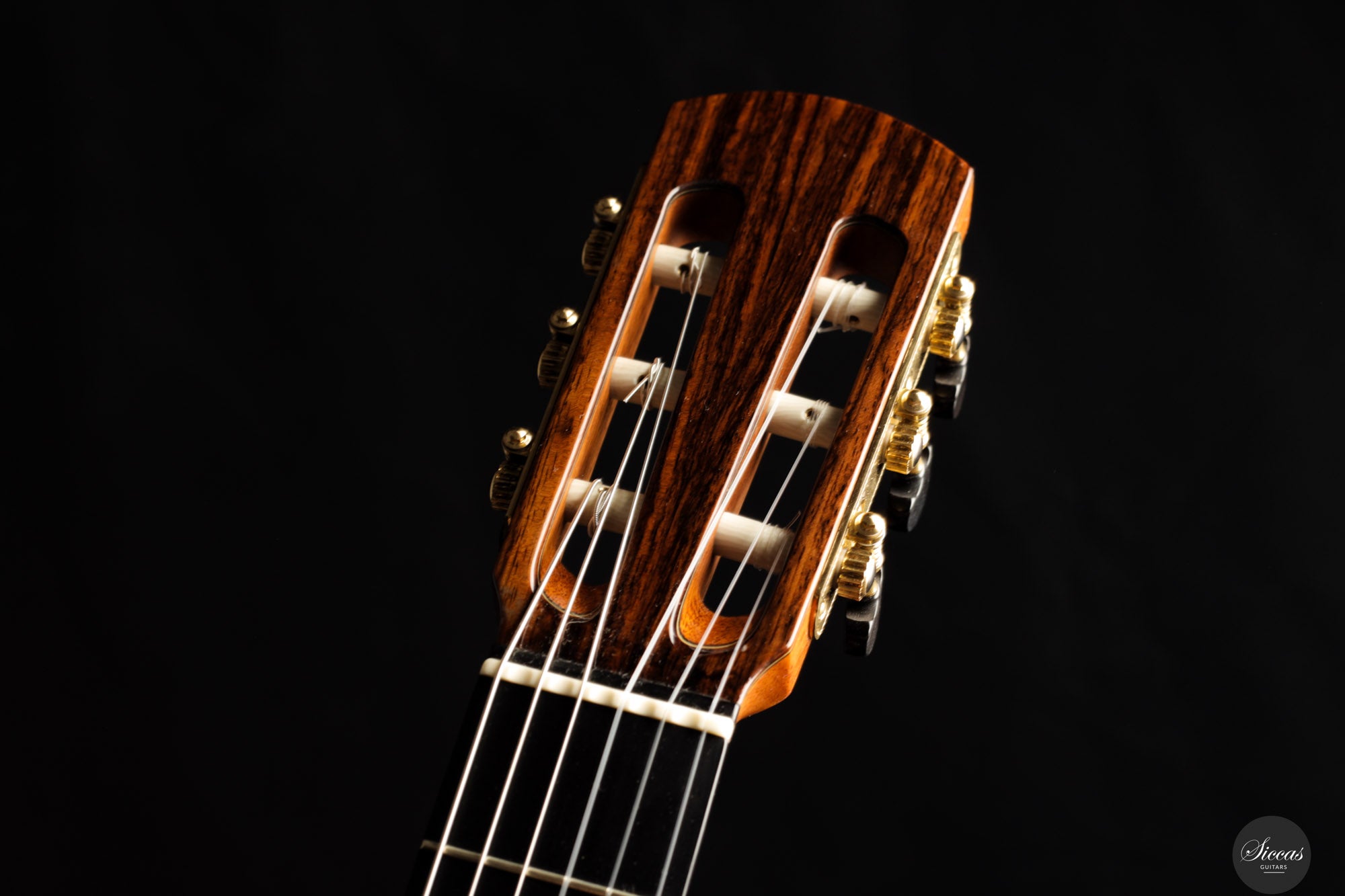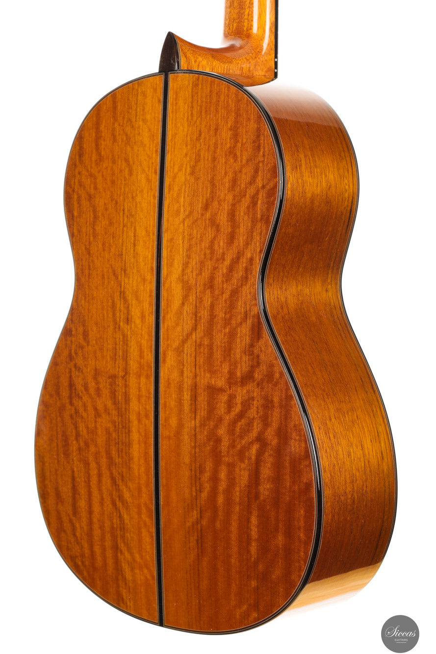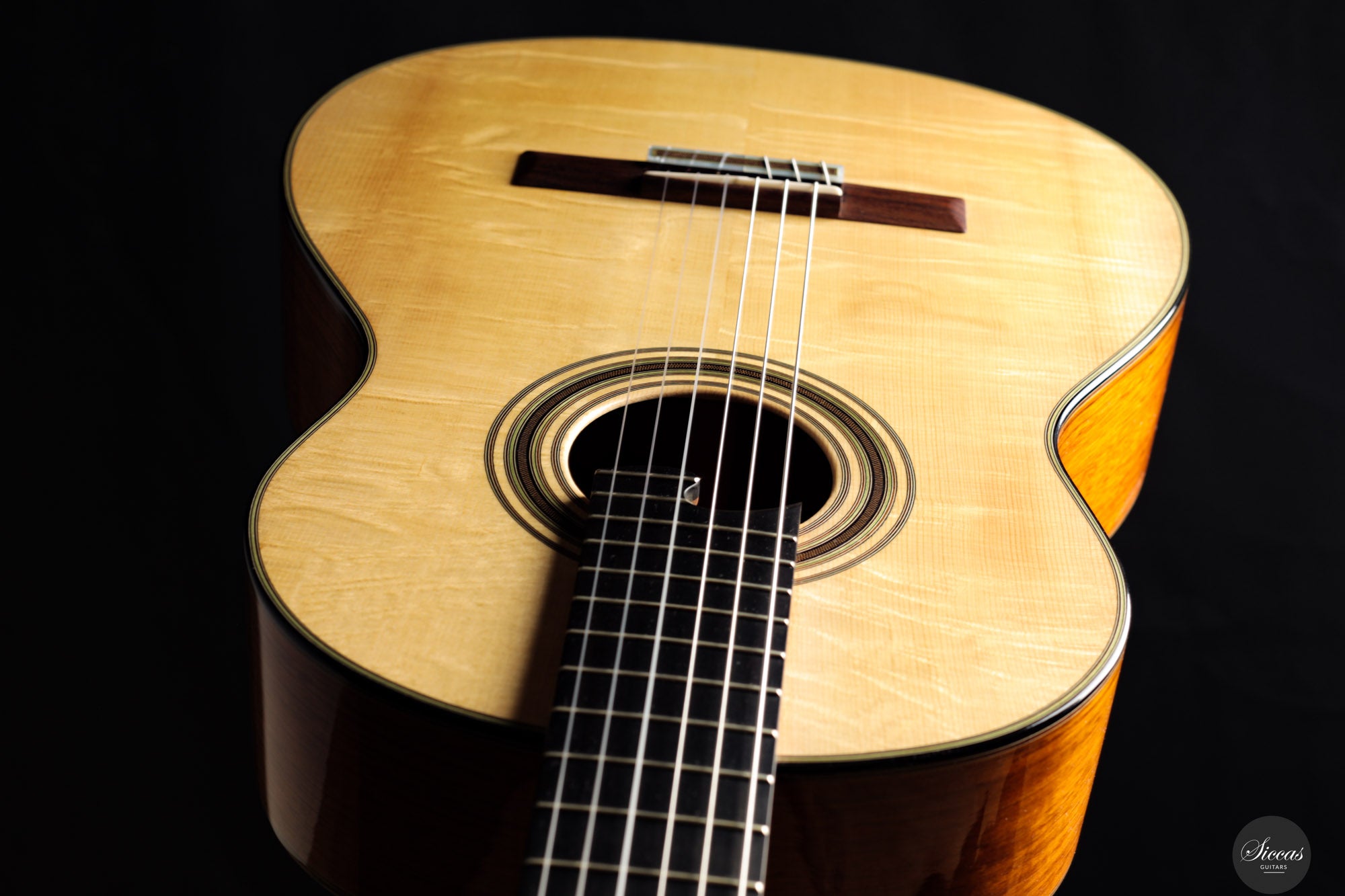 Roy Fankhänel builds guitars in Oelsnitz, Germany, drawing from the traditions of German lutherie while refining his own unmistakable style. His instruments are celebrated for their precise craftsmanship and tonal power. Distinctive construction elements such as the traditional V-joint, elevated fingerboard with a slight radius, and meticulous decorative work reflect his commitment to both function and aesthetics. Fankhänel’s guitars are known for their ease of playability, visual refinement, and their bold, lyrical voice that carries well in concert settings.About the guitar