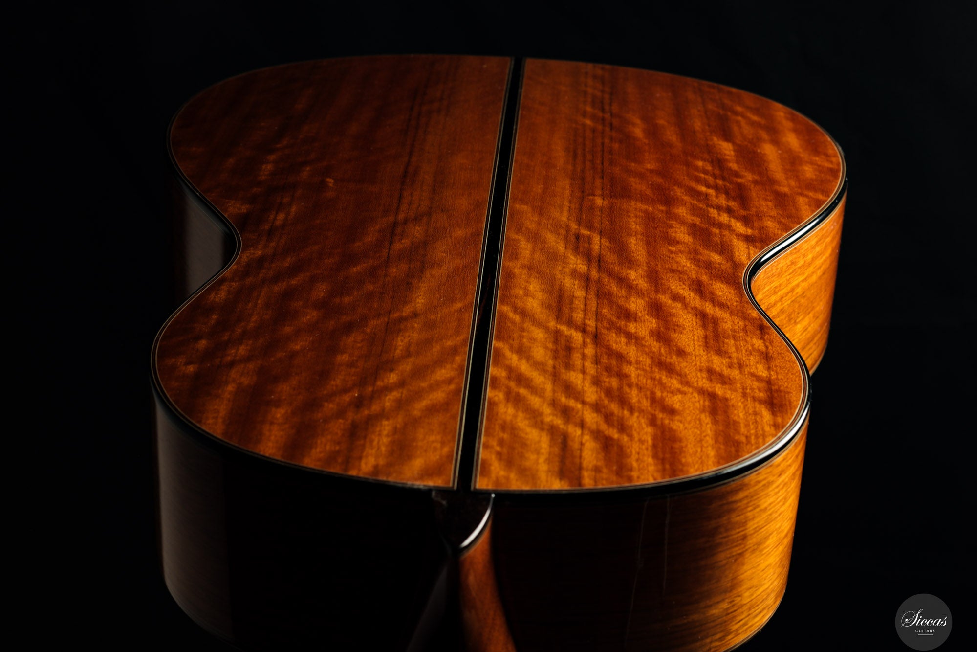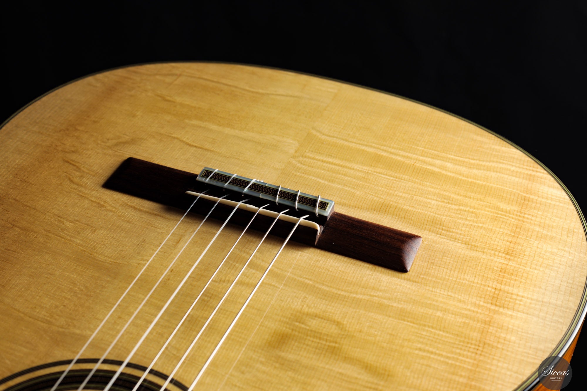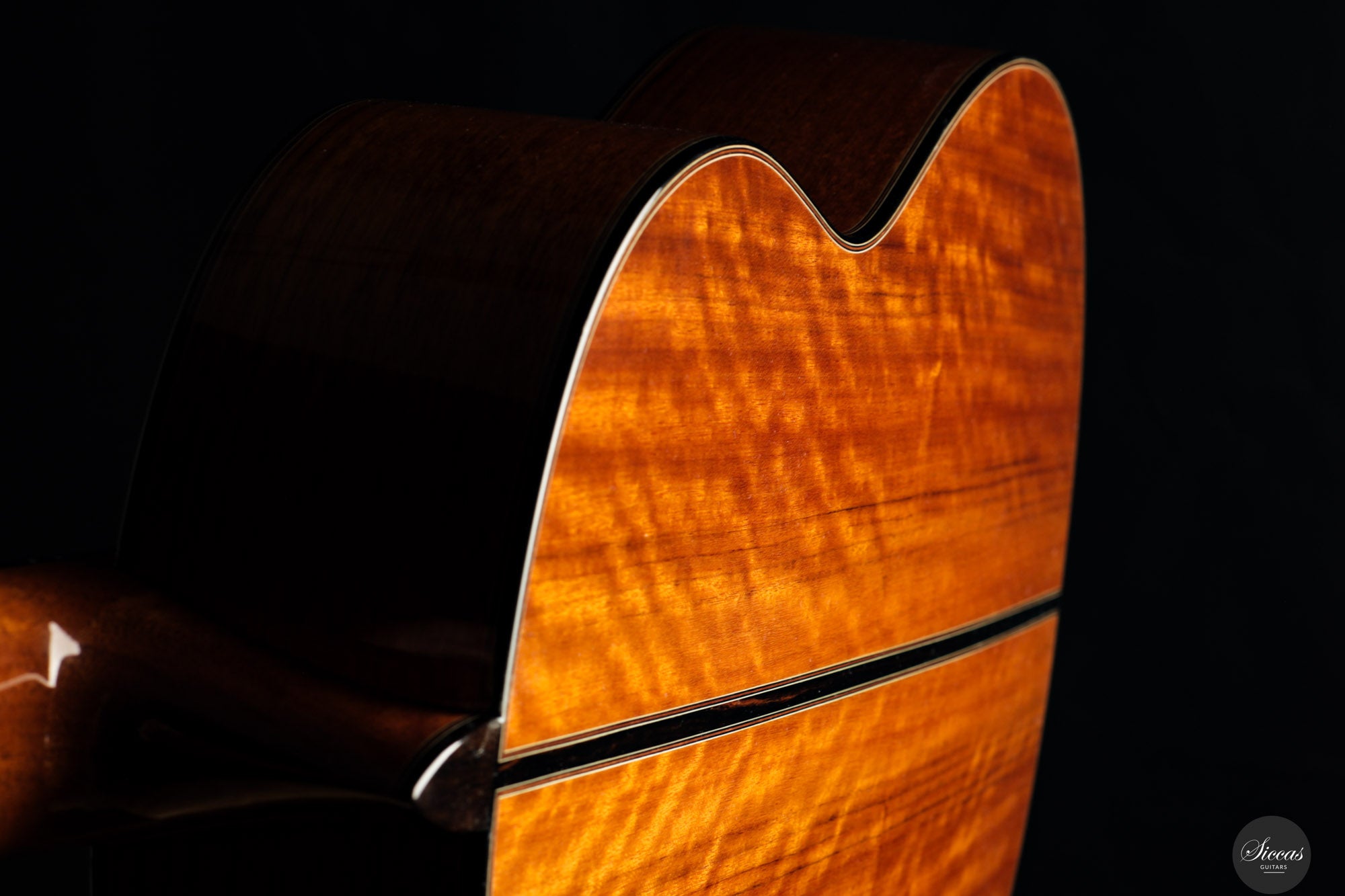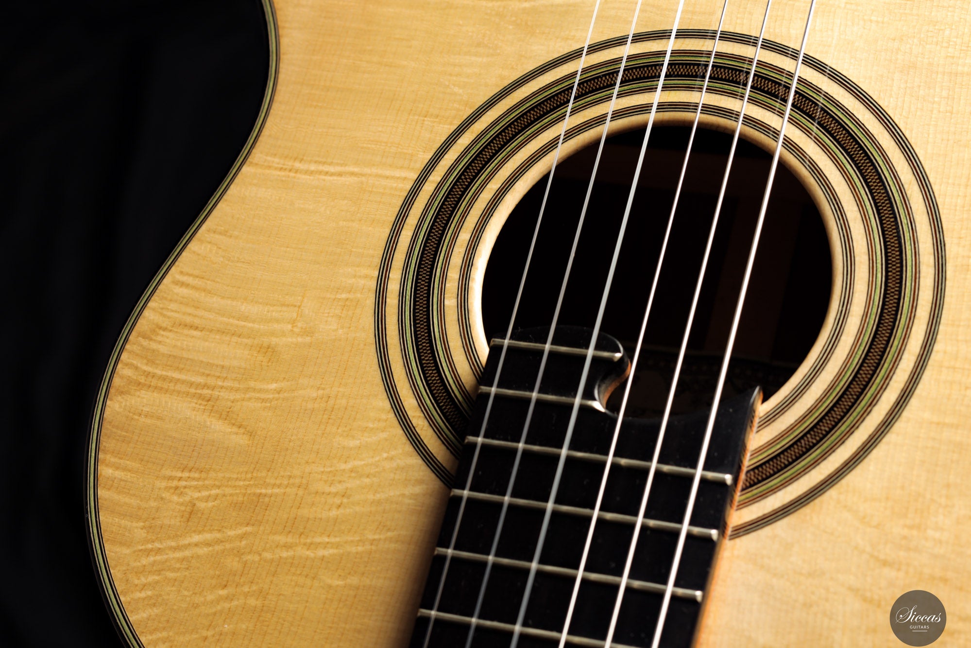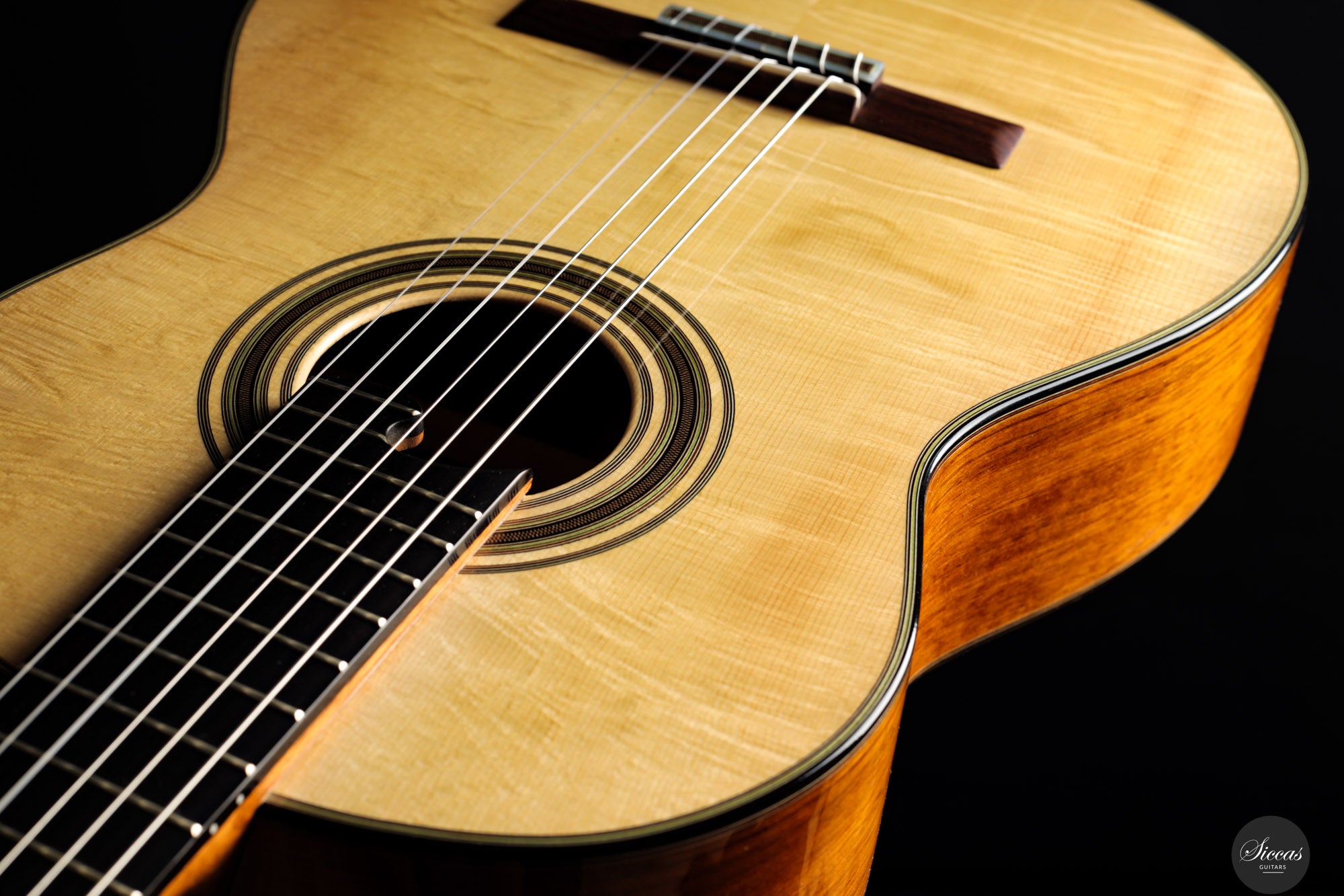 Roy Fankhänel builds guitars in Oelsnitz, Germany, drawing from the traditions of German lutherie while refining his own unmistakable style. His instruments are celebrated for their precise craftsmanship and tonal power. Distinctive construction elements such as the traditional V-joint, elevated fingerboard with a slight radius, and meticulous decorative work reflect his commitment to both function and aesthetics. Fankhänel’s guitars are known for their ease of playability, visual refinement, and their bold, lyrical voice that carries well in concert settings.About the guitar