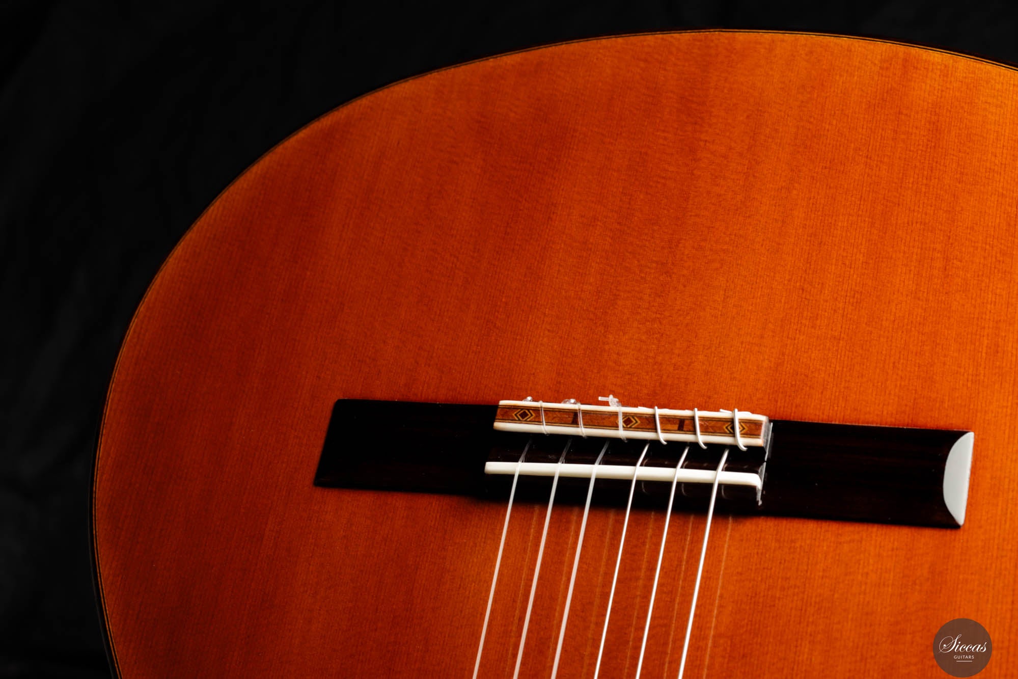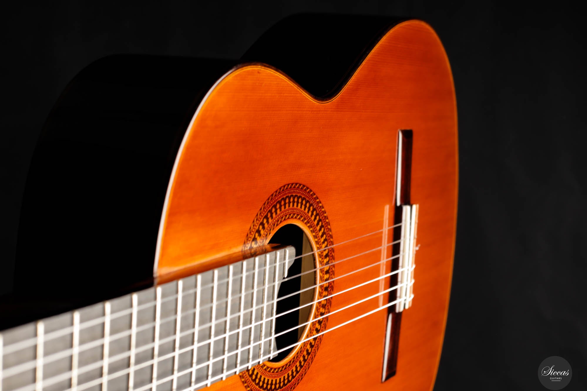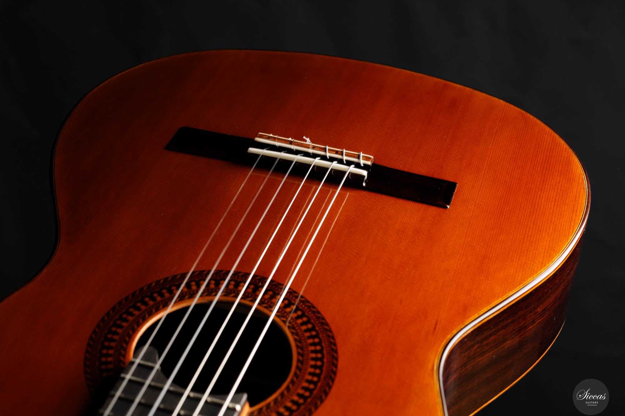 Die No. 55 Gitarre verkörpert den Höhepunkt von Konzertinstrumenten und bietet außergewöhnliche Bespielbarkeit und Klangqualität, die sie ideal für die Konzertbühne machen. Bekannt für ihre unglaublich geschmeidige Bespielbarkeit, oft beschrieben als "wie Butter" zu spielen, bietet diese Gitarre ein müheloses und befriedigendes Erlebnis für jeden Gitarristen. Sie verfügt über warme und runde Höhen, die nicht nur verzeihend sind, sondern auch die tonale Palette des Instruments bereichern und eine breite Palette an Ausdrucksmöglichkeiten ermöglichen. Der große dynamische Bereich der Gitarre eröffnet neue Dimensionen der musikalischen Interpretation und lädt Spieler ein, tiefer in ihren künstlerischen Ausdruck einzutauchen. Mit ihrer Kombination aus außergewöhnlicher Klangqualität, leichter Bespielbarkeit und dynamischer Vielseitigkeit ist diese Gitarre eine Freude zu spielen.