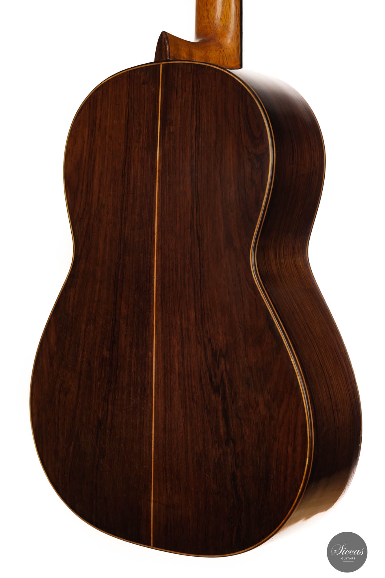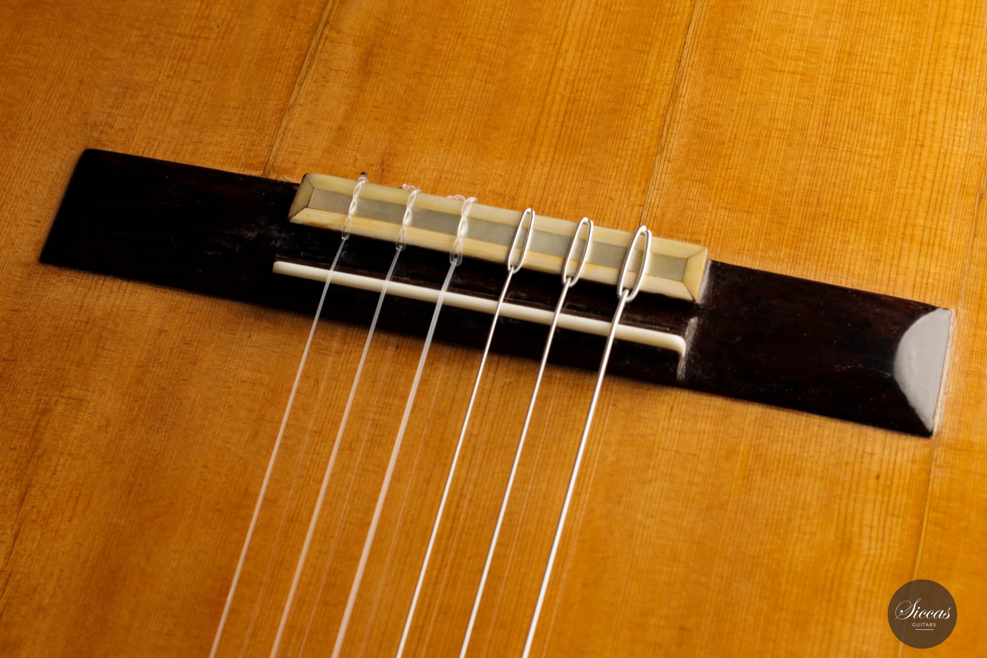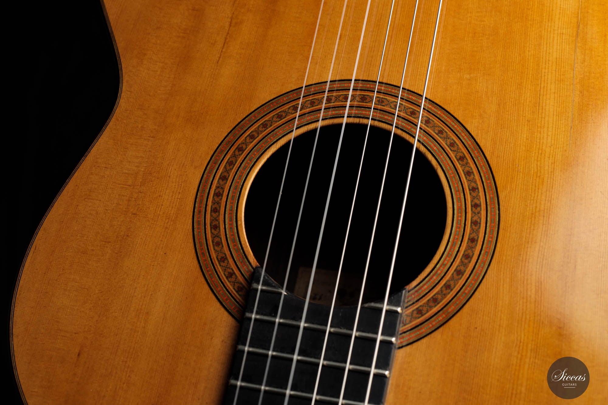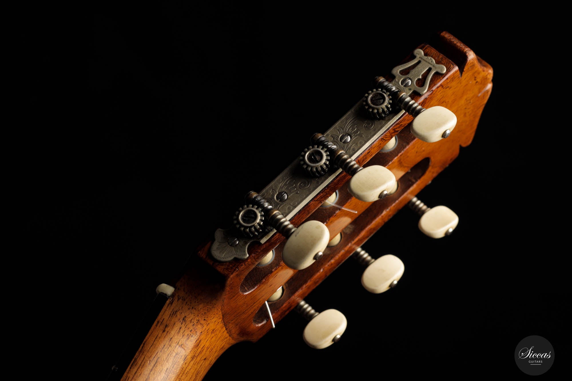 Santos Hernandez (Madrid, 1873-1943) started an apprenticeship very early in Valentin Viudes’s workshop and then moved to José Ortega’s Granadinian workshop. After moving to a few other workshops and serving as a soldier for Spain, he eventually took over Enrique Garcia’s position in Manuel Ramirez’s workshop in 1905. His involvement in building Andrés Segovia’s famous 1912 Manuel Ramirez sealed his reputation as an extraordinary luthier. He opened his first workshop in 1921 after working for Manuel Ramirez’s widow along with Domingo Esteso.