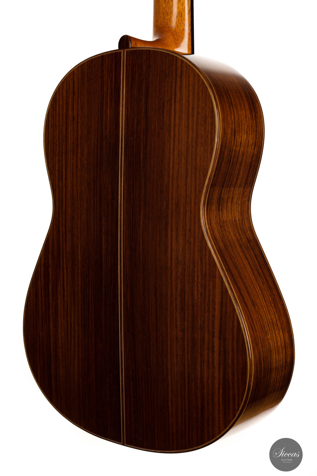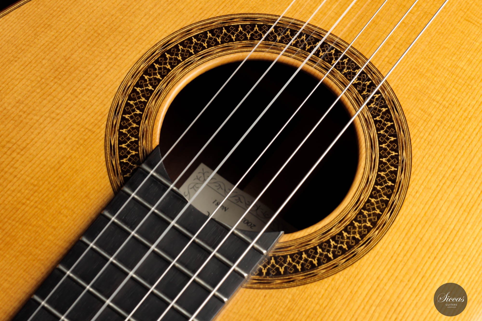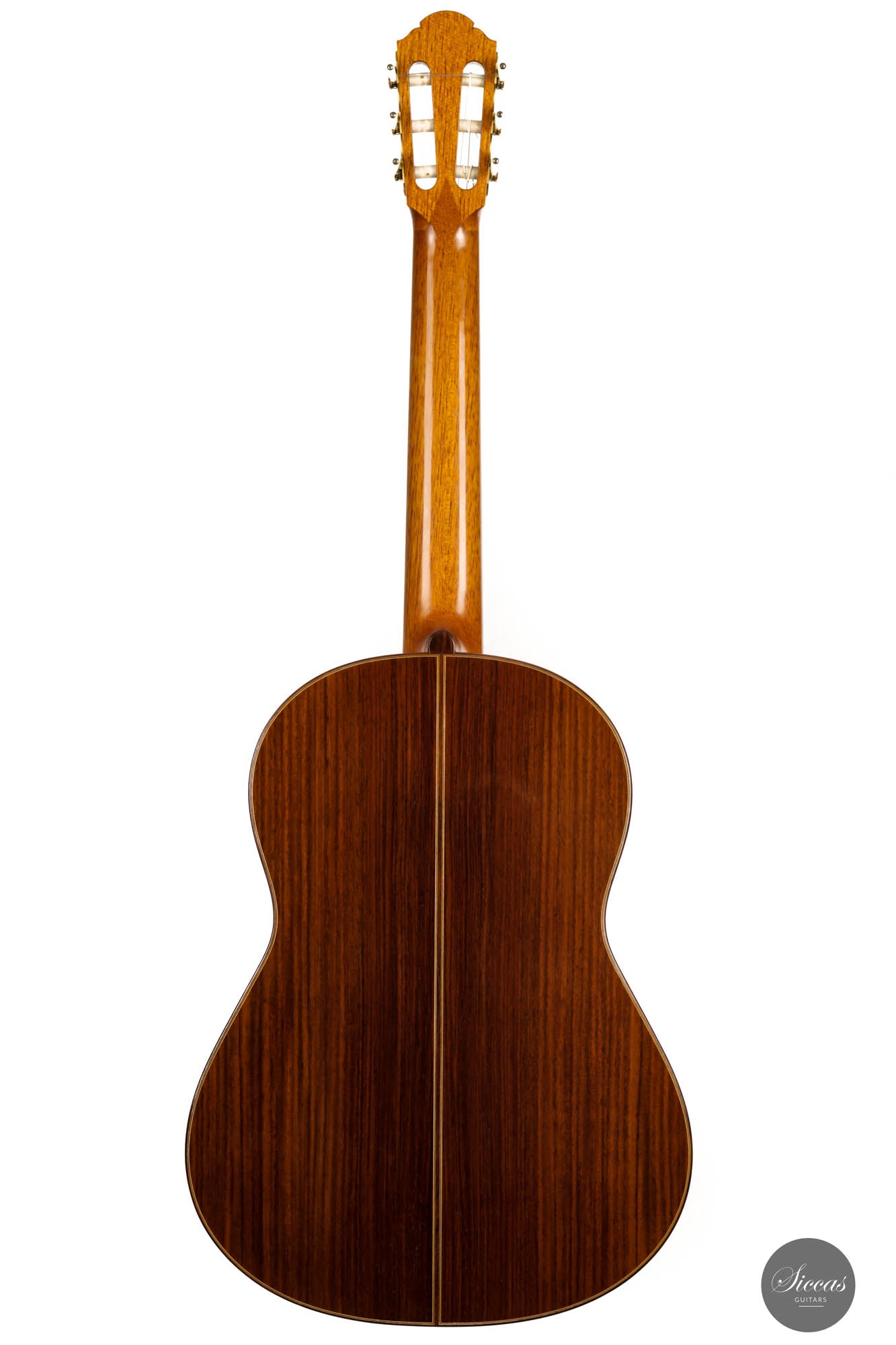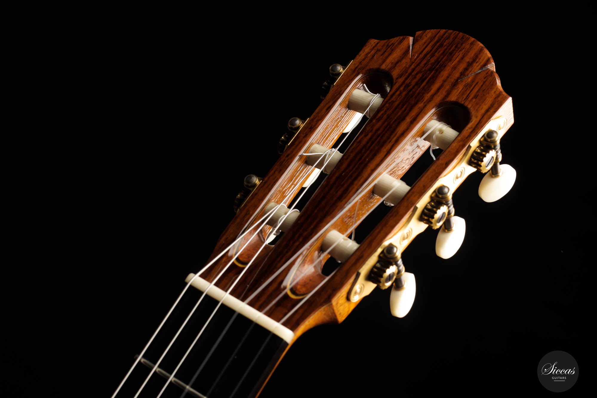 This particular guitar from 2003 is extraordinary in all regards. It is reminiscent of the great Hermann Hauser guitar in its balance, colors, and clarity but only with a volume and projection that will fulfill any playing situation. Moreover, this fine instrument responds amazingly to the right hand of its player. Combined with the comfortable neck shape and its great overall feel, this guitar is a dream to play. This 2003 model features beautiful and custom-made Reischl tuners. At that time, these were the tuners that Sebastian used as a standard for his guitars. Josef Reischl made this model especially for him after Sebastian Stenzel had milled the outline of the plate. The spruce soundboard and Indian rosewood back and sides have shown positive maturation over the years. As a pre-loved instrument, the finish of this guitar has been refreshed by Sebastian himself, and it is now in excellent condition with only superficial playing wear and a typical small string mark behind the bridge. This instrument is truly one-of-a-kind that will satisfy guitarists of any level.