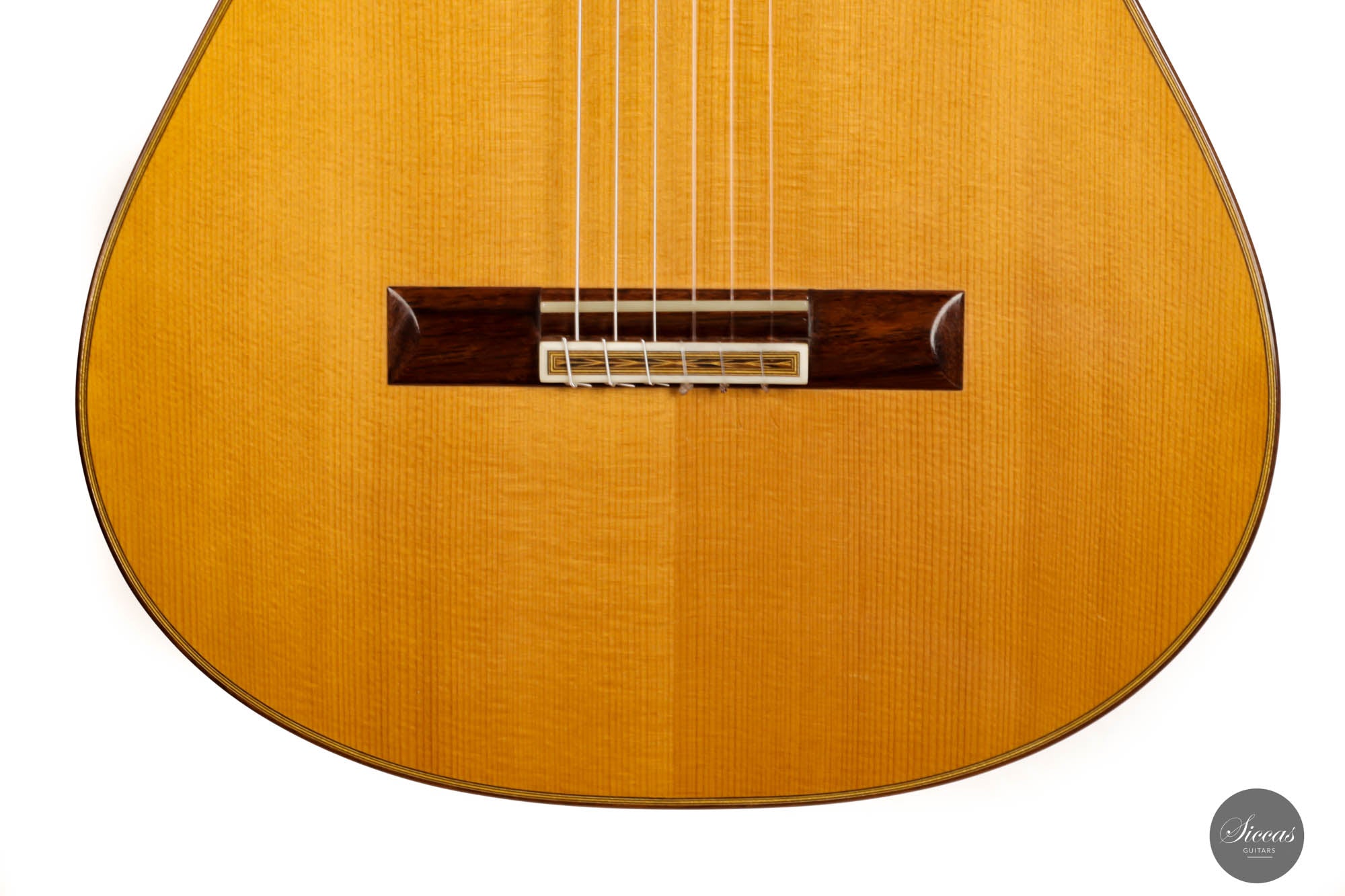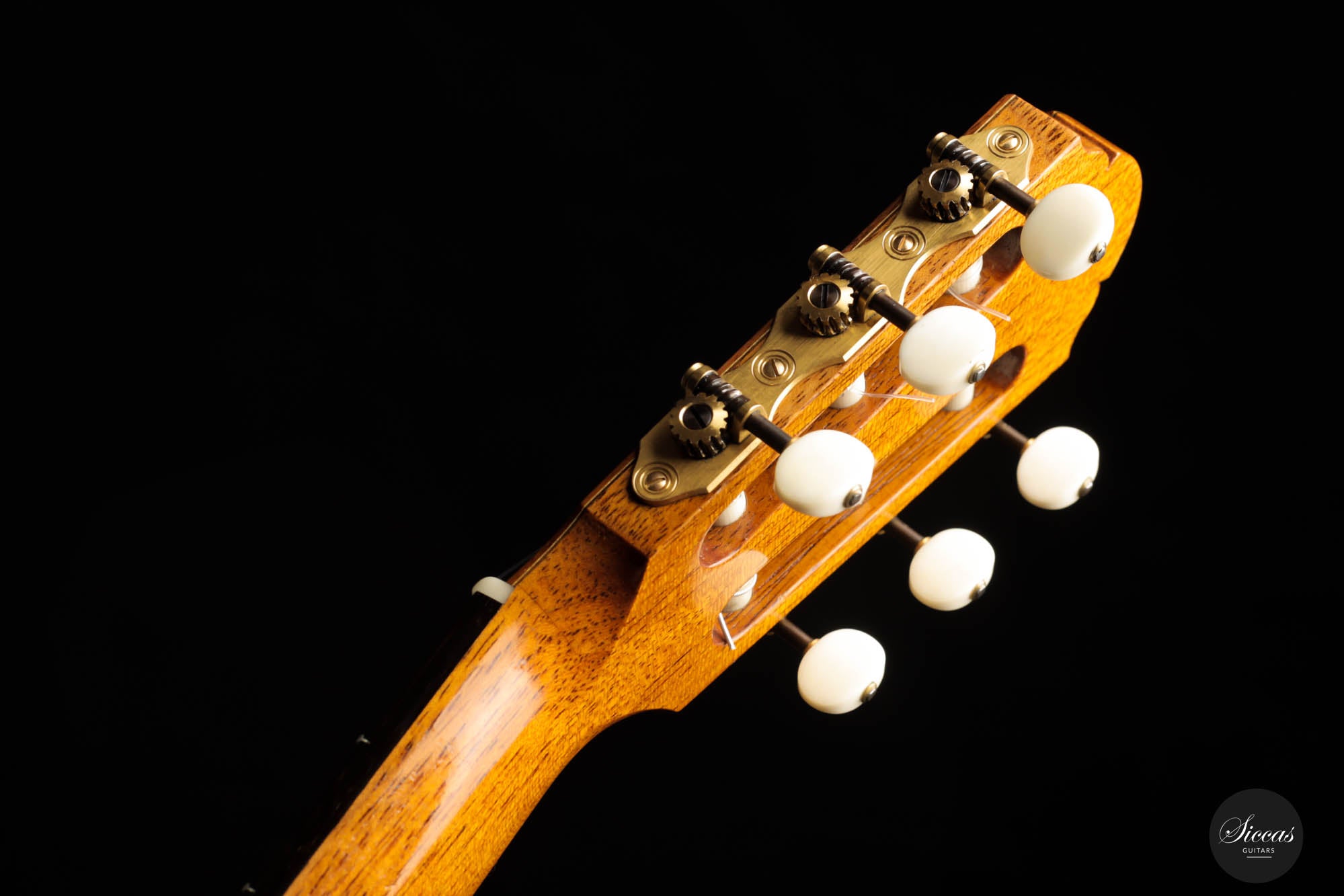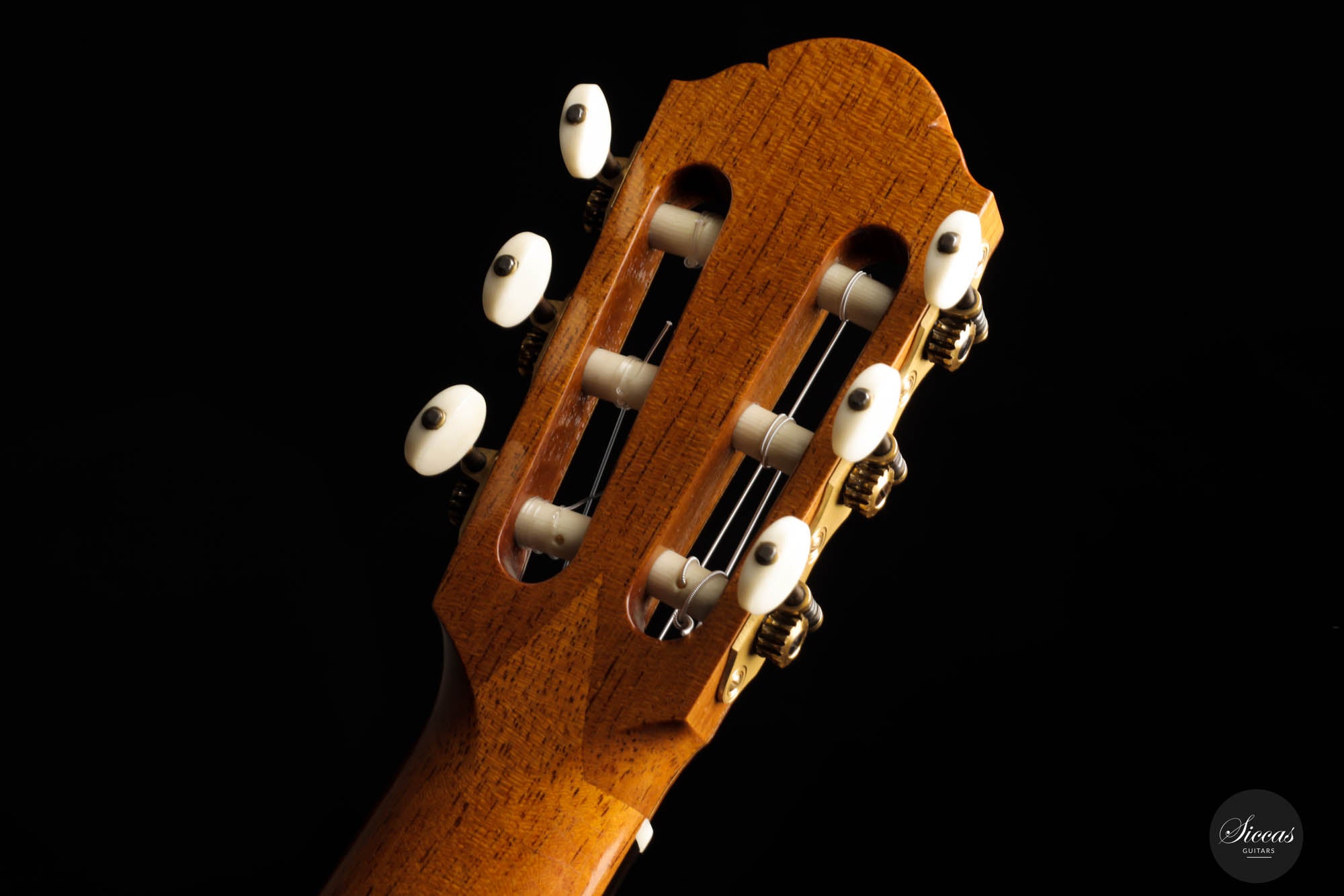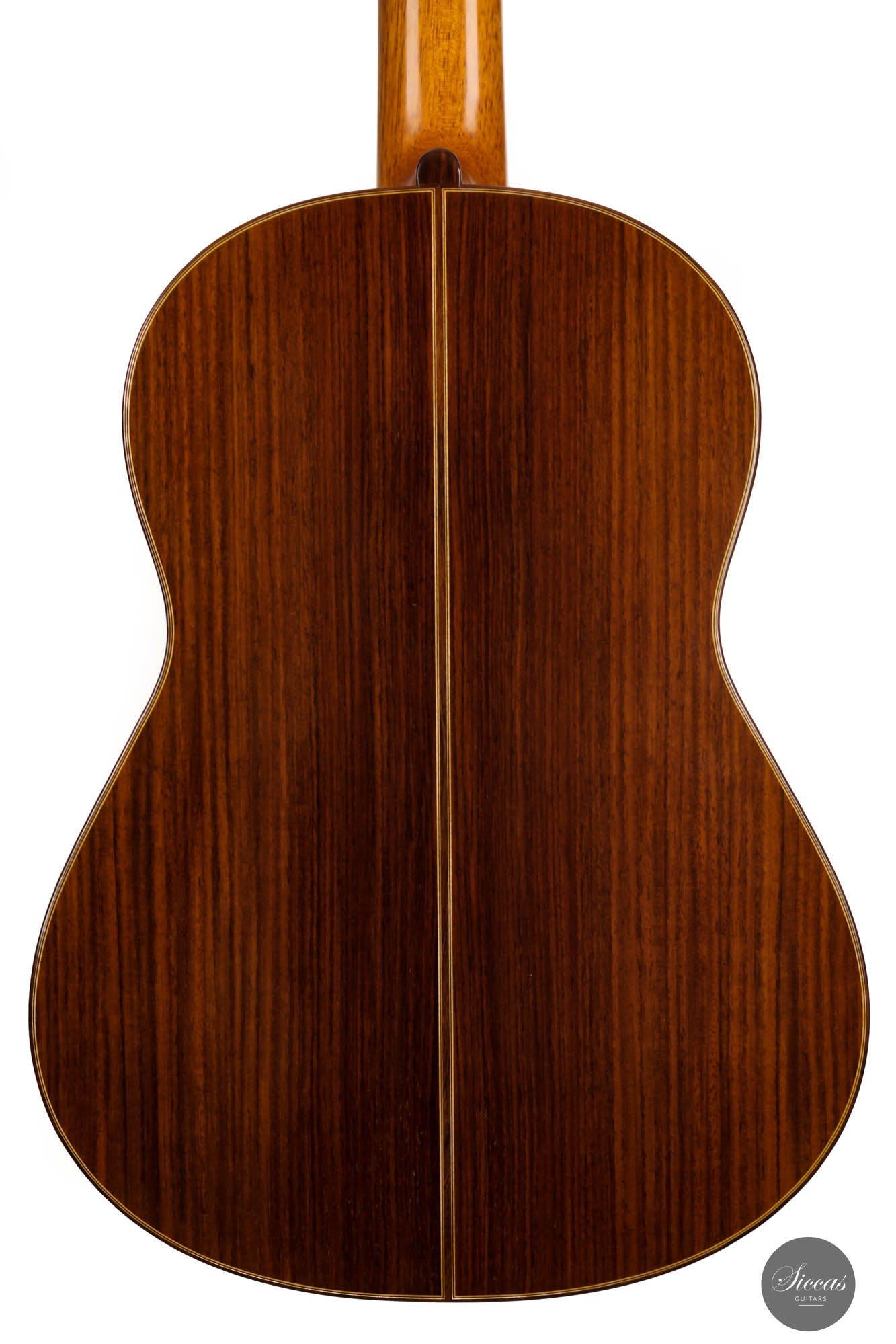 This particular guitar from 2003 is extraordinary in all regards. It is reminiscent of the great Hermann Hauser guitar in its balance, colors, and clarity but only with a volume and projection that will fulfill any playing situation. Moreover, this fine instrument responds amazingly to the right hand of its player. Combined with the comfortable neck shape and its great overall feel, this guitar is a dream to play. This 2003 model features beautiful and custom-made Reischl tuners. At that time, these were the tuners that Sebastian used as a standard for his guitars. Josef Reischl made this model especially for him after Sebastian Stenzel had milled the outline of the plate. The spruce soundboard and Indian rosewood back and sides have shown positive maturation over the years. As a pre-loved instrument, the finish of this guitar has been refreshed by Sebastian himself, and it is now in excellent condition with only superficial playing wear and a typical small string mark behind the bridge. This instrument is truly one-of-a-kind that will satisfy guitarists of any level.