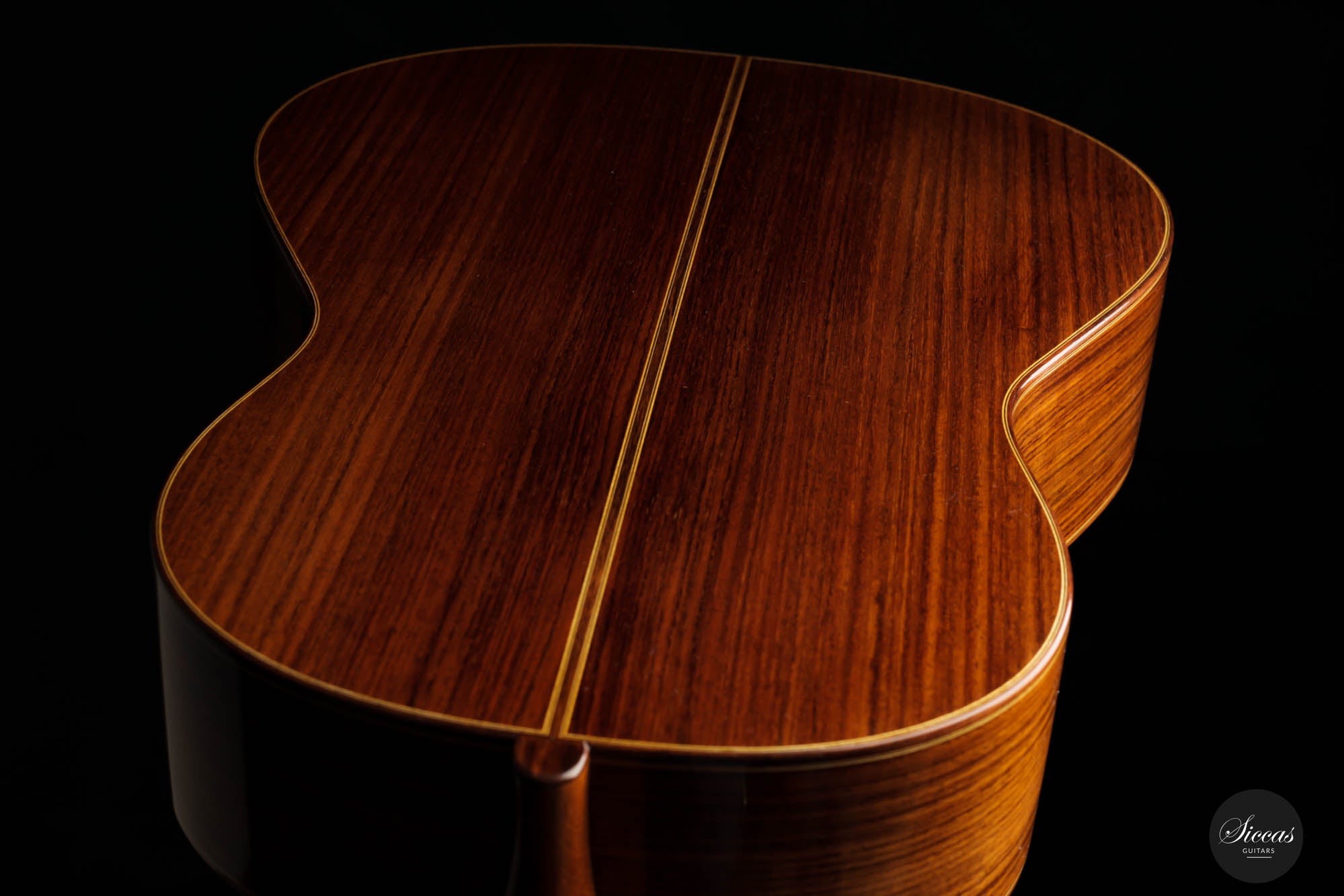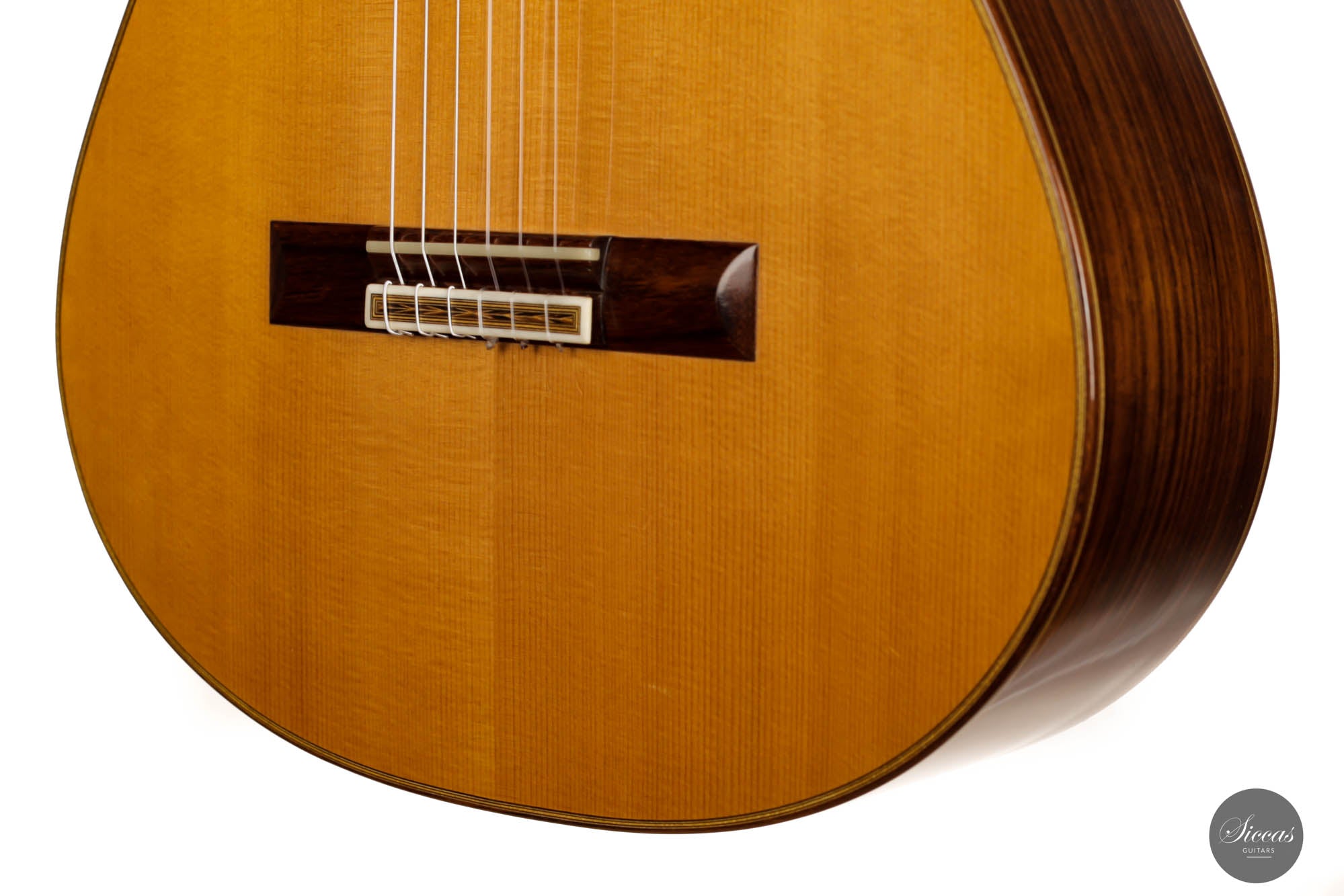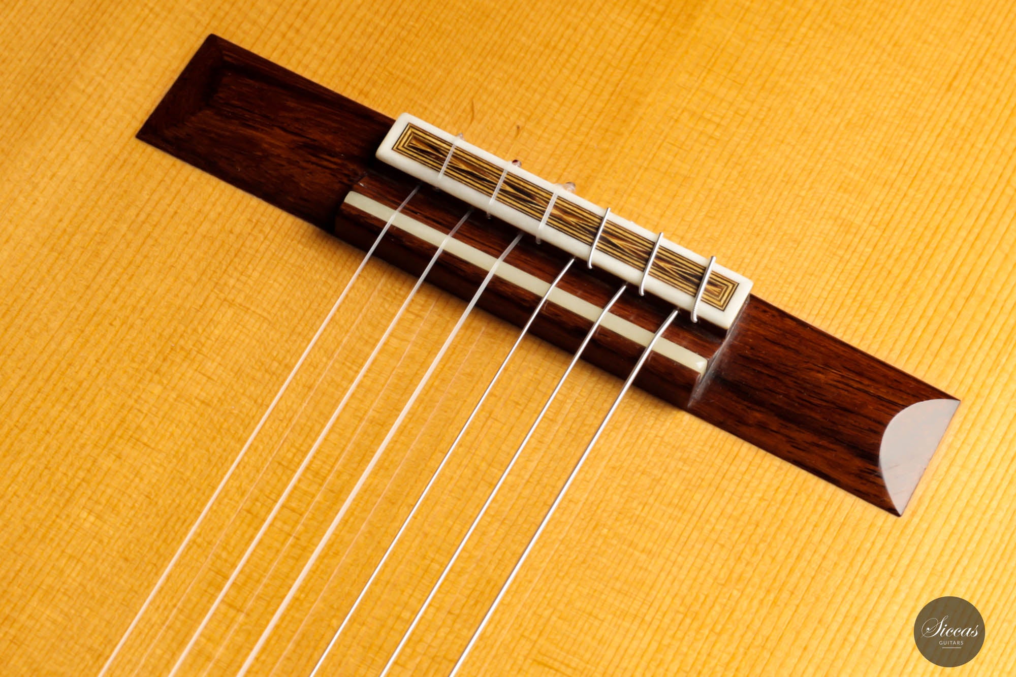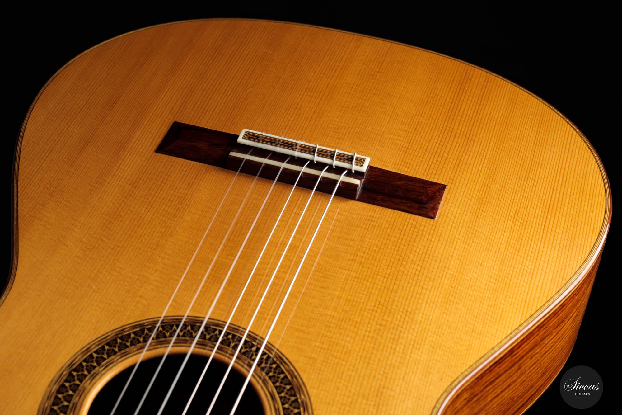 This particular guitar from 2003 is extraordinary in all regards. It is reminiscent of the great Hermann Hauser guitar in its balance, colors, and clarity but only with a volume and projection that will fulfill any playing situation. Moreover, this fine instrument responds amazingly to the right hand of its player. Combined with the comfortable neck shape and its great overall feel, this guitar is a dream to play. This 2003 model features beautiful and custom-made Reischl tuners. At that time, these were the tuners that Sebastian used as a standard for his guitars. Josef Reischl made this model especially for him after Sebastian Stenzel had milled the outline of the plate. The spruce soundboard and Indian rosewood back and sides have shown positive maturation over the years. As a pre-loved instrument, the finish of this guitar has been refreshed by Sebastian himself, and it is now in excellent condition with only superficial playing wear and a typical small string mark behind the bridge. This instrument is truly one-of-a-kind that will satisfy guitarists of any level.